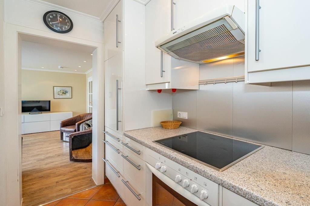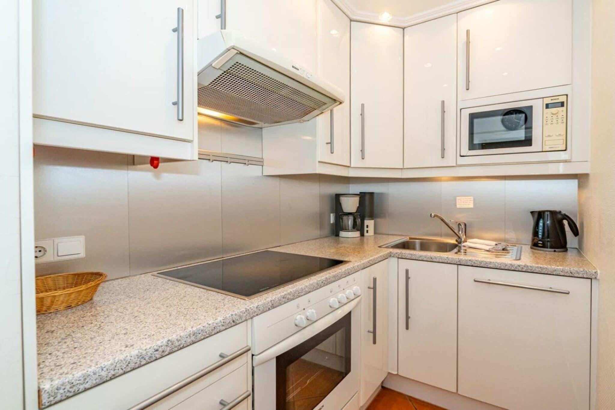 , Stue(, Fjernsyn), Køkken(tekøkken, spisebord, elkedel, brødrister, kaffemaskine, ovn, mikrobølgeovn, opvaskemaskine ), soveværelse(, dobbeltseng), badeværelse(, toilet, bruser, håndvask), balkon(havemøbler), havemøbler, parkering