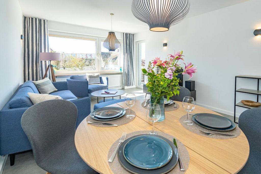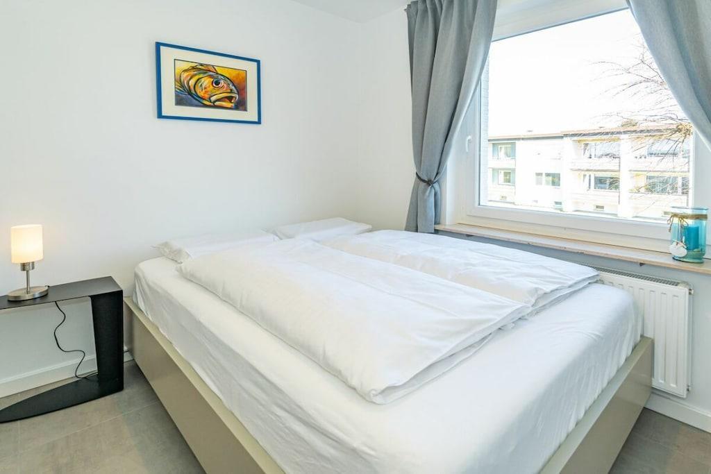 Ferie i Ferienglück-lejligheden Dette venter dig i lejligheden, som blev fuldstændig renoveret med stor sans for detaljer i marts/april 2023. En rummelig stue med siddeområde Fladskærms-tv med kabelkanaler og streamingtjeneste Stereoanlæg Wi-Fi Vestvendt balkon med siddepladser Moderne åbent køkken med Køleskab med 3-stjernet fryserum Keramisk kogeplade Ovn Opvaskemaskine Kaffemaskine Senseo pod-maskine osv. Moderne brusebadeværelse Med vaskemaskine/tørretumbler 1. soveværelse med dobbeltseng (boxmadras) 180 x 200 cm og et stort klædeskab 2. soveværelse med dobbeltseng (boxmadras) 140 x 200 cm BEMÆRK VENLIGST - Kæledyr er ikke tilladt - Dette er en ikke-ryger lejlighed