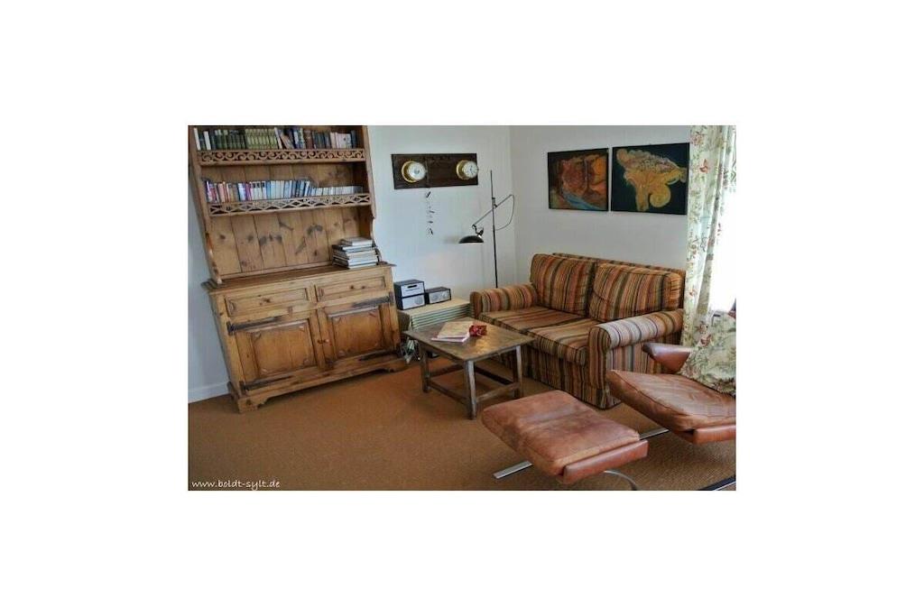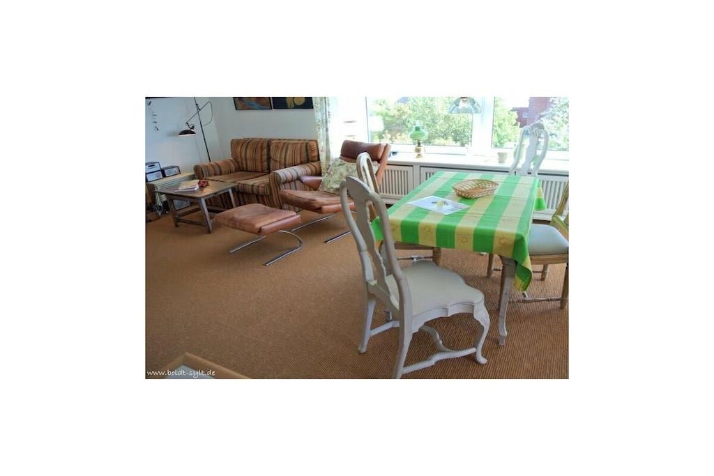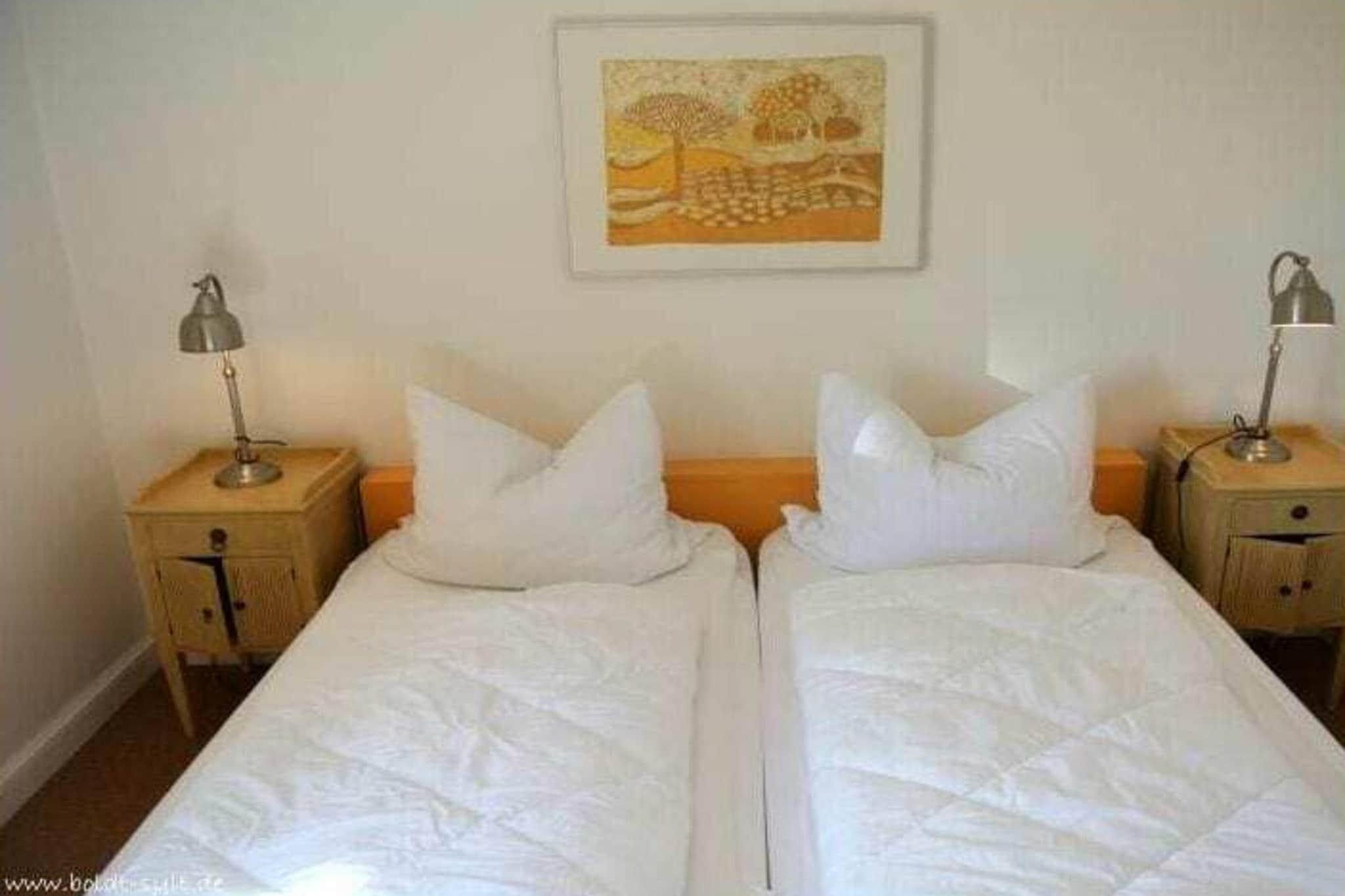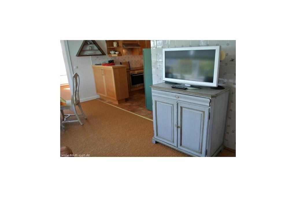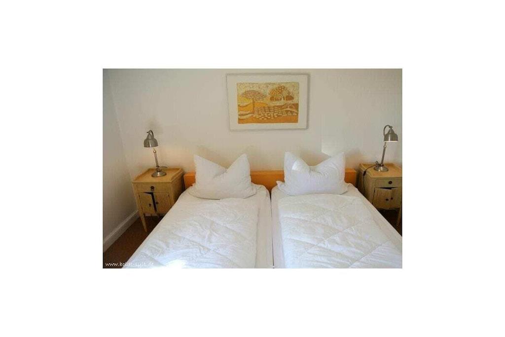 Denne toværelses lejlighed med åbent køkken ligger på tredje sal og har en østvendt altan. Der er også to ekstra køjesenge i gangen. Stue-/spisestuen har kabel-tv, stereoanlæg/cd-afspiller og altan. Wi-Fi er inkluderet (ingen garanti). Lejligheden har også et fuldt udstyret køkken med opvaskemaskine. Soveværelset har en dobbeltseng, og der er to køjesenge i gangen. Der er et brusebadeværelse med spejl. Parkeringsplads nr. 28 ligger bag bygningen, til højre for garagerne.