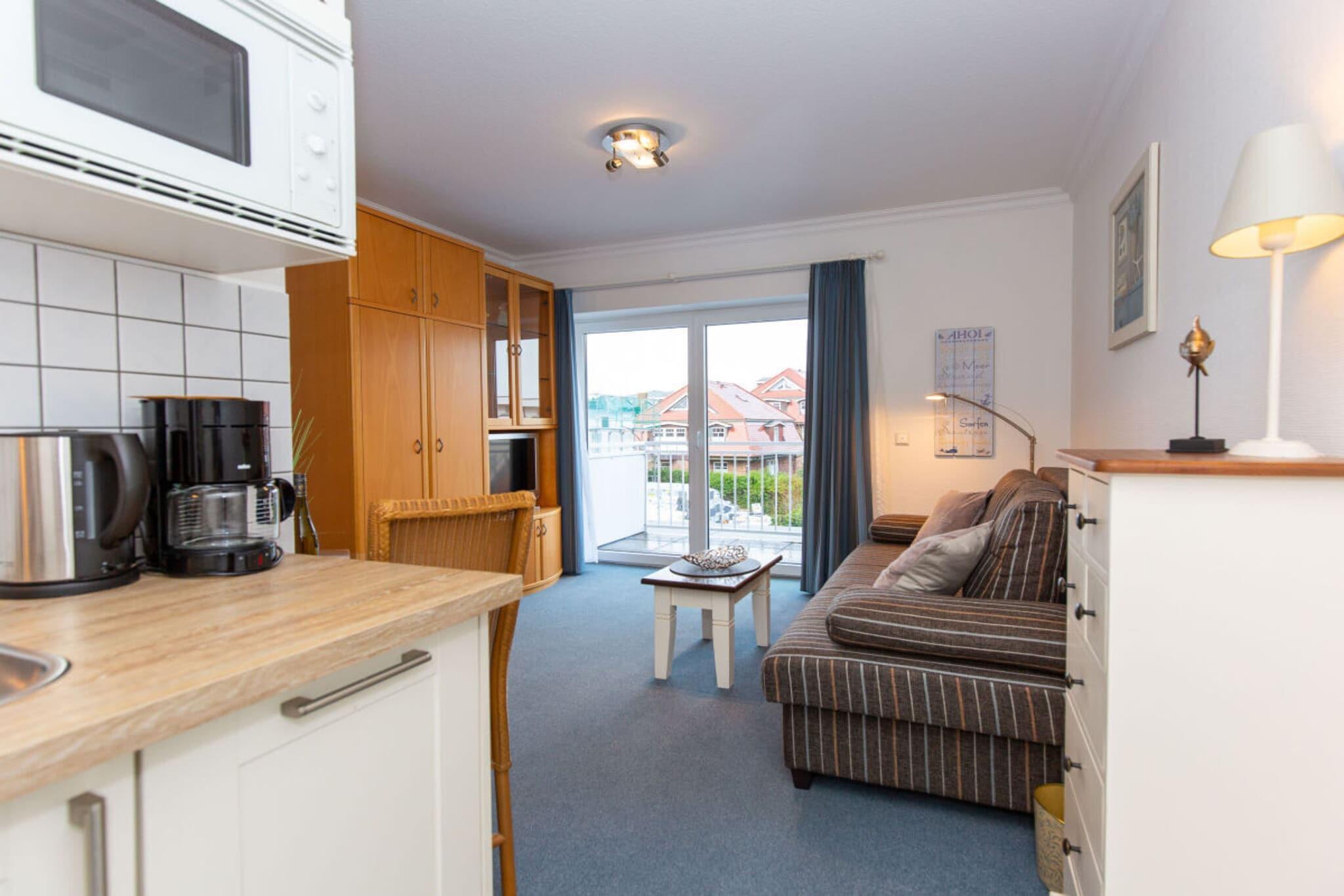 Die Wohnung befindet sich in der 1. Etage eines Appartementhauses in zentraler Lage von Westerland in unmittelbarer Nähe zum Strand. ?Das Studio Appartement mit offenem Zugang zur Küche ist hell und freundlich . Die Küchenzeile ist gut ausgestattet. Sie schlafen auf einer hochwertigen Schlafcouch 160x200cm . Das Dusch/Bad verfügt über eine Fußbodenheizung. Parkplätze am Haus stehen begrenzt zur Verfügung, kostenlose Parkplätze in den Seitenstrassen, öffentliche Parkplätze, gebührenpflichtig, fußläufig erreichbar.