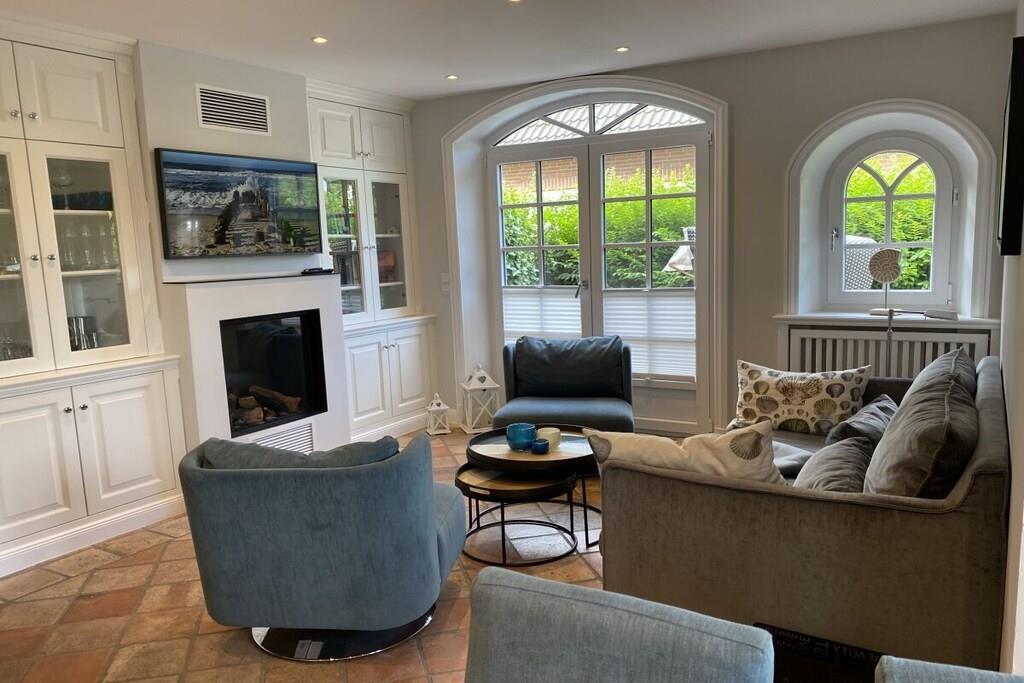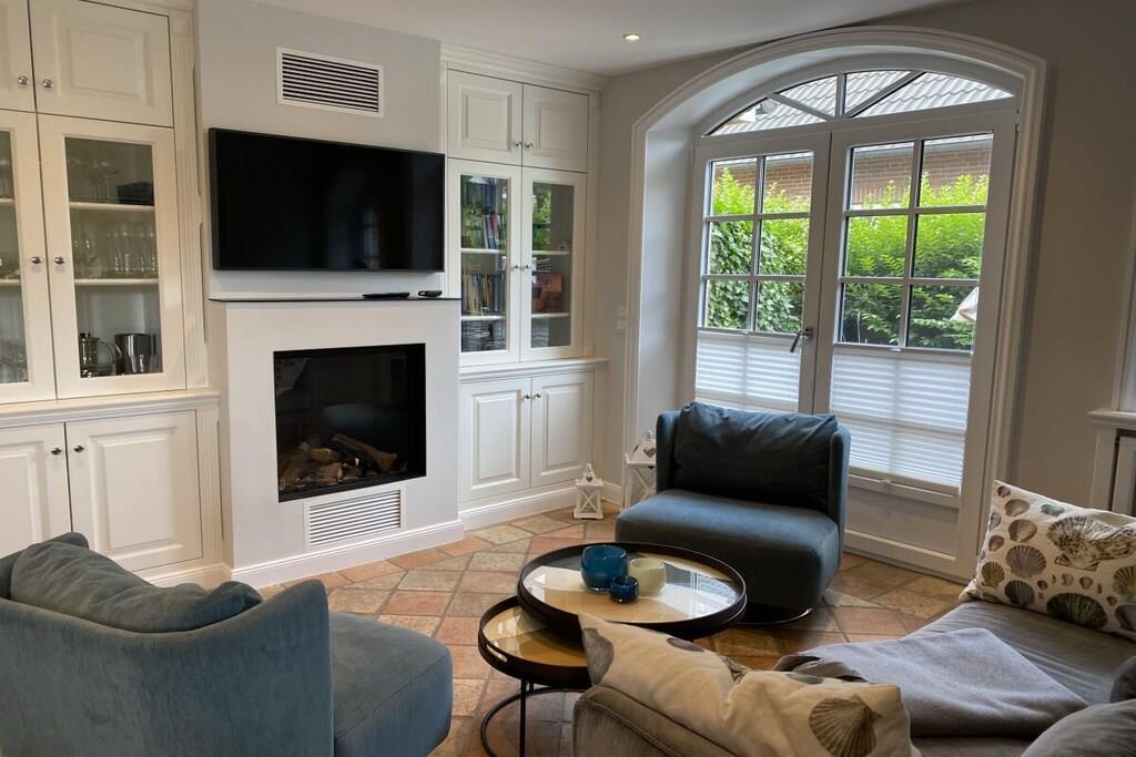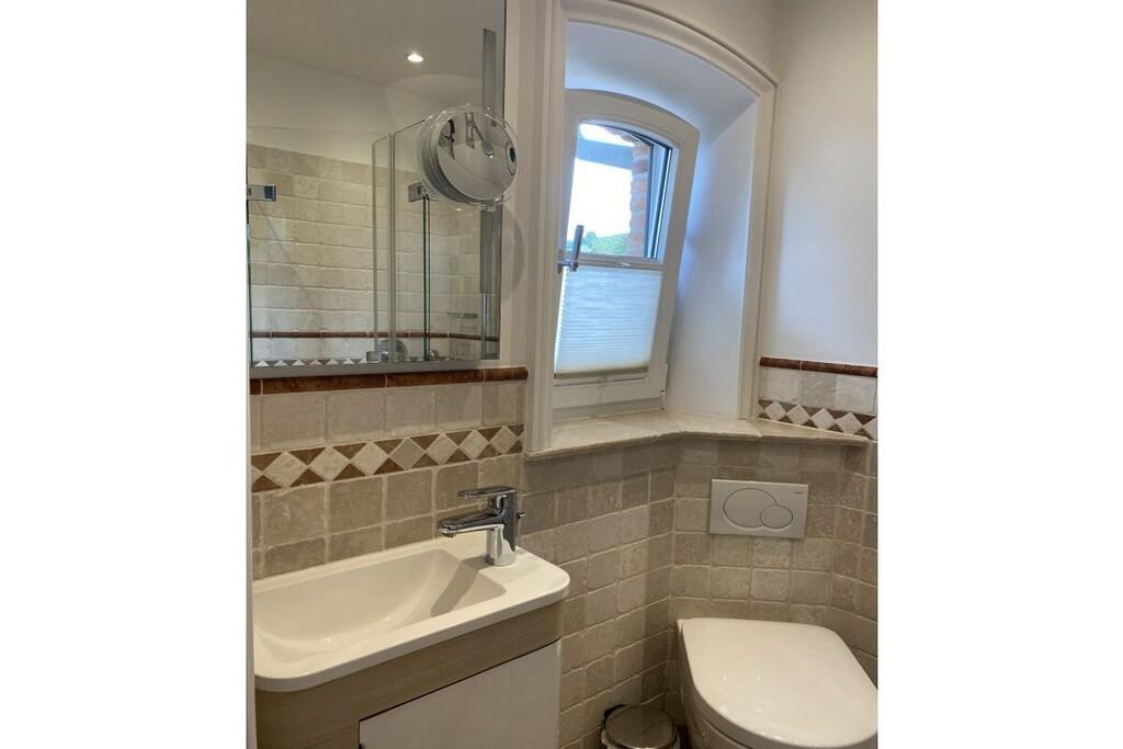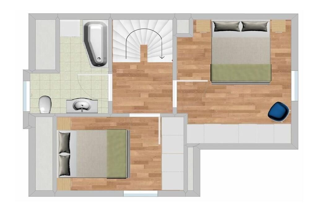 Stueetage: (Gæsteophold Stueetage, Køkken, stue / spisestue, Soveværelse med badeværelse(dobbeltseng), Soveværelse med badeværelse(dobbeltseng), badeværelse(toilet, bruser)) På 1. etage: Sidebygning: (balkon eller terrasse) fjernsynsstue, tekøkken, bibliotek, Internetadgang, dobbeltseng, dobbeltseng, Fjernsyn, CD-afspiller, komfur, kaffemaskine, ovn, mikrobølgeovn, opvaskemaskine , køleskab, badekar, vaskemaskine, have, parkering