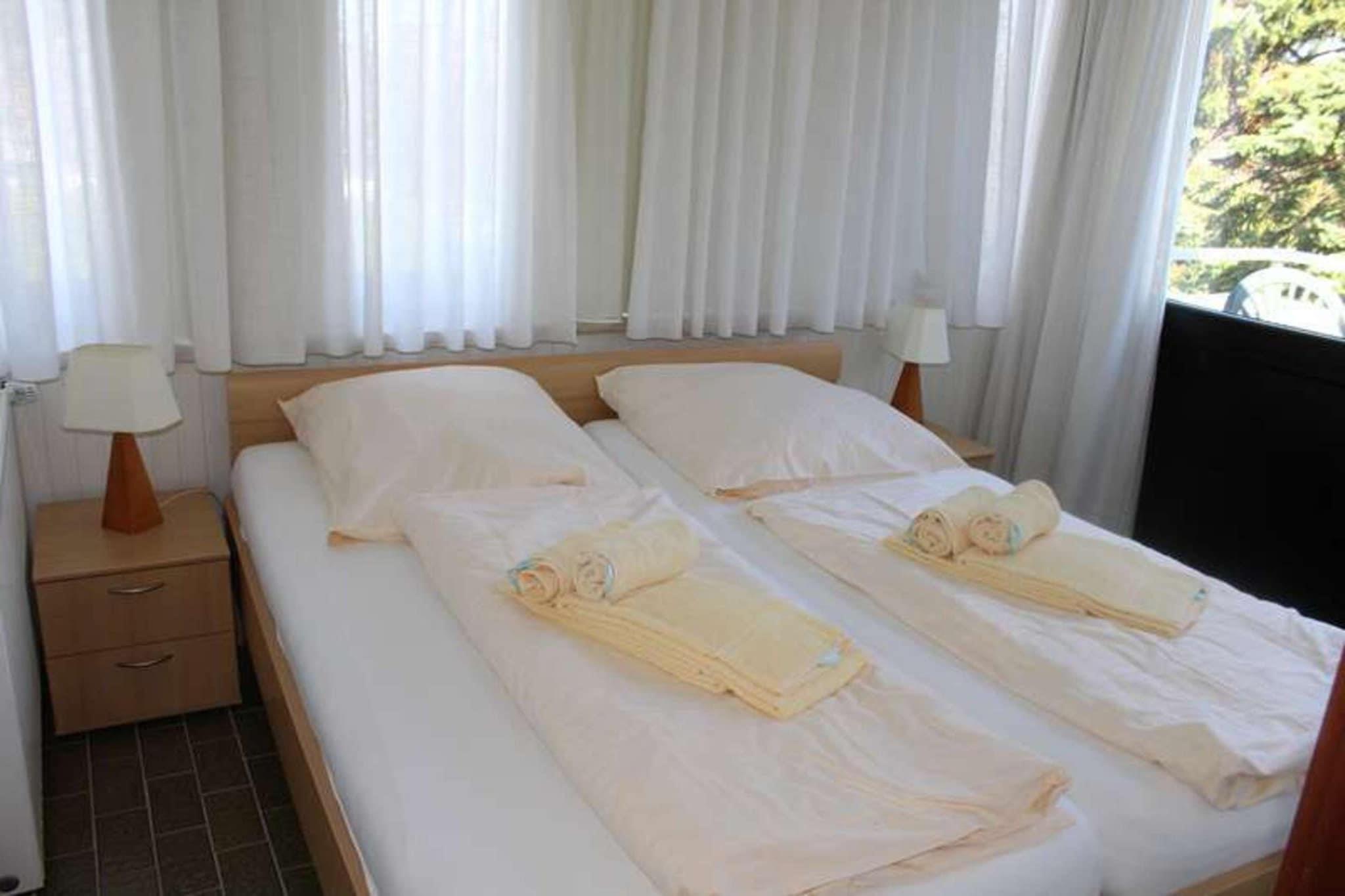 På 1. etage: (åbent køkken(spisebord, kogeplade(glaskeramisk), brødrister, kaffemaskine, mikrobølgeovn, opvaskemaskine , køleskab), stue / spisestue(Fjernsyn(parabol), radio), soveværelse(dobbeltseng), badeværelse(bruser, håndvask, toilet)) sauna(deles med andre gæster, betalt), balkon, varme, havemøbler, parking lot(public), swimmingpool(deles med andre gæster, indendørs), barnestol, baby crib(free), Vaskeripakke mod et gebyr