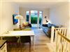 Durch den Flur, mit Zugang zum ersten Bad, erreichen Sie den großzügigen offenen, hellen Wohnraum mit Einbauküche, TV und dem Sofa. Von hier gelangen Sie auf die Süd-Terrasse von der aus - nach Süd-Westen ausgerichtet - Sie die Sylter Abendsonne genießen können. Durch die interne Treppe erreichen Sie die beiden Schlafzimmer, und das vollwertige und großzügige Bad. Beide Schlafzimmer verfügen über hochwertige Einbauten und Betten.