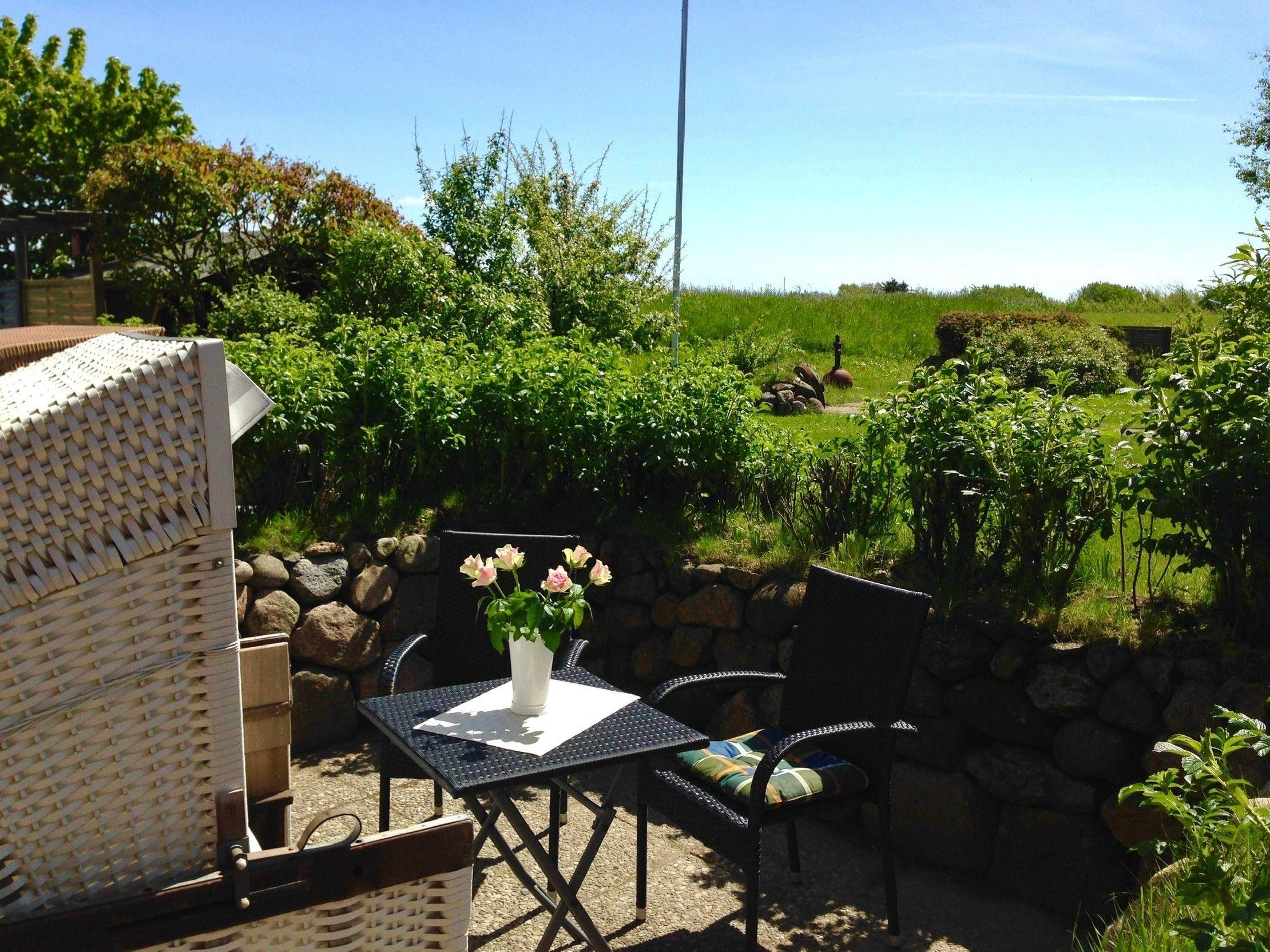 - Auf Ihrer Südterrasse befindet sich ein Strandkorb, Tisch und schöne Korbmöbel.