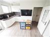 Küchenzeile: Die offene Küchenzeile ist funktional eingerichtet mit einem 2-Platten-Cerankochfeld, einem Mikrowellengrill und einem Kühlschrank – ideal für die Zubereitung kleiner Mahlzeiten oder Snacks.