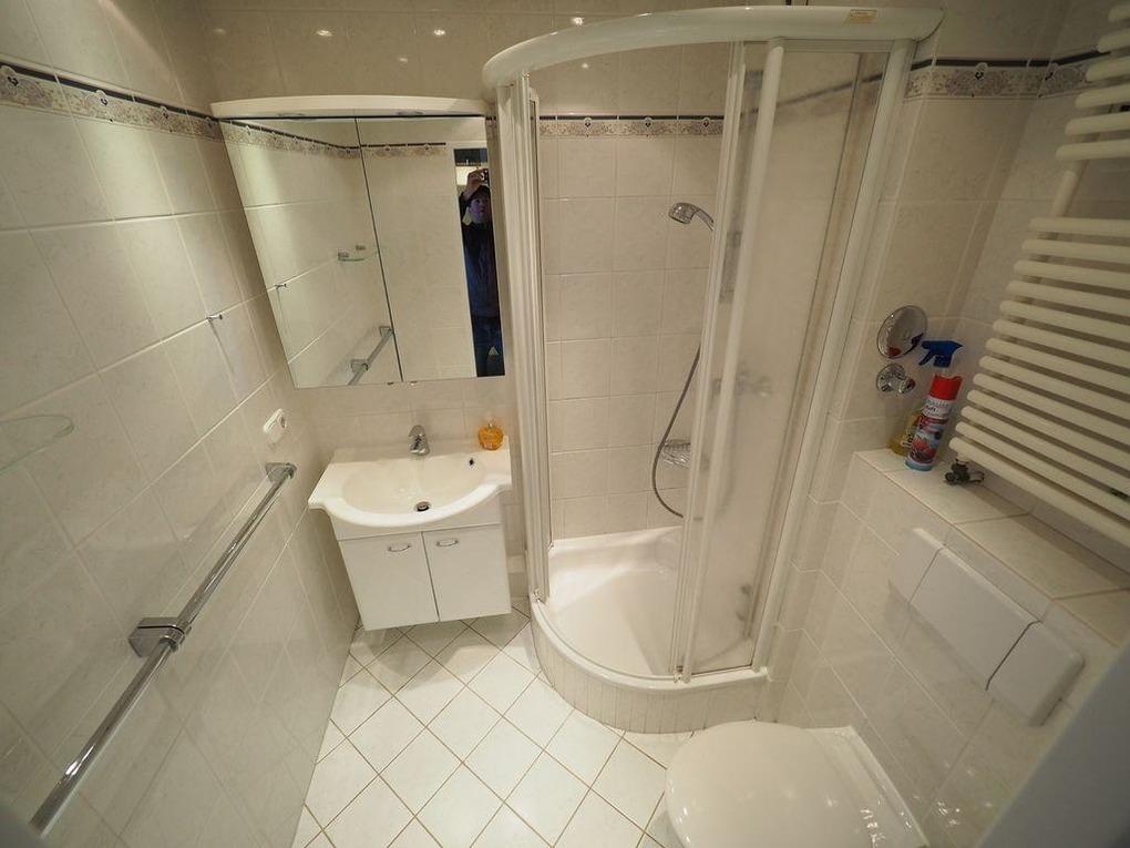Das Duschbad mit WC sorgt für zusätzlichen Komfort während Ihres Aufenthalts. Das Schlafzimmer bietet zwei getrennte Betten (90 x 200 cm und 90 x 190 cm), die für eine erholsame Nachtruhe sorgen.