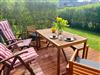 Der Garten ist auch vom Wohnzimmer aus über die Holzterrasse begehbar.