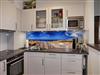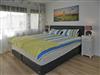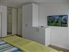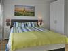 Das Schlafzimmer bietet ein bequemes Boxspringbett. Die Wohnung hat pflegeleichten Vinyl-Designboden und ein gefliestes Bad mit flacher Dusche, WC, Waschtisch und integrierter Infrarot-Sauna. Die Küche ist komplett ausgestattet, inklusive Cerankochfeld, Backofen, Mikrowelle und den wichtigsten Geräten.
