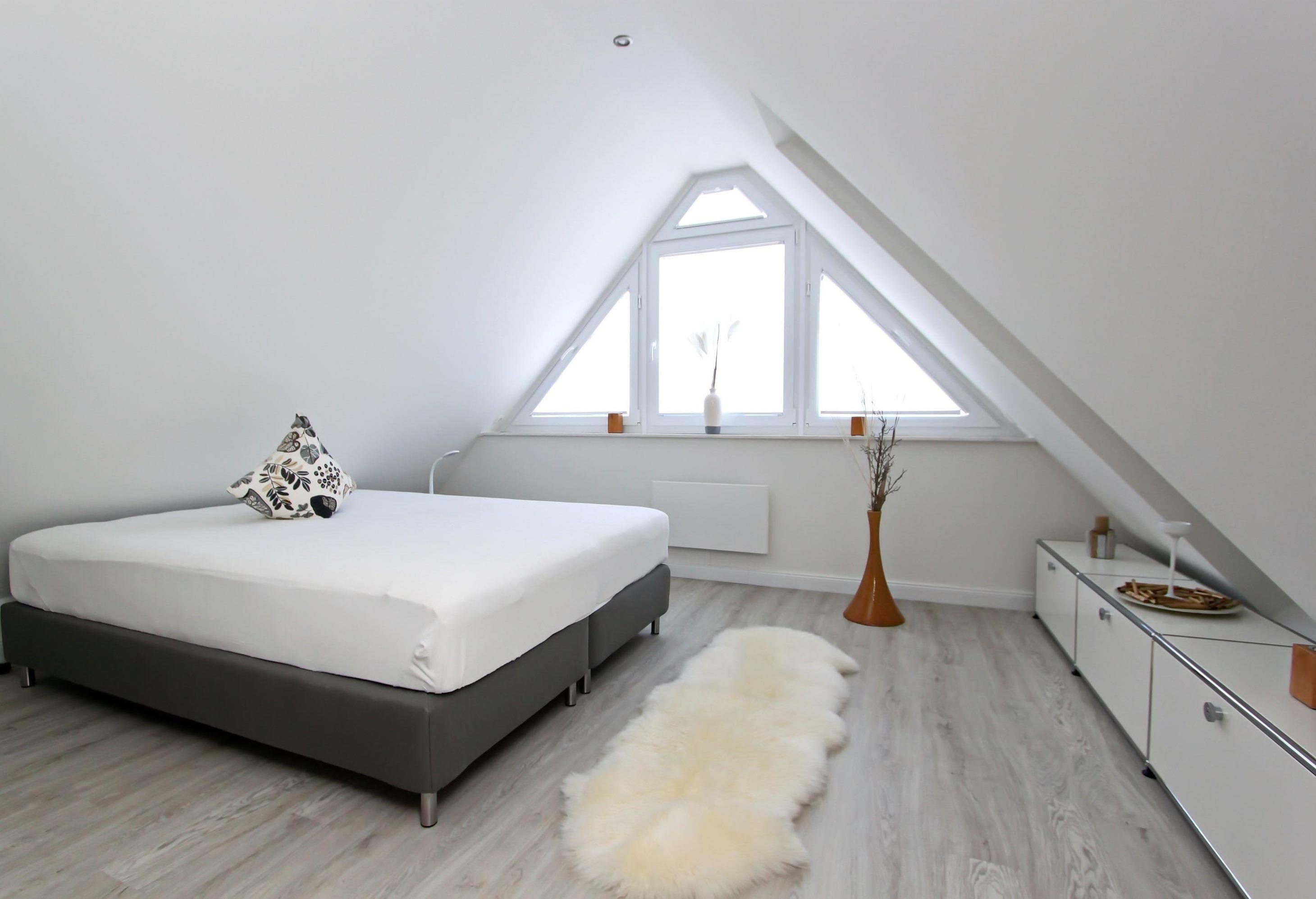 Das neuwertige und wunderbar helle Appartement Strandlicht (DTV****) bietet auf 65 Quadratmetern reichlich Platz für bis zu vier Gäste. Die Wohnfläche verteilt sich über zwei Ebenen im Ober- und Dachgeschoss des Hauses.