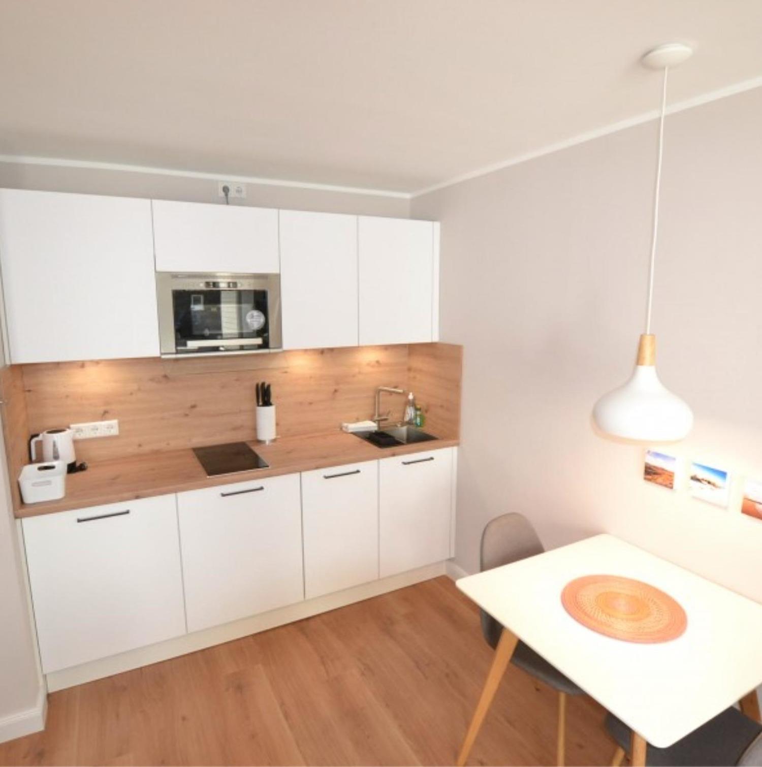 Das gemütliche und freundliche Appartement bietet Platz für bis zu 2 Personen und ist ideal für Paare oder Alleinreisende. Die moderne Einrichtung umfasst ein komfortables Boxspringbett (180x200 cm), in dem Sie wunderbar schlafen werden. Die Süd-Loggia lädt zum Verweilen ein – genießen Sie hier Ihr Frühstück oder ein Glas Wein am Abend, während die Sylter Brise sanft durch die Luft weht.