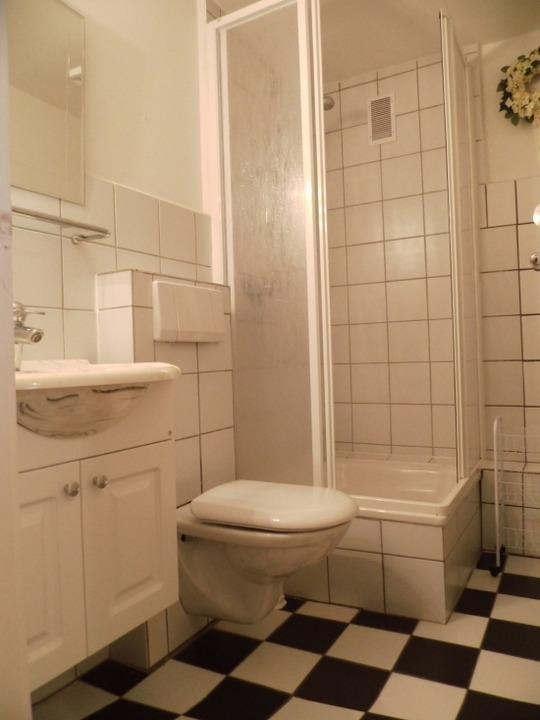 Die Wohnung ist ca. 34 qm groß und befindet sich in der 2. Etage. Im Eingangsbereich befindet sich eine neue kleine, weiße Küchenzeile mit 2-Cerankochfeldern, Mikrowelle mit Grill, Geschirrspüler und Kühlschrank. Das Duschbad ist weiß gefliest und hat ein hübsches, marmoriertes Waschbecken und einen schwarz/weißen Fußboden (gefliest). Im gut eingerichteten Wohnraum steht eine weiße Appartementwand mit ausklappbaren Betten, eine gemütliche Zweiercouch, ein Sessel, ein Glastisch und ein Flachbildfernseher an de Wand hängend runden das Bild ab. Durch die Verdunklungsplissees ist für einen erholsamen Schlaf gesorgt. Im Haus steht Ihnen ein offenenes WLAN-Netz (ohne Gewähr) zur Verfügung. Ein Essbereich für 2 Personen ist ebenfalls vorhanden.