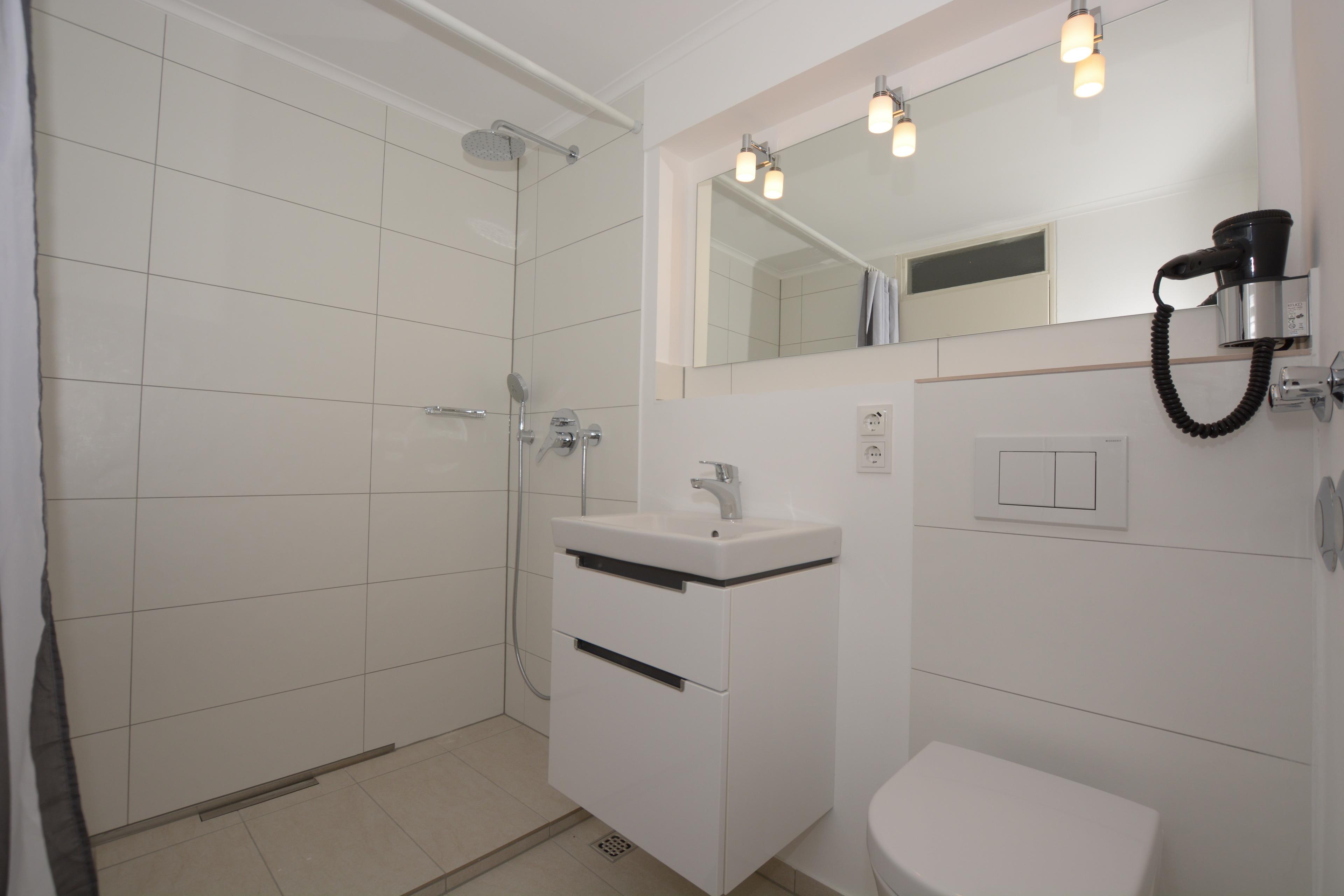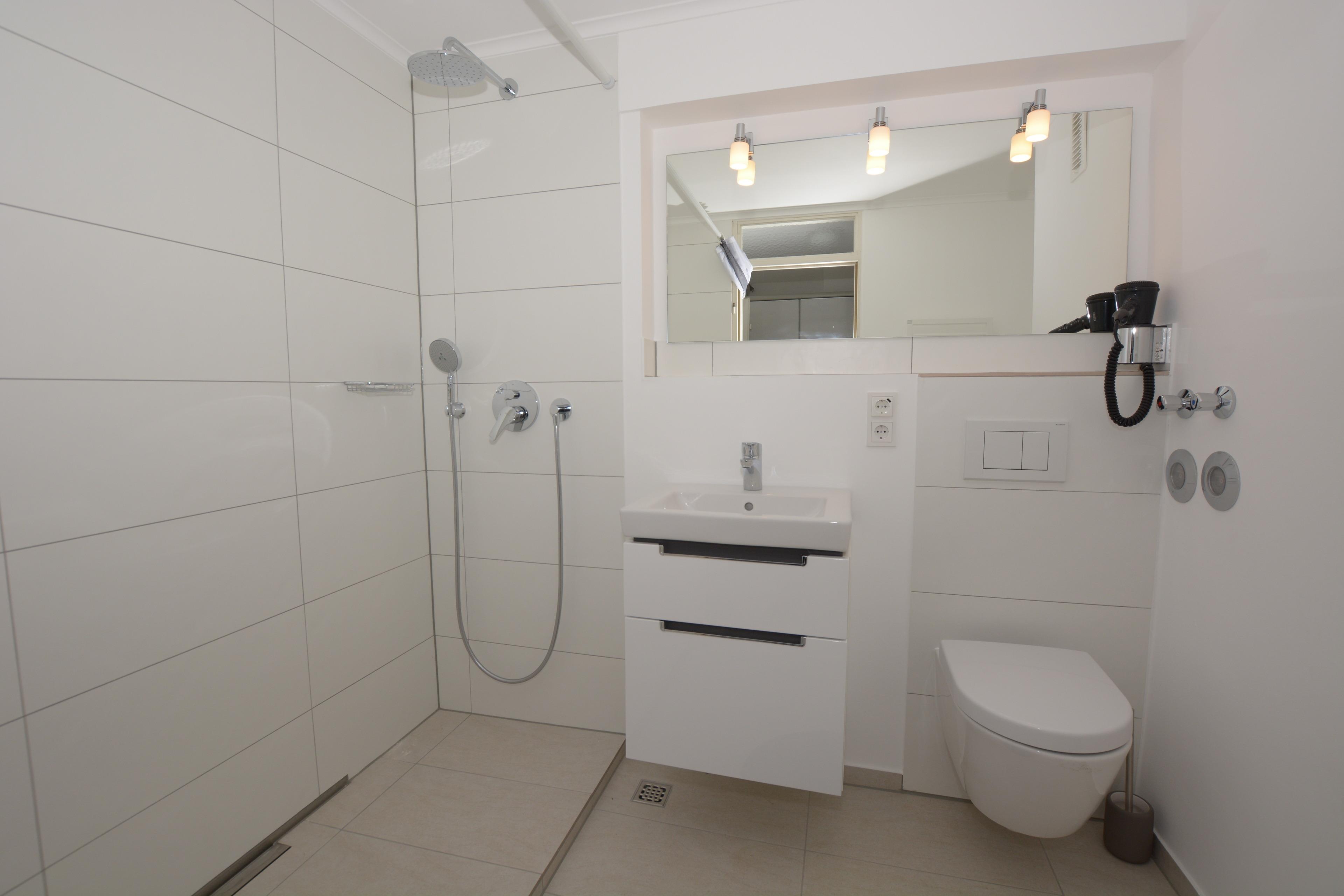 Im weißgefliesten Flurbereich befindet sich eine helle Küchenzeile mit 2-Platten-Herd, Kühlschrank und Mikrowelle. Das helle und moderne Duschbad verfügt über eine großzügige Doppeldusche mit Flacheinstieg, eine Handtuchheizung, einen Föhn und einem Waschtisch mit Unterschrank. Das Wohnzimmer ist mit einem weiß/blauem PVC-Fußboden ausgelegt. Eine neue Schlafcouch (140x200), Esstisch mit zwei Stühlen, Kleiderschrank, Flachbild-TV, sowie ein Arbeitsplatz und ein großer Balkon mit Blick über Westerland und die Insel Sylt sind ebenfalls vorhanden. Im gesamten Haus steht Ihnen ein freier WLAN-Zugang (ohne Gewähr) zur Verfügung.