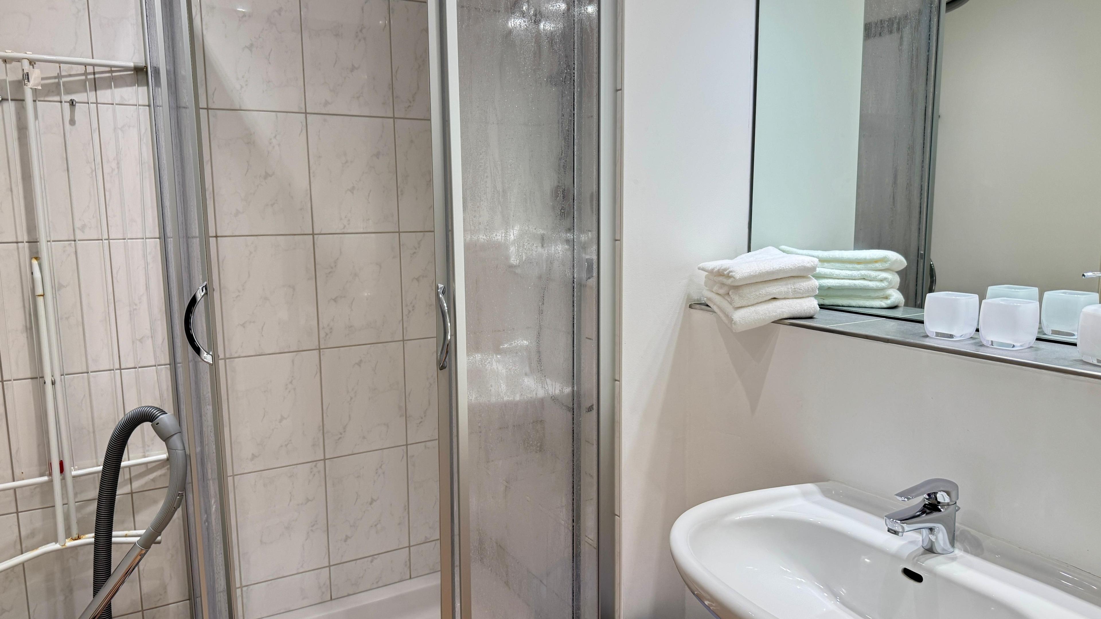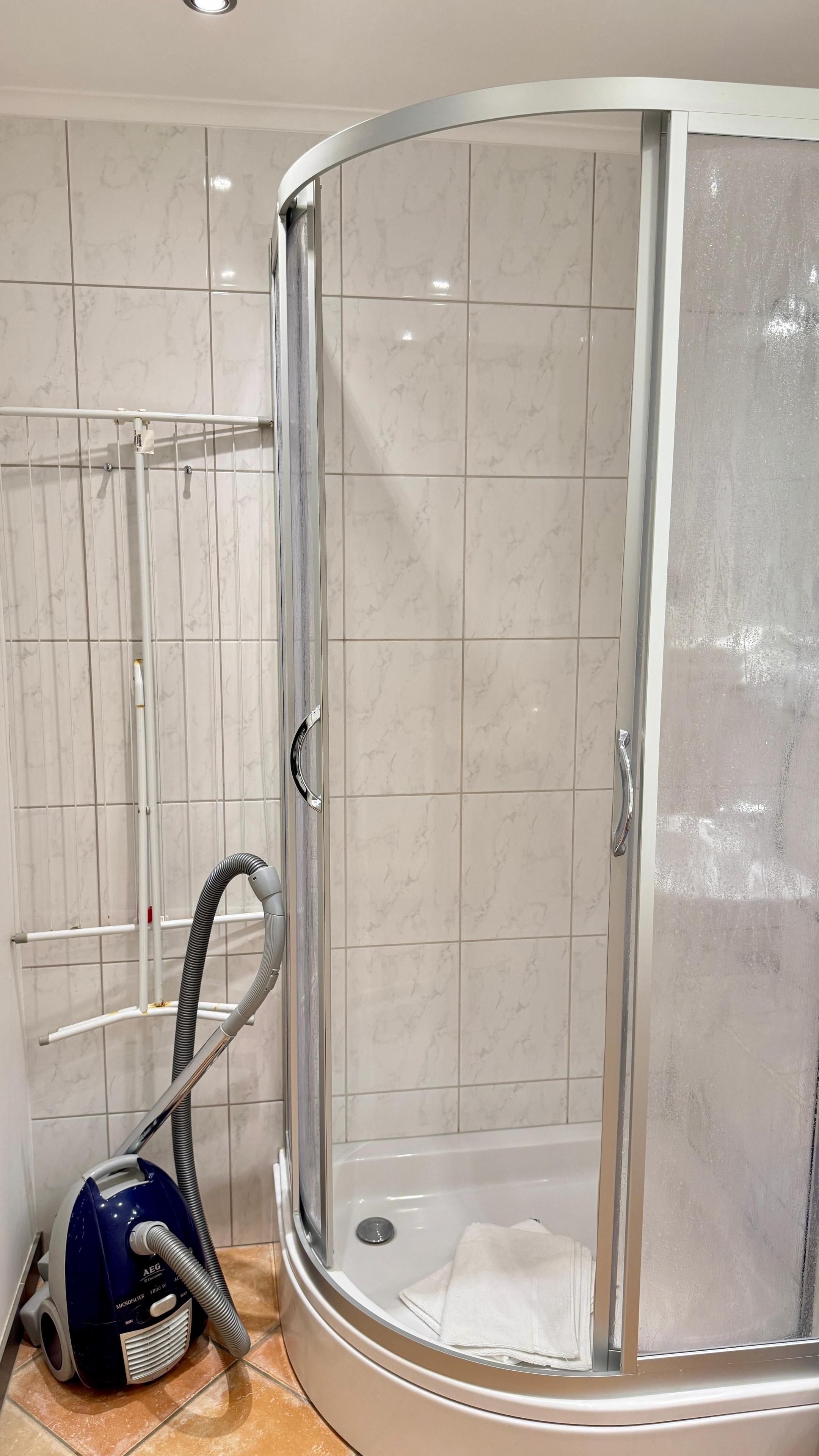 Das Appartement ist komplett mit terracottafarbenen Fliesen ausgelegt. Im Wohnraum steht Ihnen eine weiße Appartementwand mit Einzelbetten, sowie eine Sitz- und Eßecke und ein Flachbildfernseher ( an der Wand hängend) zur Verfügung. Im Flurbereich befindet sich eine voll ausgestattete Küchenzeile mit Mikrowelle und Geschirrspüler. Das Duschbad ist weiß gefliest.