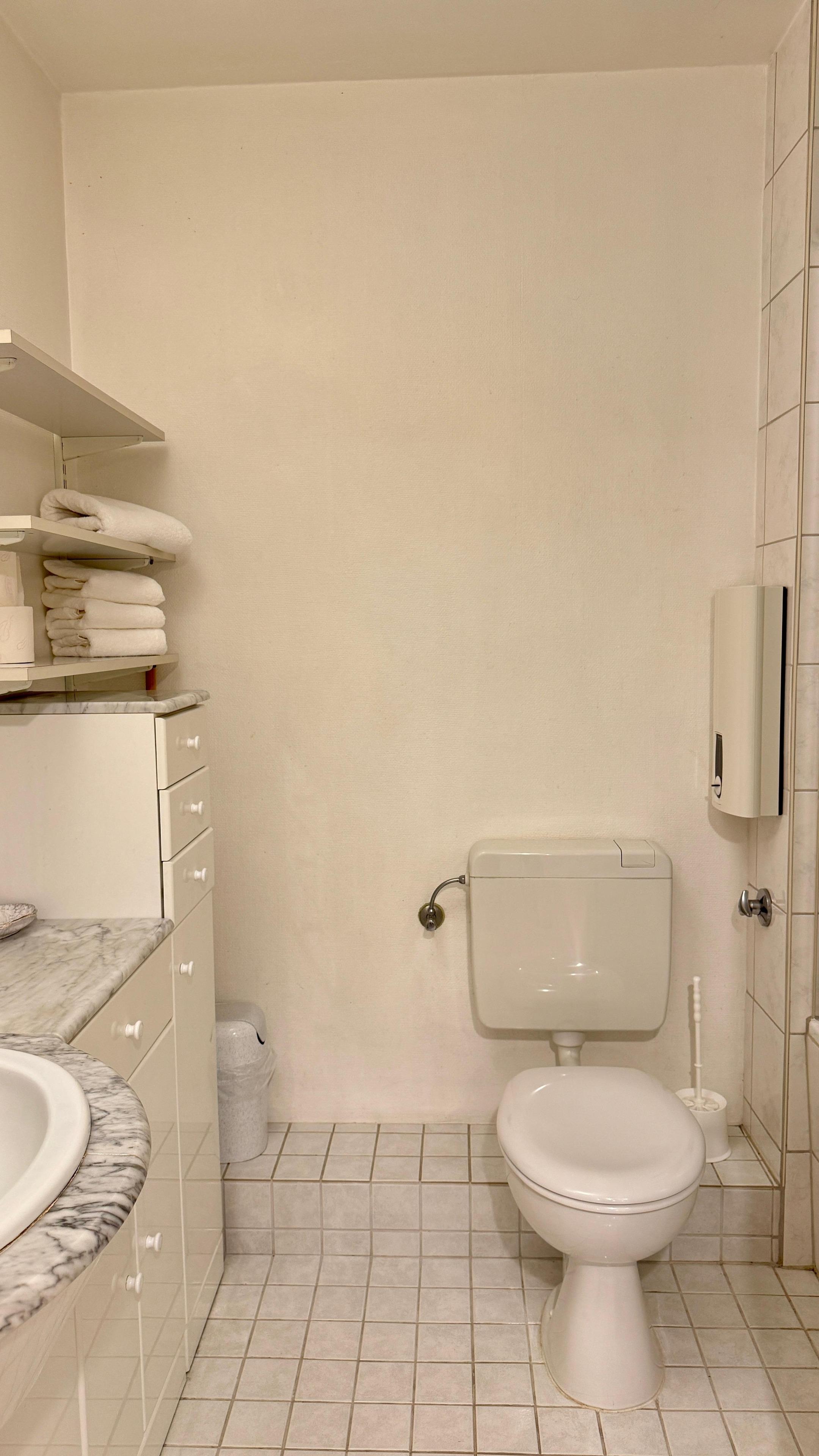 Verbrauchsmaterial, wie Mülleimerbeutel, Toilettenpapier, Spülmittel sind als Erstausstattung in der Wohnung vorhanden.