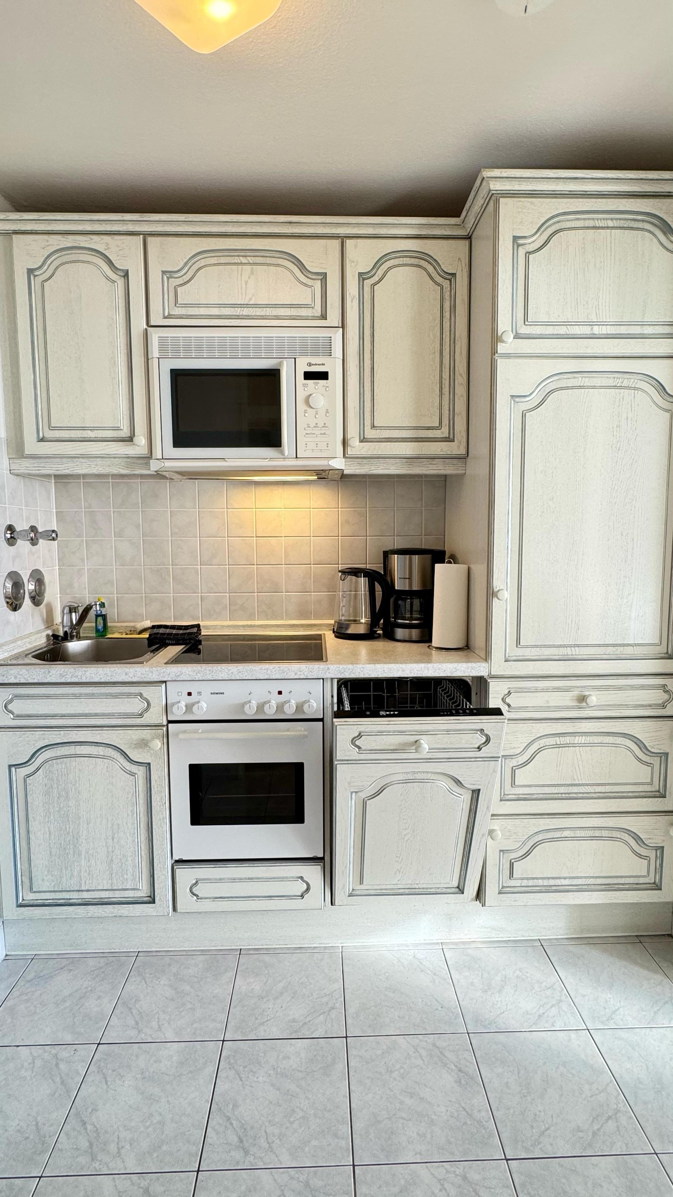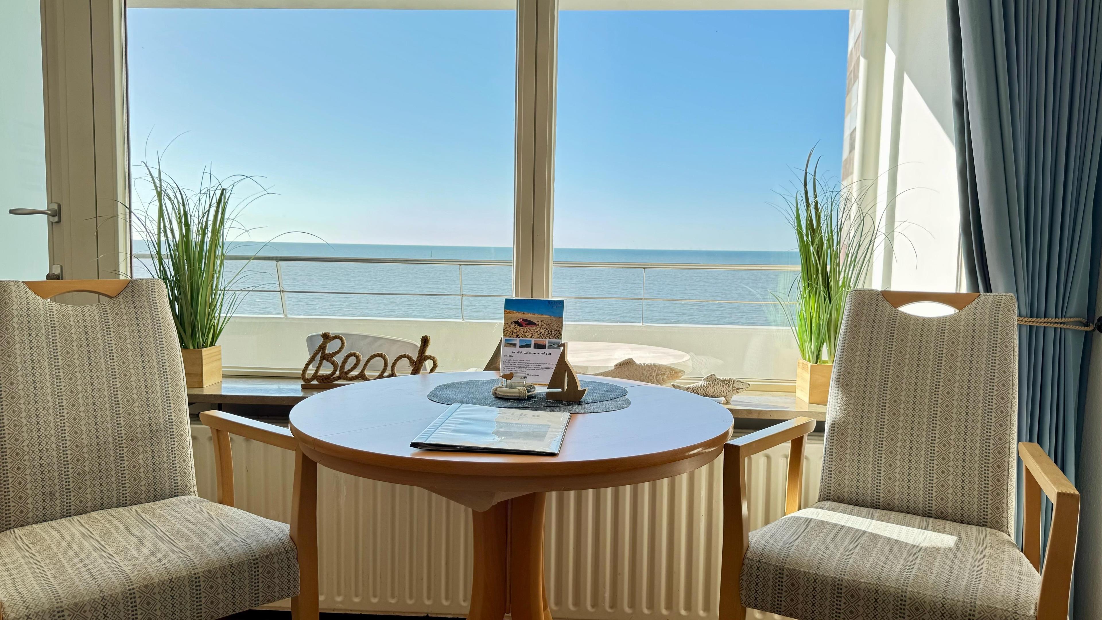 Dieses helle, gut ausgestattete 1-Raum-Appartement befindet sich in der 6. Etage des Hauses "Haus am Meer" im Kurzentrum Westerlands und hat ca. 34 m² Wohnfläche. Es besitzt eine voll ausgestattete Küchenzeile mit einem 4 Flammen-Ceranfeld, Geschirrspüler, Backofen, Kühlschrank, Kaffeemaschine, Wasserkocher, Toaster und Mikrowelle sowie ein weißes Bad mit Dusche/Vollbad. Im gemütlich eingerichteten Wohnraum befindet sich eine bequeme Couch mit Tisch, eine Appartementwand mit einem Doppelbett, sowie Kabel-Flachbild-TV und ein Radio. Im gesamten Haus steht Ihnen ein freier WLAN-Zugang (ohne Gewähr) zur Verfügung. Direkt vor dem Fenster zur Seeseite ist der Essbereich eingerichtet und bietet beim Speisen einen einmaligen Ausblick über die Nordsee. Der Westbalkon ist mit Balkonmöbeln ausgestattet und bietet einen traumhaften Seeblick bis zum endlosen Horizont.