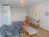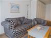 Im Wohnbereich befindet sich ein bequemes Sofa und ein Sessel vor dem Flachbildfernseher, auch eine Stereoanlage ist im Fernsehschrank untergebracht. Gleich daneben befindet sich der Essbereich mit Tisch und Stühlen .