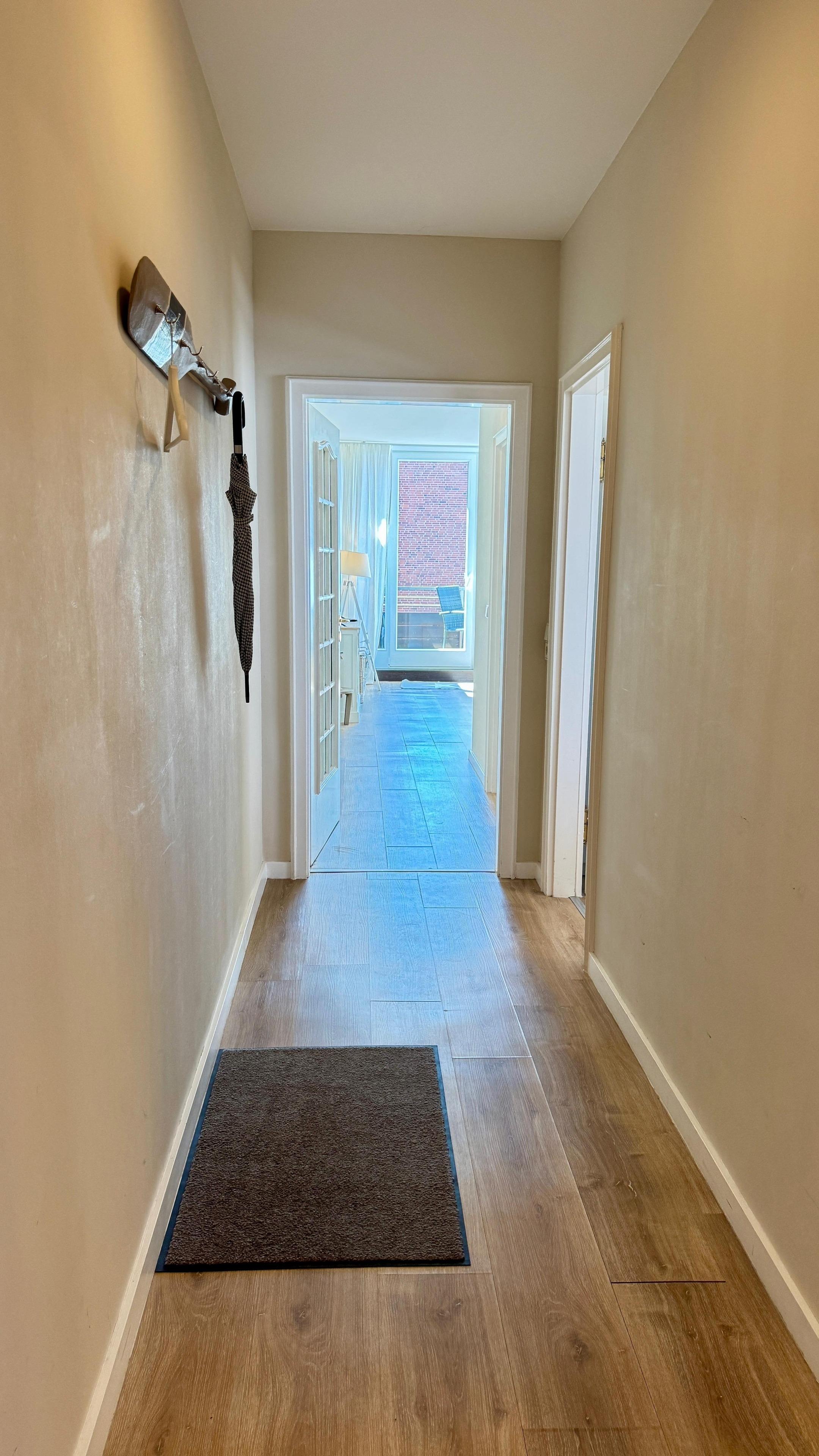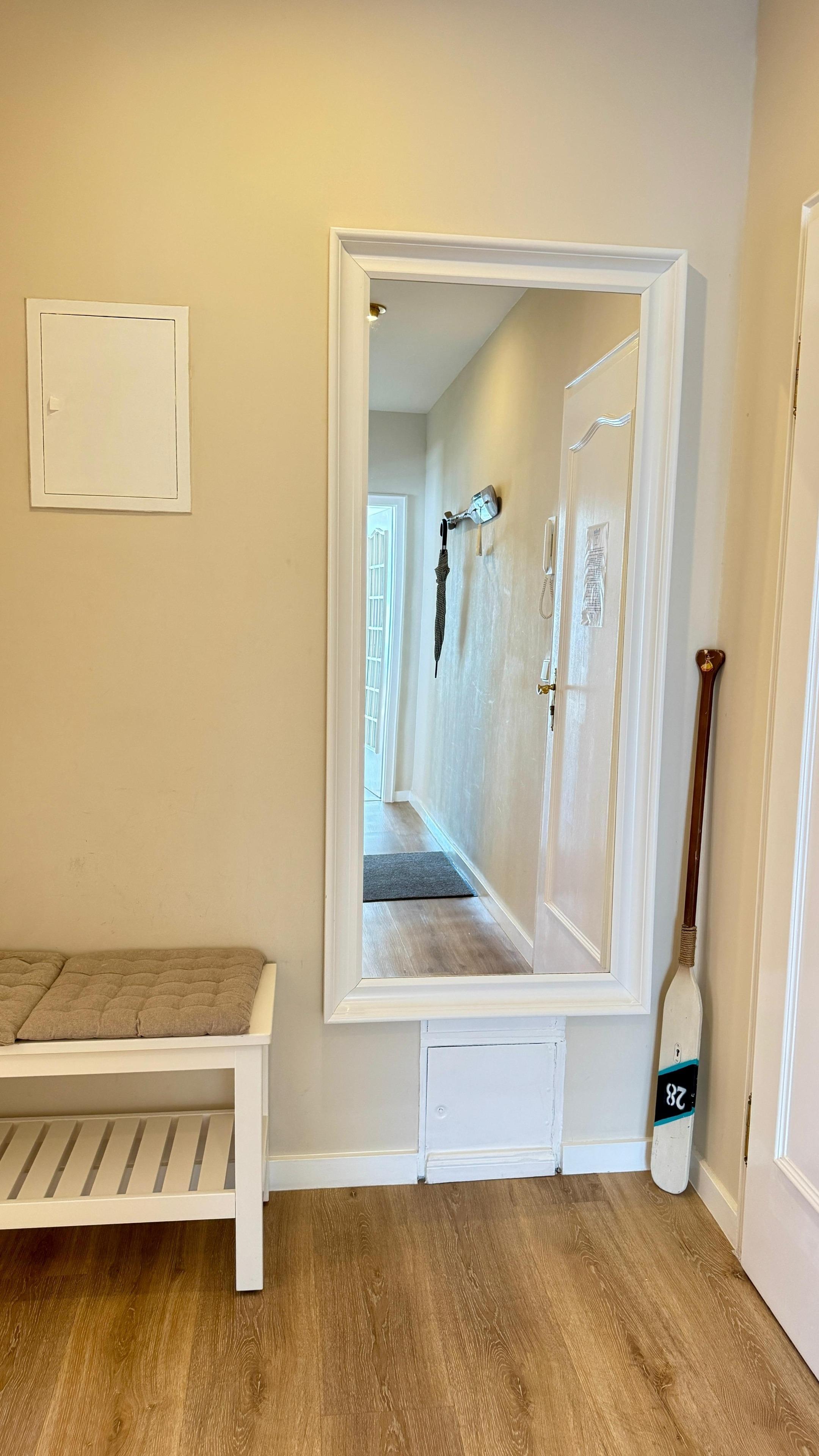Im Wohnungsflur befindet sich die Garderobe und eine kleine Sitzbank.