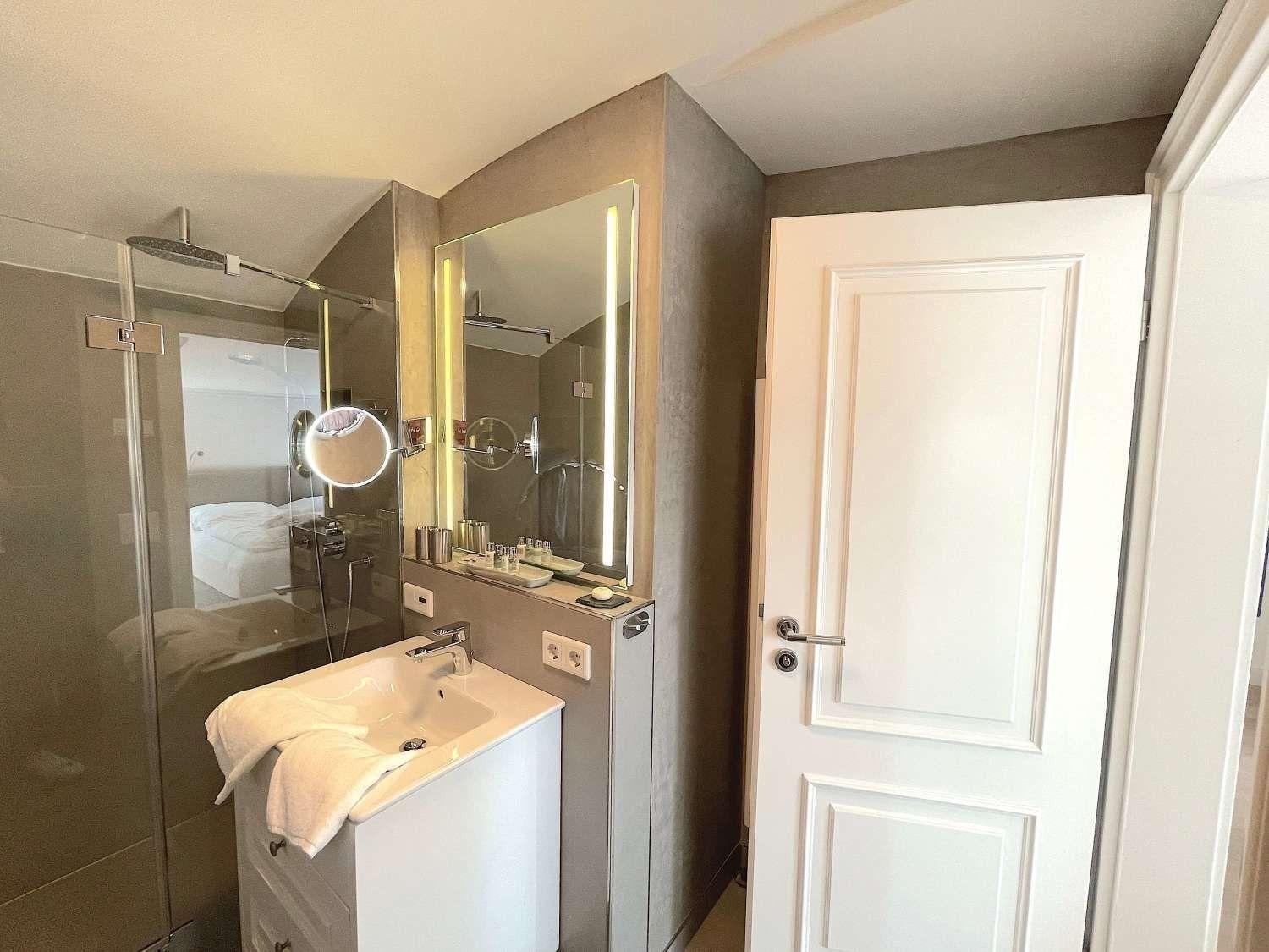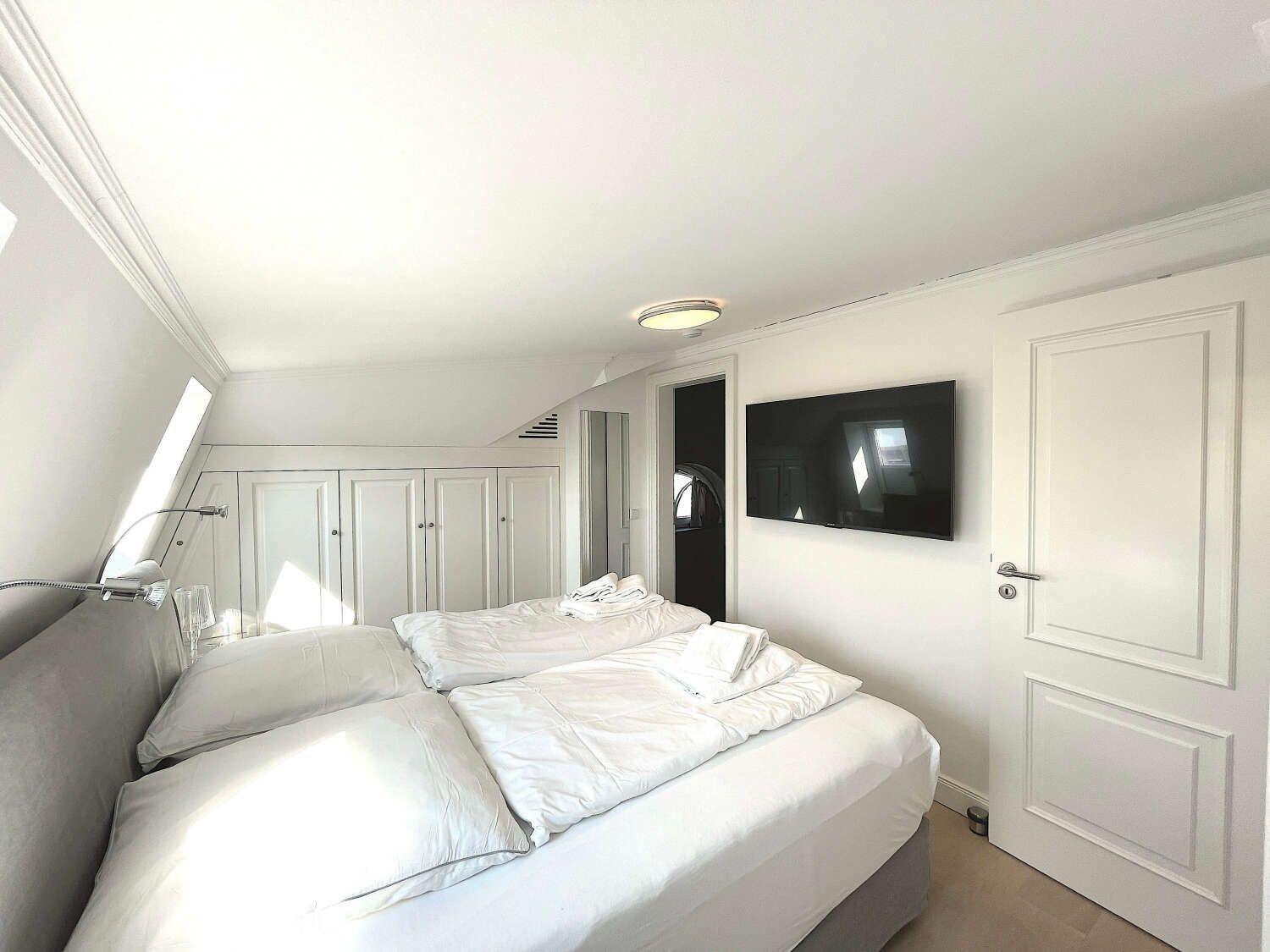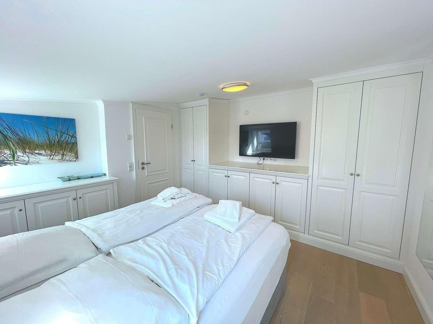 Durch die interne Treppe erreichen Sie die beiden Schlafzimmer, die jeweils über ein Bad en Suite verfügen . Beide Schlafzimmer verfügen über hochwertige Einbauten und Betten des Herstellers Schramm.