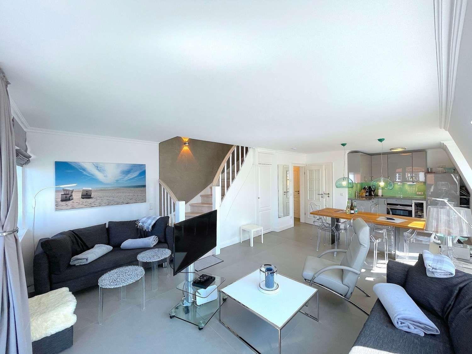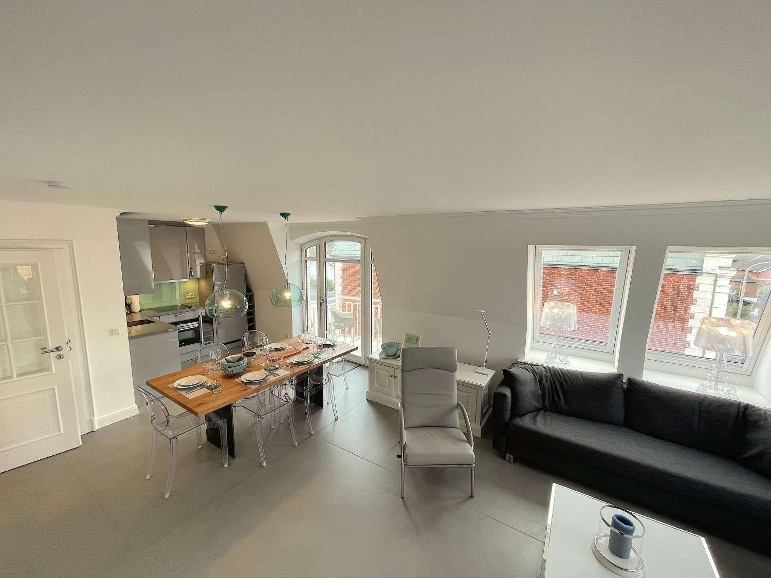 Ihre "Sylter Auberge" im Herzen von Westerland. Das schöne 3-Zimmer Maisonette-Appartement mit Süd und Westbalkon befindet sich im 2018 fertig gestellten Haus Mateika in Westerland in ruhiger aber sehr zentraler Lage.