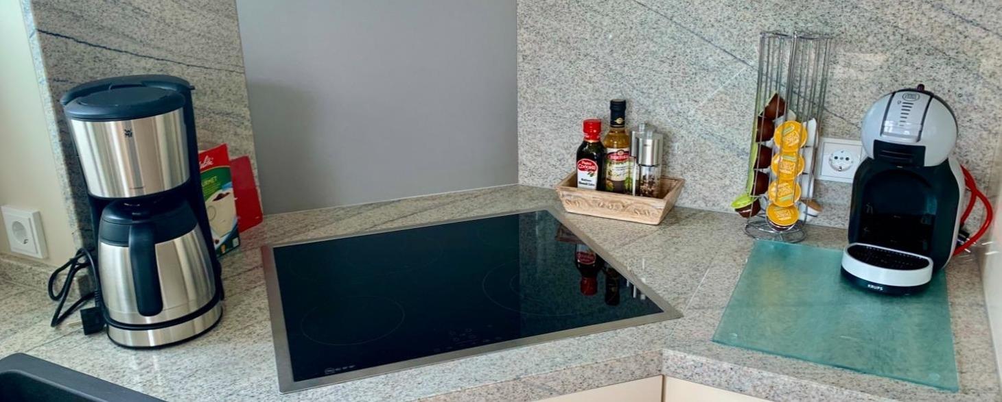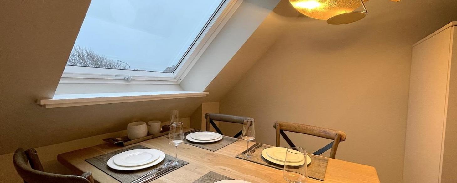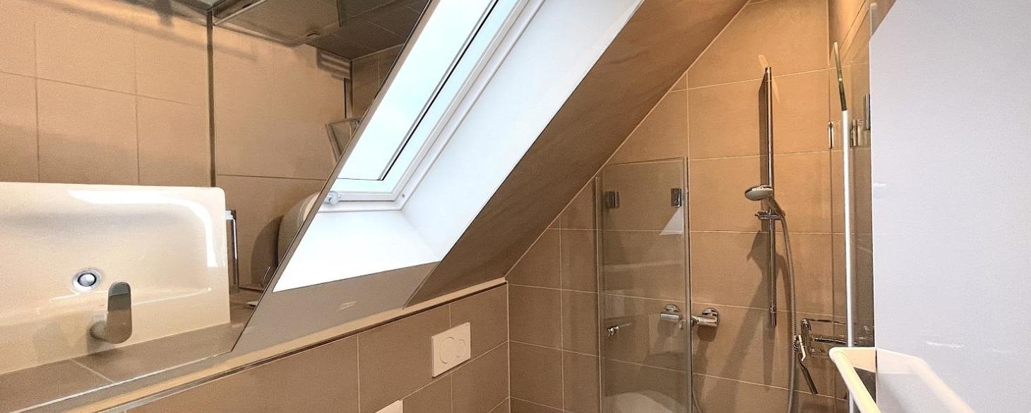 Modern eingerichtet bietet die Ferienwohnung Platz für bis zu 4 Personen. Die Wohnung liegt im Obergeschoss, erreichbar über das gepflegte Treppenhaus. Vom Flur aus gehen Schlafzimmer mit Doppelbett, das Bad und das Wohnzimmer mit Südbalkon ab. Das weitere Schlafzimmer mit Doppelbett erreichen Sie durch die interne Treppe nach oben, dort befindet sich ein weiteres Bad. Der Küchenbereich ist als moderne Küchenzeile in das Wohnzimmer integriert.