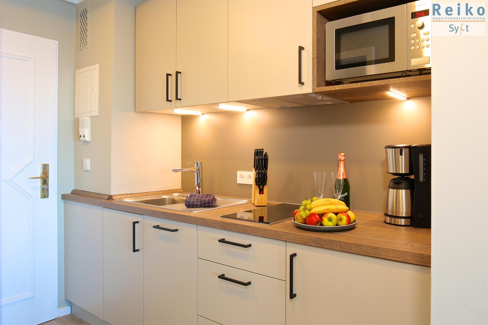 Nordseeblick. Ein Internetanschluss mit WLAN (ohne Gewähr) steht Ihnen zur Verfügung und ein 48 Zoll Flachbild-TV rundet das Bild ab. Die Küchenzeile im Flurbereich ist sehr gut ausgestattet mit einem Kühlschrank, Mikrowelle, Geschirrspüler und einem 2-Platten-Cerankochfeld. Das Duschbad ist eine Kombination aus Holzelementen, grauen Fliesen und weißen Sanitärobjekten und sorgen für eine moderne Atmosphäre.