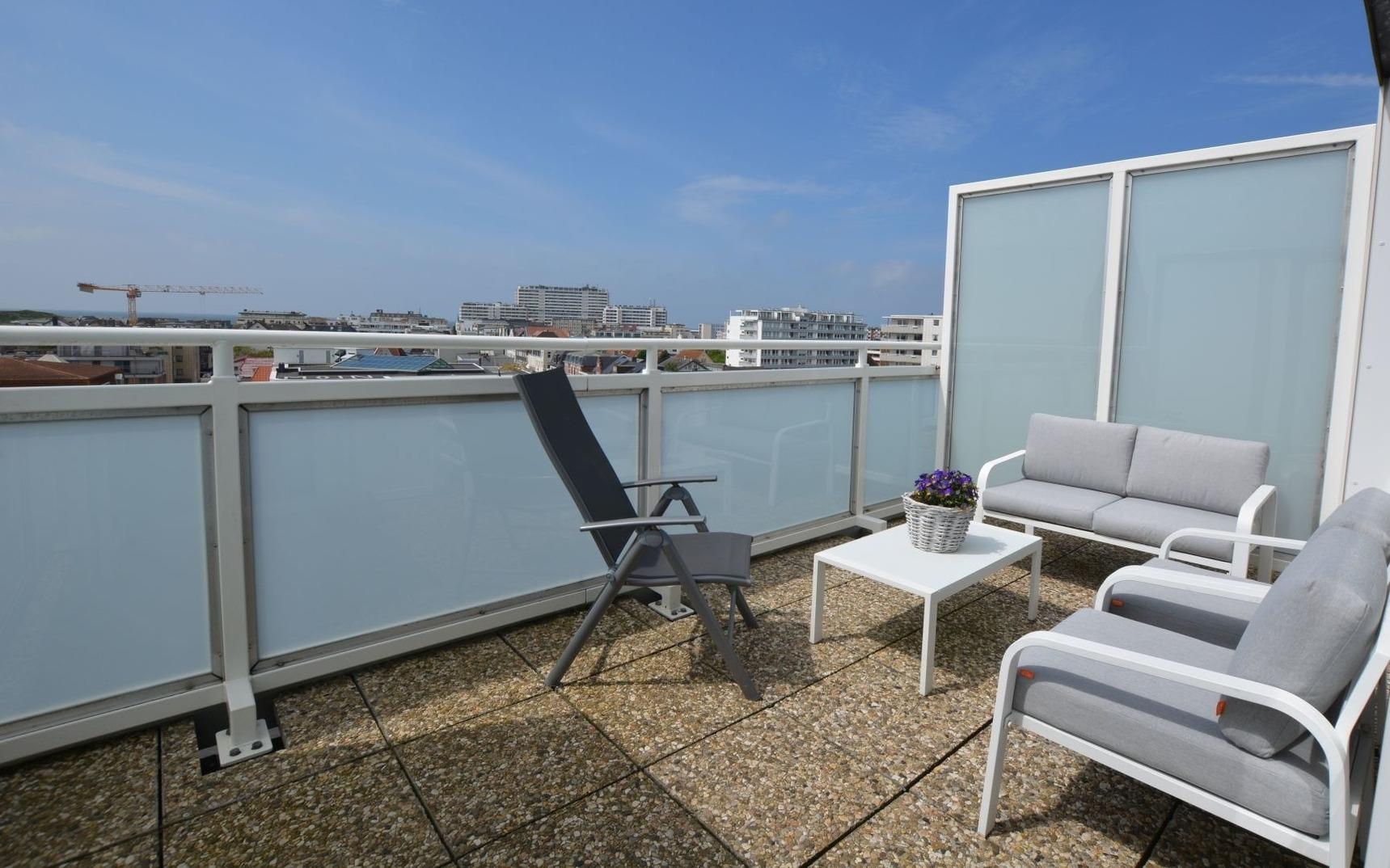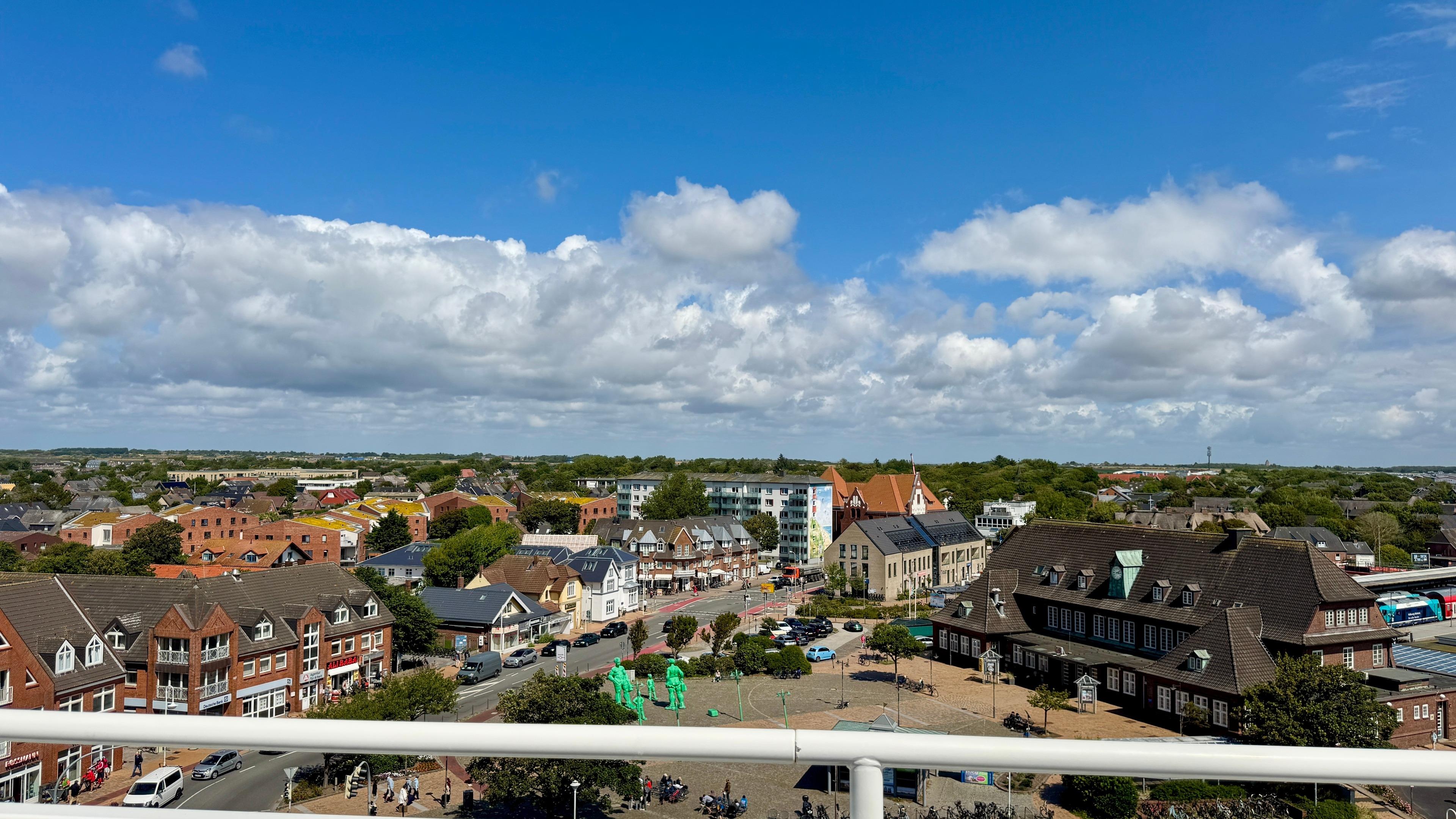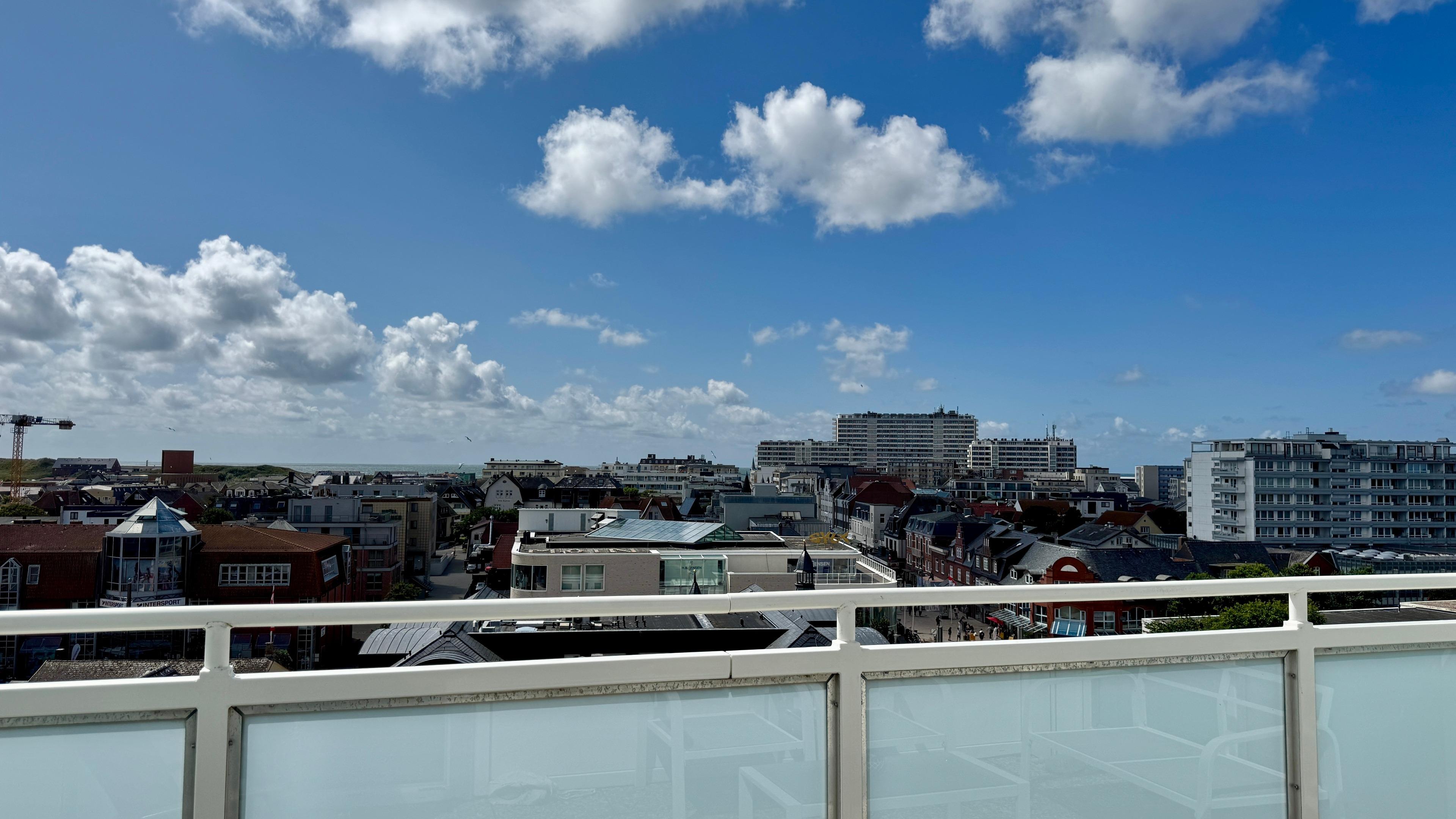 Das Penthouse-Appartement liegt nur etwa 8-10 Gehminuten vom Westerländer Hauptstrand entfernt, hat einen großzügigen Wohn-/Schlafraum und einen Balkon mit einem gigantischem Blick über die Stadt bis zum Meer.