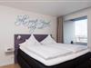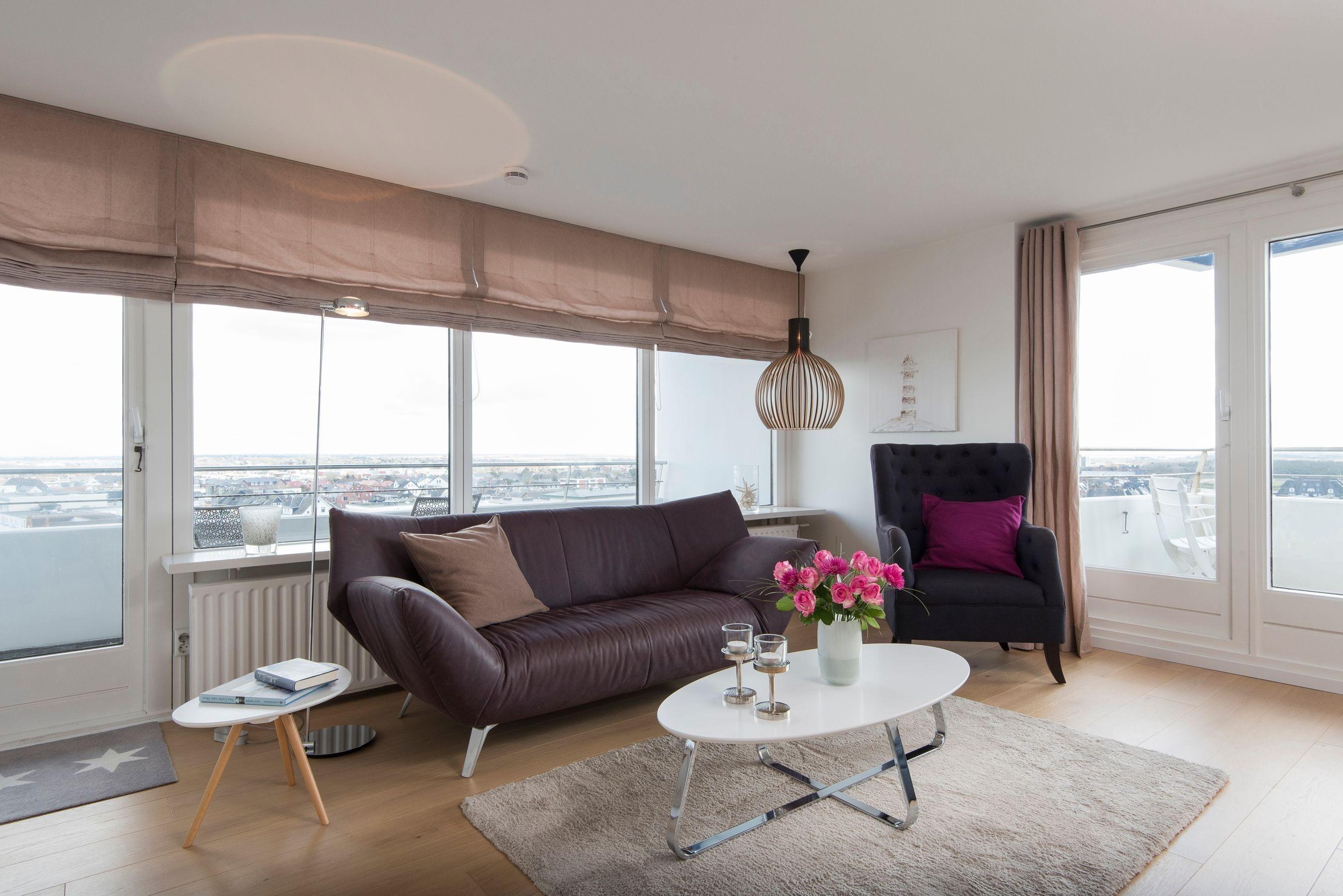 Ein modernes lichtdurchflutetes Appartement mit Blick auf das Meer und die Insel und moderner sehr hochwertiger Einrichtung bietet eine tolle Urlaubsatmosphäre. Ausreichend Schrankplatz, ein modernes Boxspringbett, hochwertiges Eichenparkett in den Wohnräumen, eine Fußbodenheizung im Bad, 2 Flatscreenfernseher, CD-Player lassen keine Wünsche offen. Die Couch auf dem Bild und der Sessel sind durch eine Cor-Couch und einen Cor-Sessel ersetzt worden.