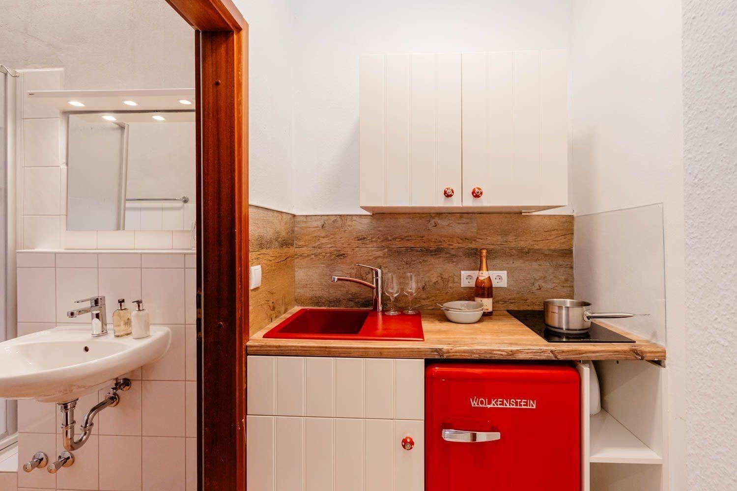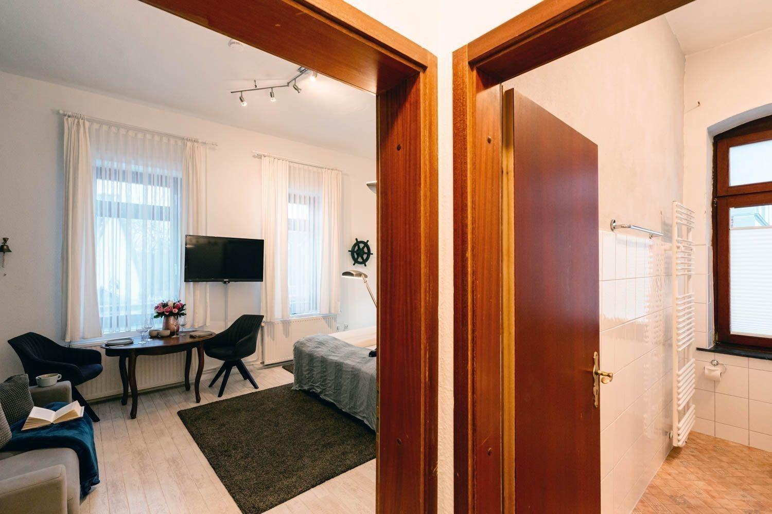 TV / Lesesessel, Esstisch für 2 Personen, sowie ein Kleiderschrank wartet auf Sie. Die Pantry-Küche ist seperat und für zwei Personen ausgerichtet. Das Duschbad / WC verfügt über in Fenster.