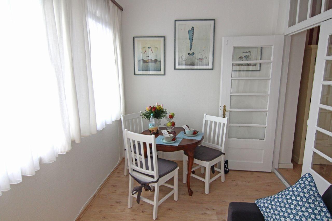 Das Zimmer ist unterteilt in ein Schlafzimmer mit verstellbaren Betten, zwei gemütlichen Lesesesseln, Kleiderschrank. Das zweite Zimmer verfügt über ein Schlafsofa, Esstisch für 3Personen, TV, freies Wlan.