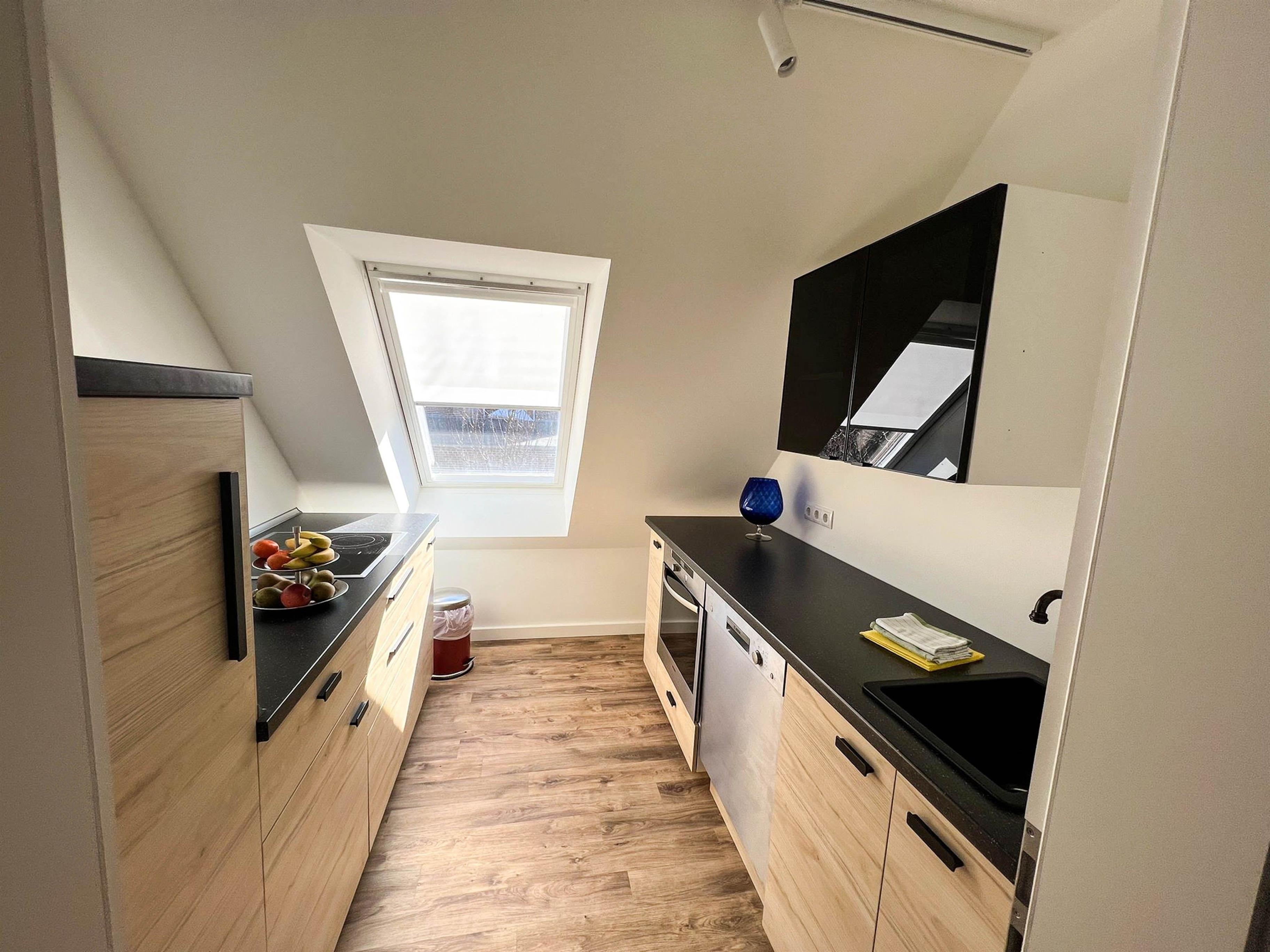 Küche komplett ausgestattet für 4 Personen, mit Geschirrspüler, Herd, Backofen, Kühlschrank,