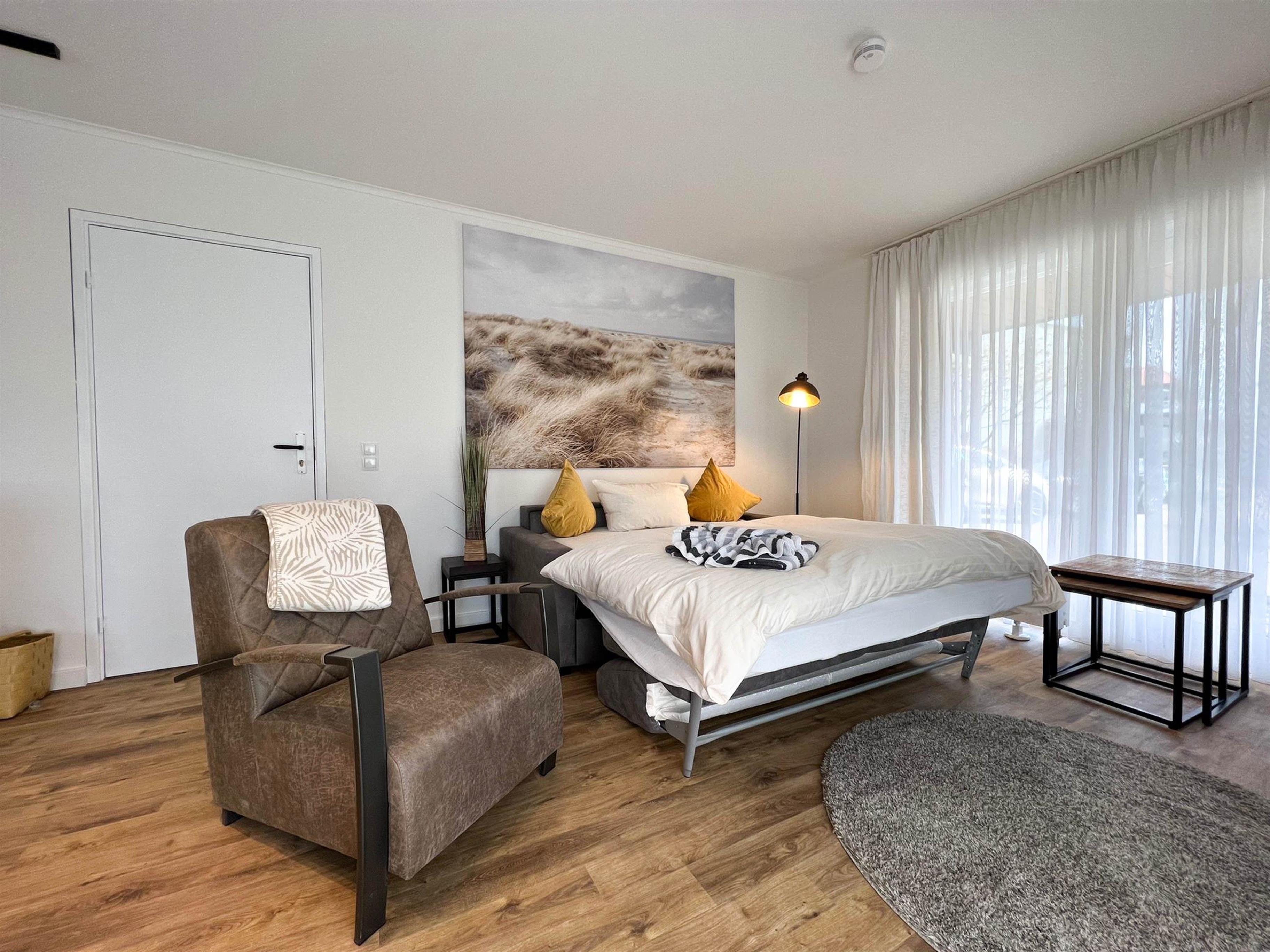 Das großzügige 2 Raum Appartment liegt im "Lillehüs" im Erdgeschoss. Es hat zwei möblierte Terrassen & Strandkorb.