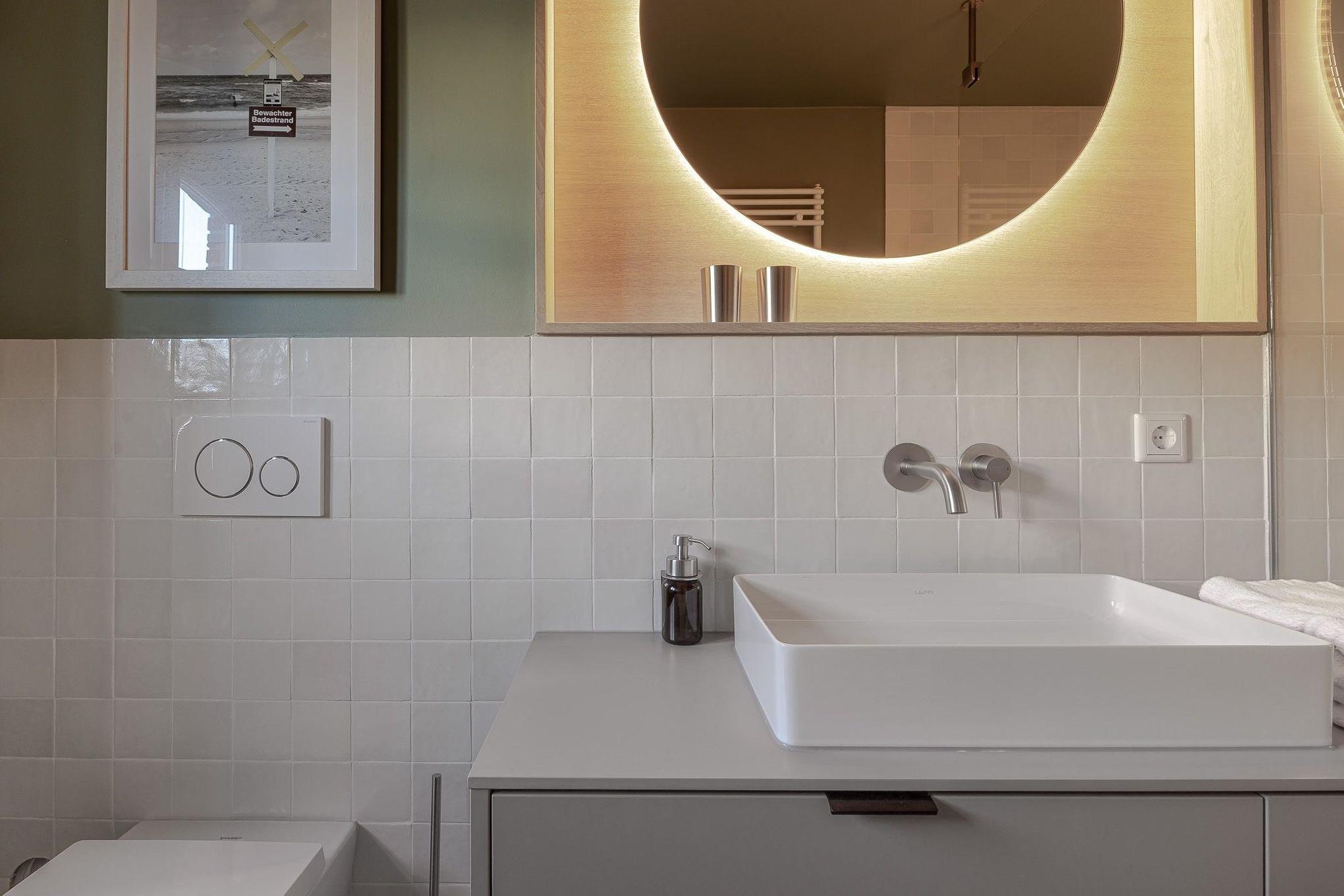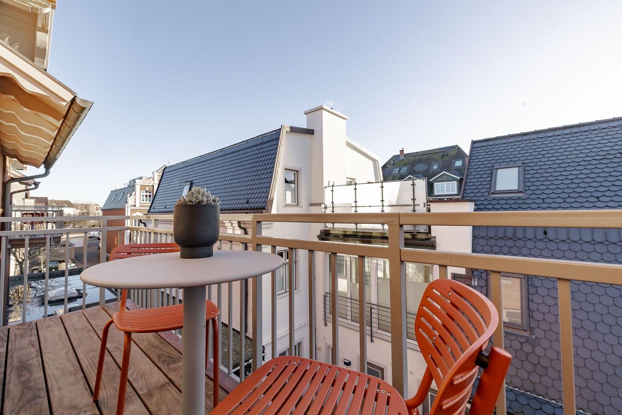Hier ist alles etwas größer als sonst auf Sylt. Sie erreichen die Wohnung im Obergeschoß übers Treppenhaus oder mit dem Fahrstuhl.