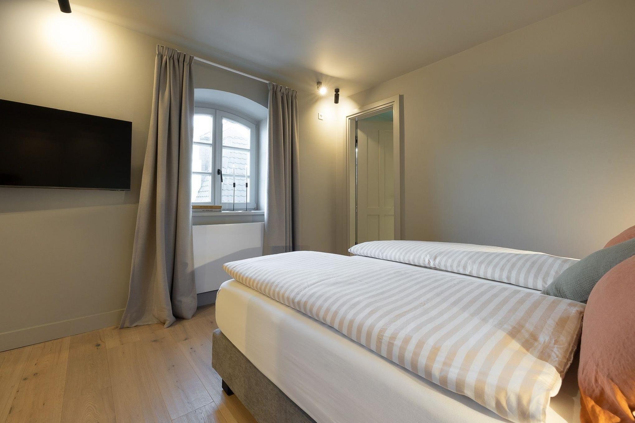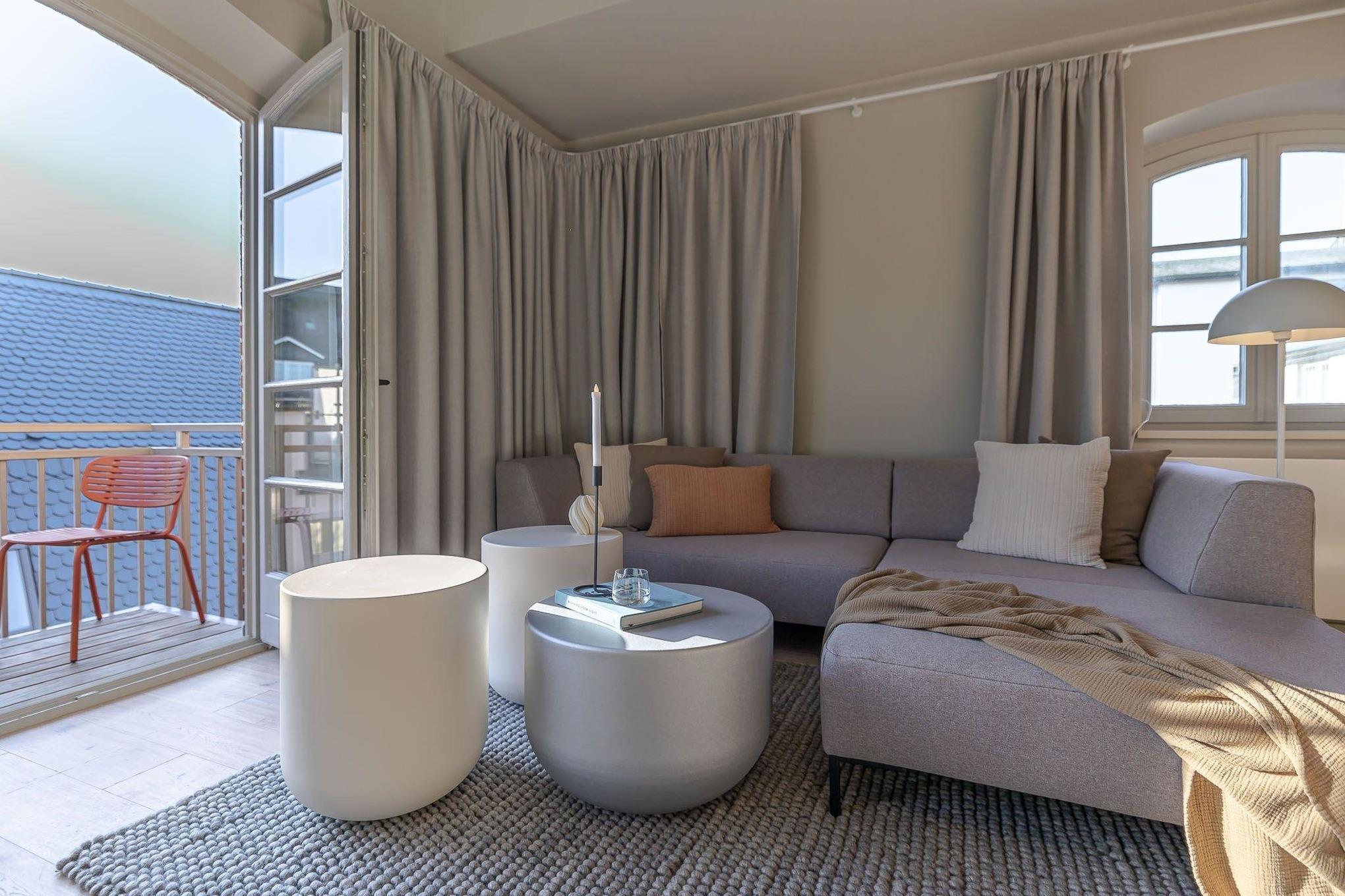 Die Ausstattung der Wohneinheiten ist rund-um auf Wohlfühlen ausgelegt - handgefertigte Tischlereinbauten, hochwertige Betten, ein exklusives Einrichtungskonzept mit Sauna- und Yogabereich sowie Balkon in der Innenstadt.