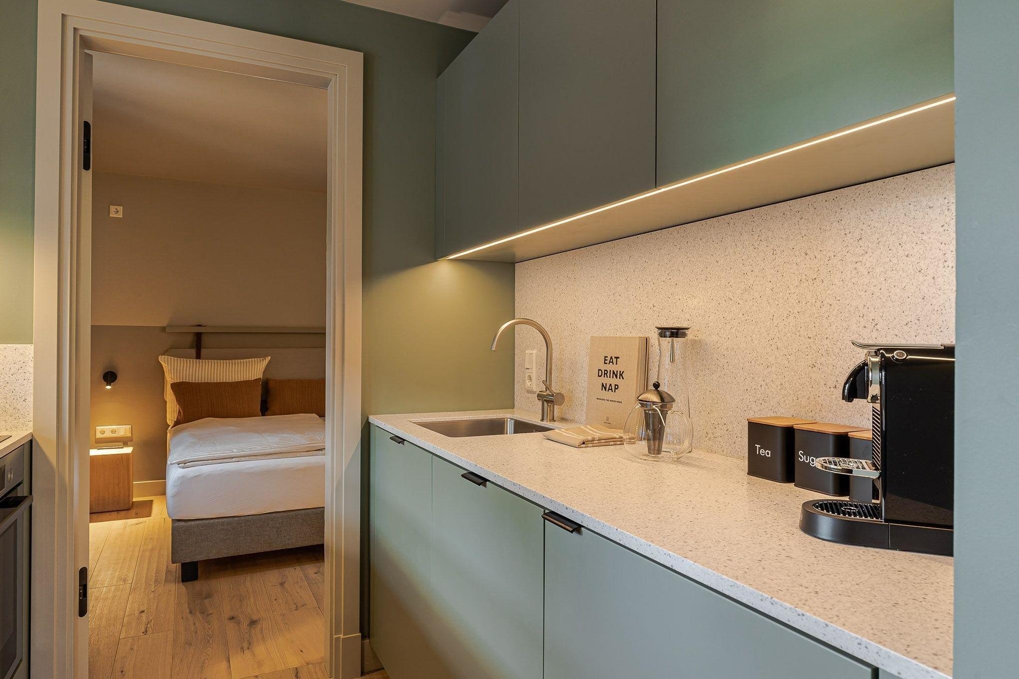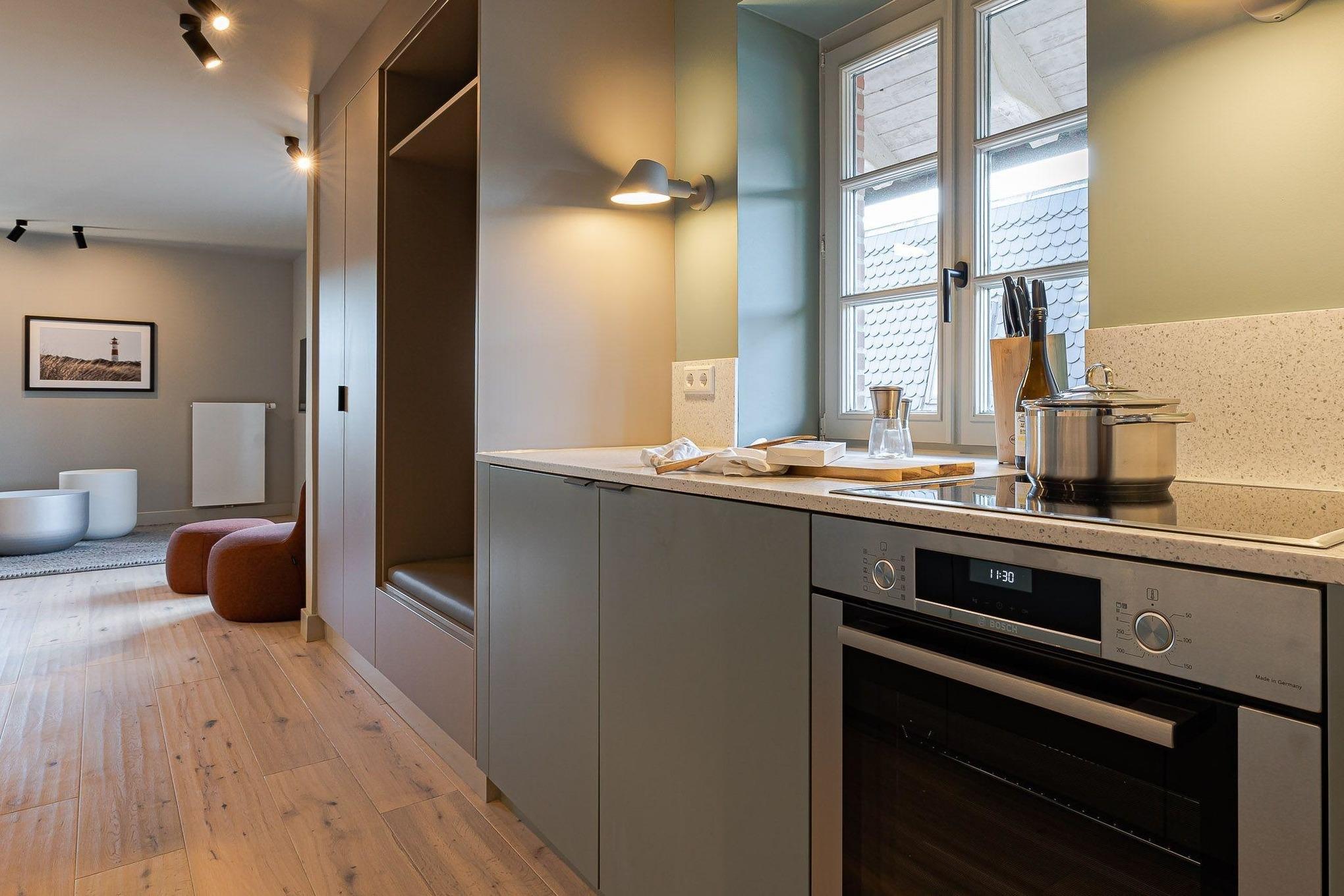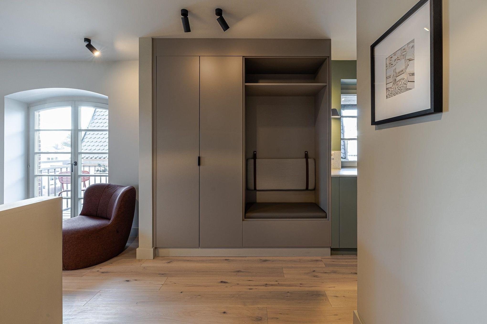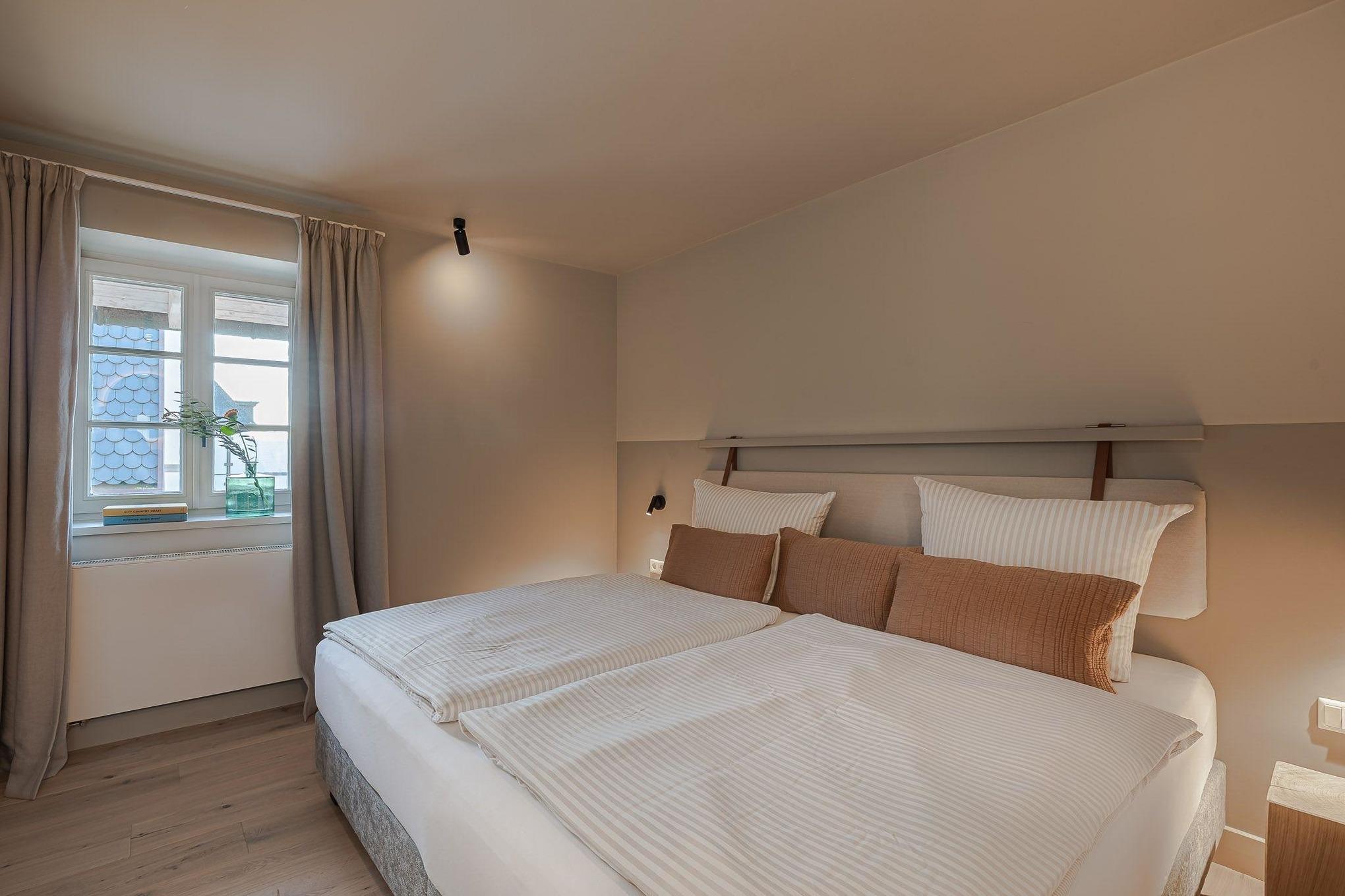 Die Ausstattung der Wohneinheit ist rund-um auf Wohlfühlen ausgelegt - handgefertigte Tischlereinbauten, hochwertige Betten, ein exklusives Einrichtungskonzept mit Balkon in der Innenstadt.