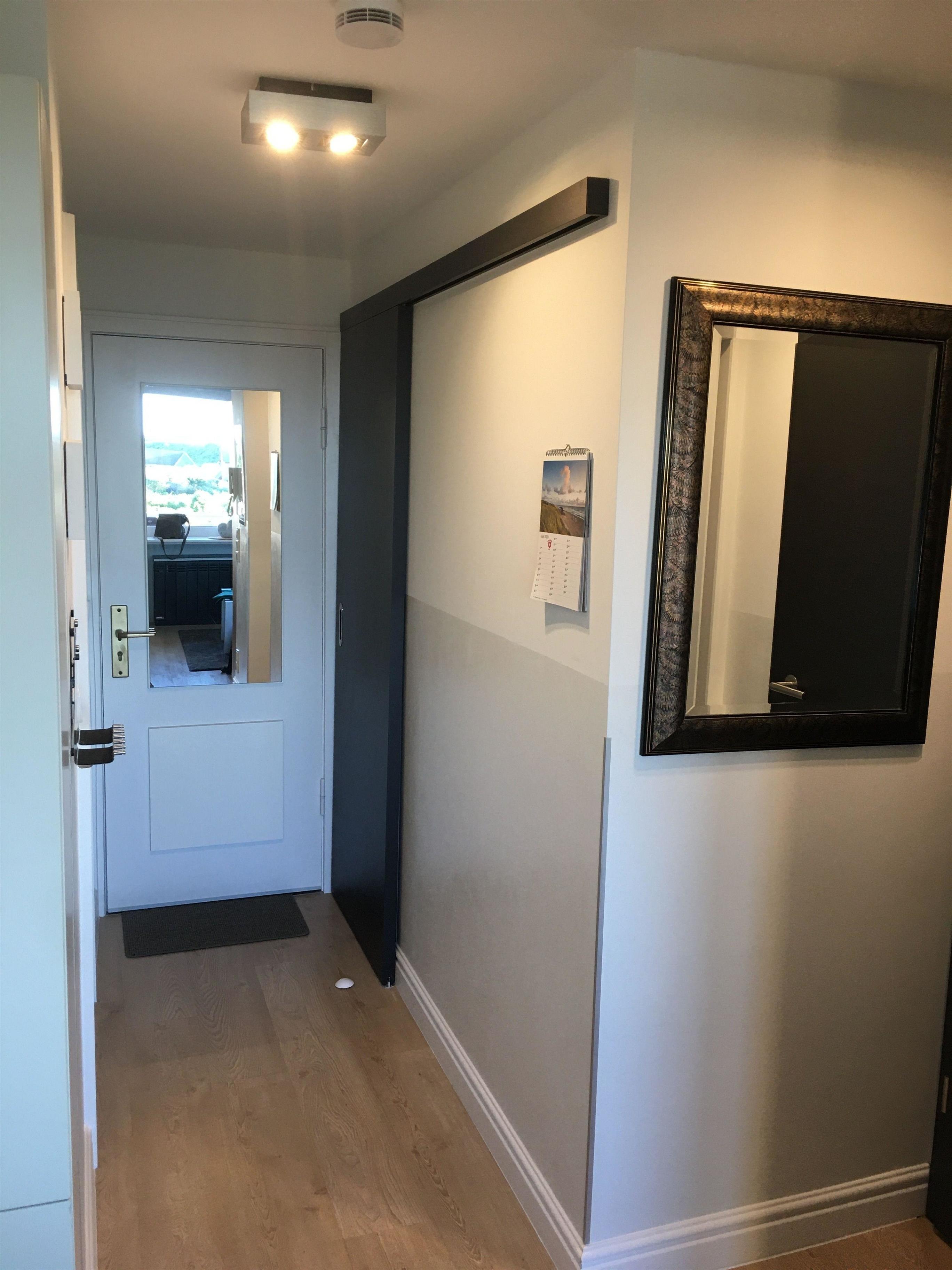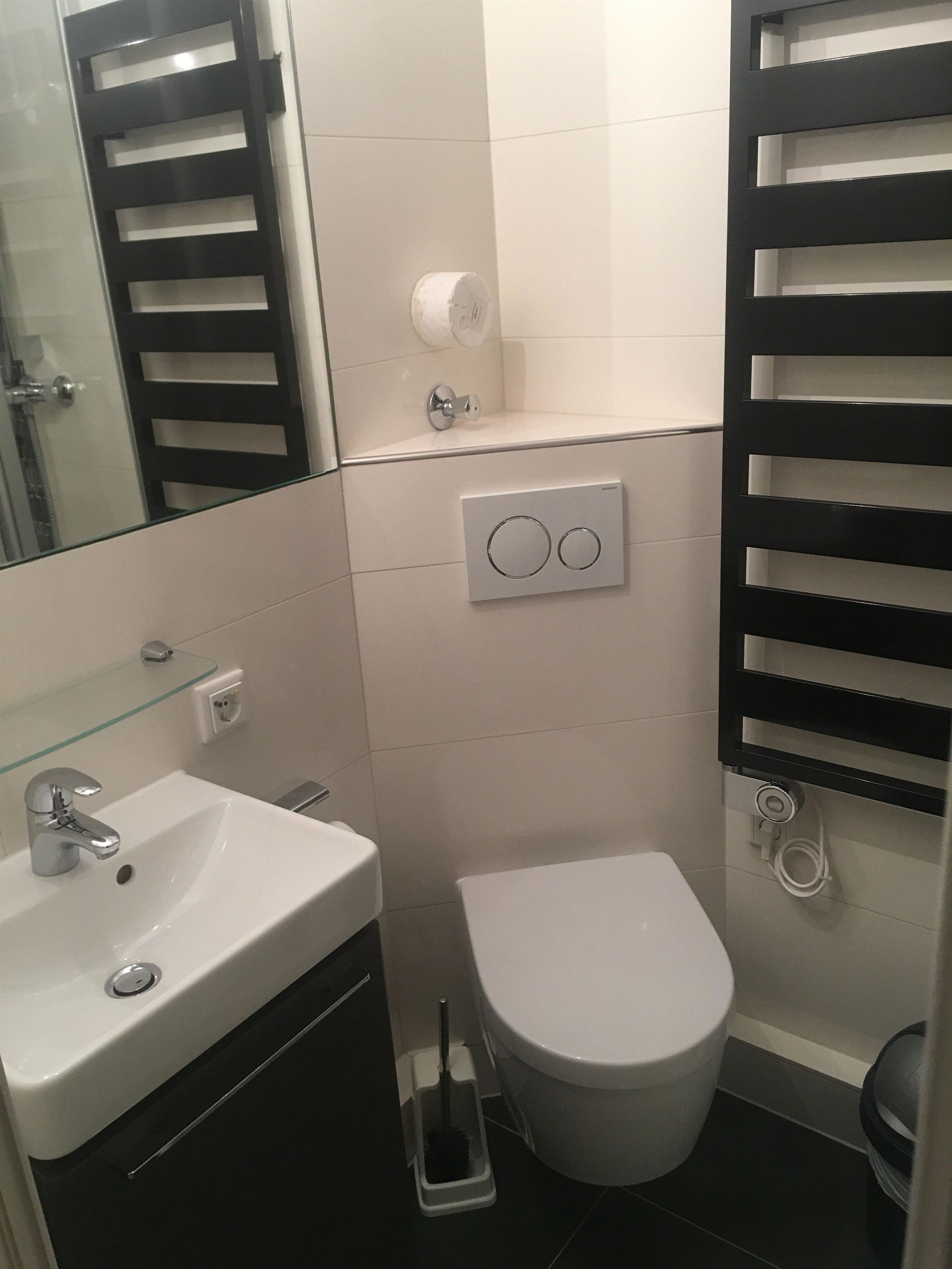 Das vor Kurzem renovierte Badezimmer hat eine Dusche.