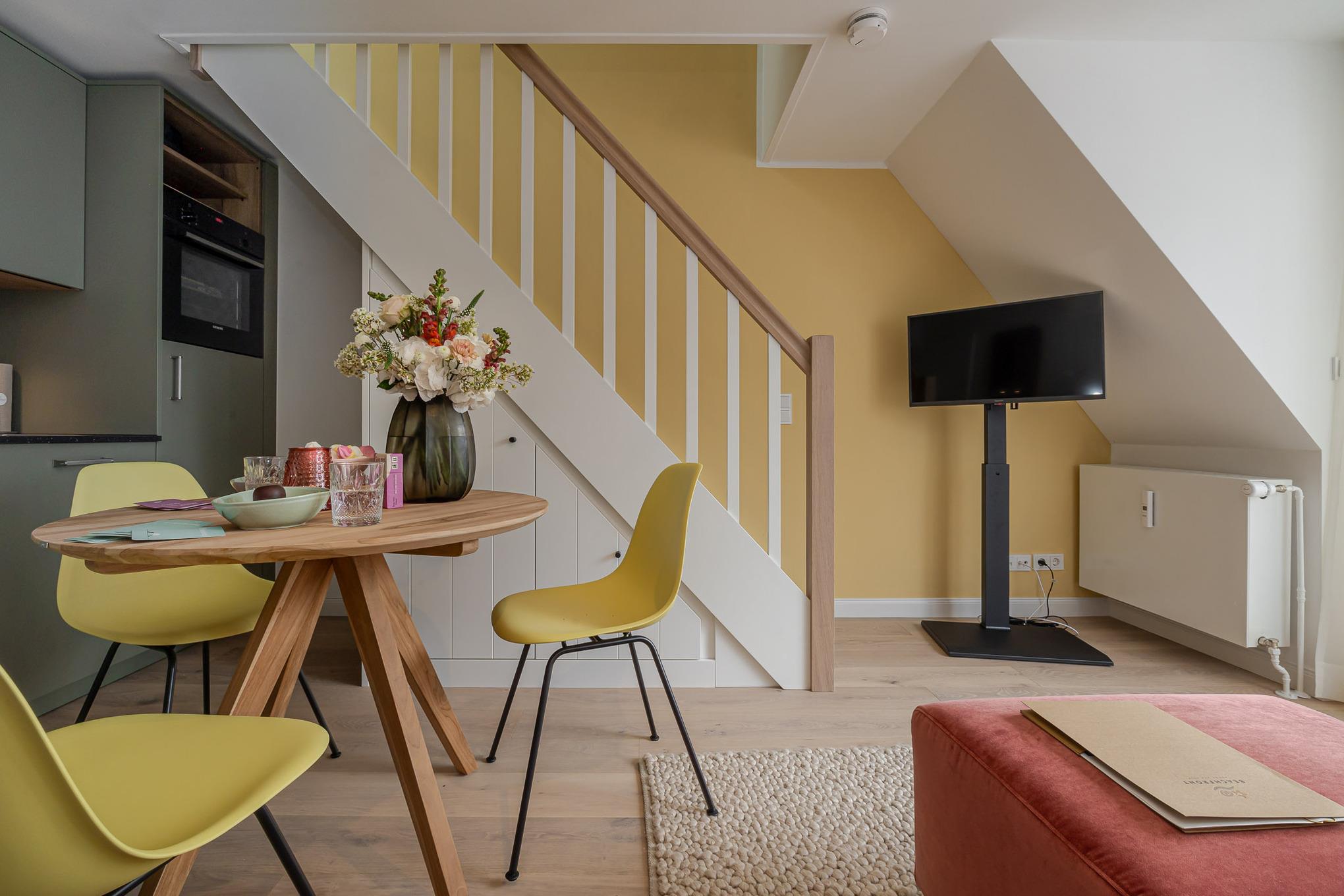 Die 36 m² große 2-Zimmer-Ferienwohnung liegt im Obergeschoss in Dock 6a und ist ideal für bis zu zwei Personen.