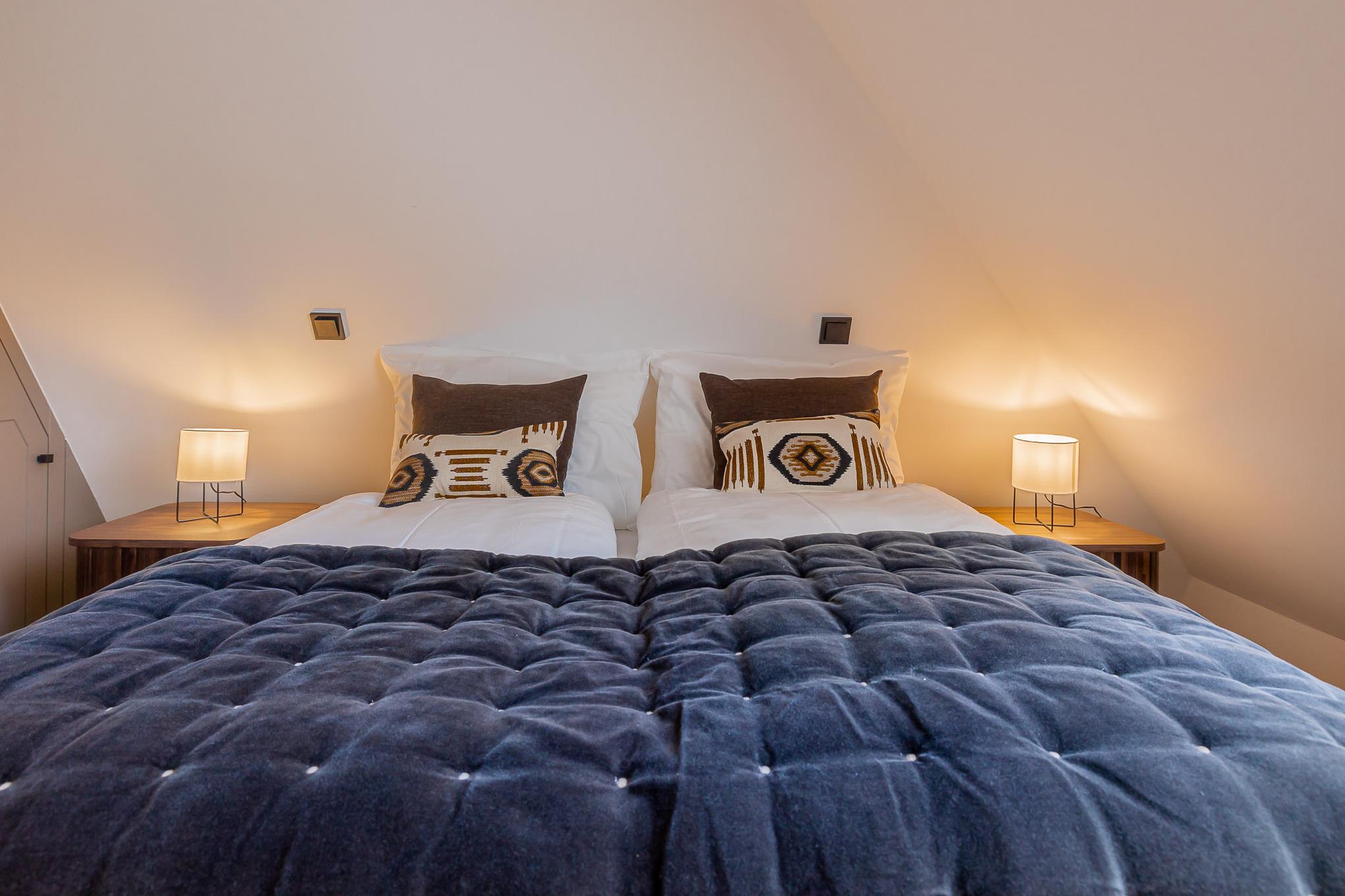 Das Schlafzimmer mit großem Boxspringbett schenkt Ihnen ruhige Nächte nach langen Strandspaziergängen. Auf der oberen Etage erwartet Sie ein zusätzlicher Wohn und Arbeitsbereich mit Schreibtisch, weiterem Schlafsofa sowie ein zweites WC Badezimmer. Ideal für Familien oder Gäste, die sich zwischendurch etwas zurückziehen möchten.