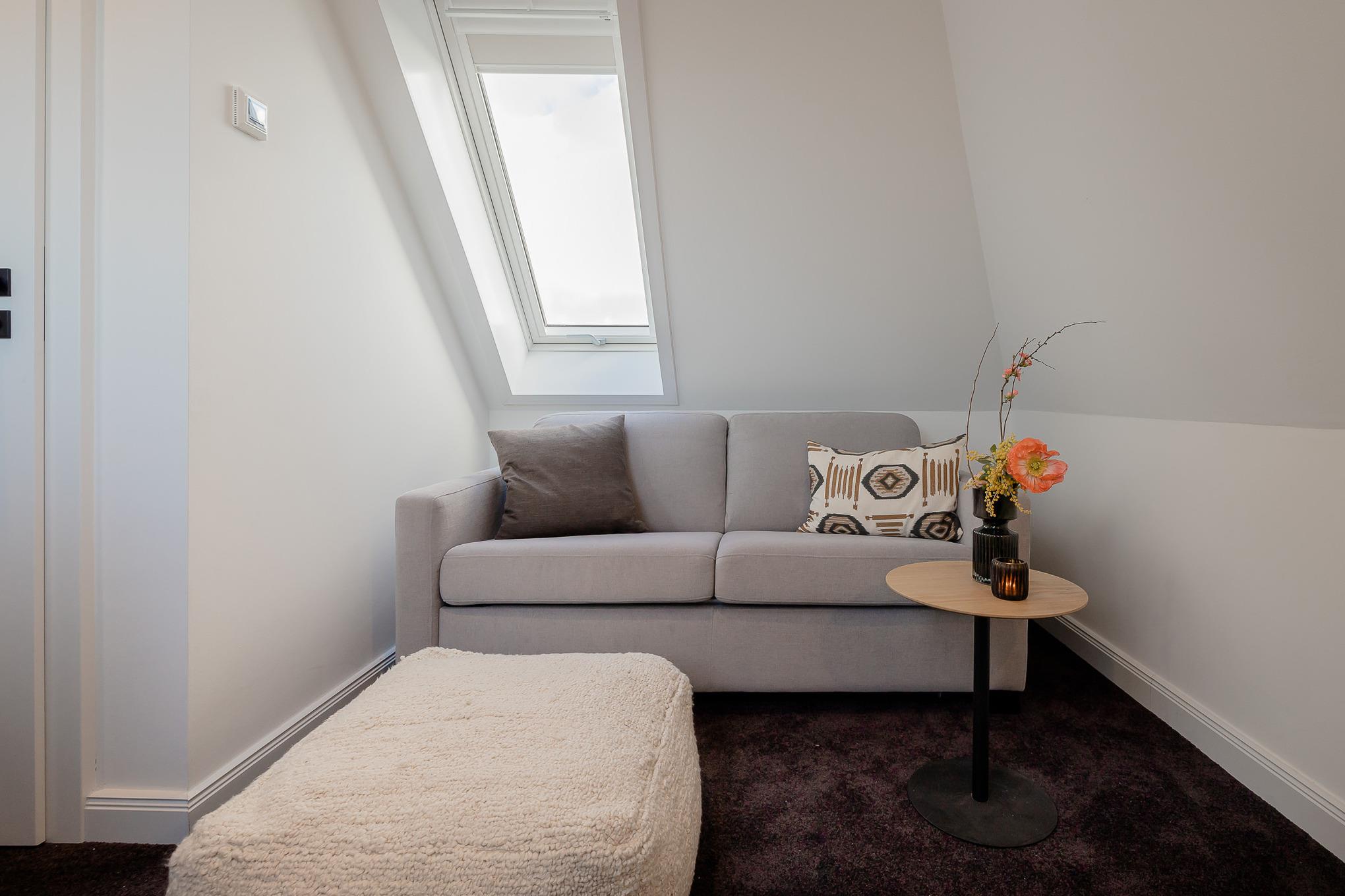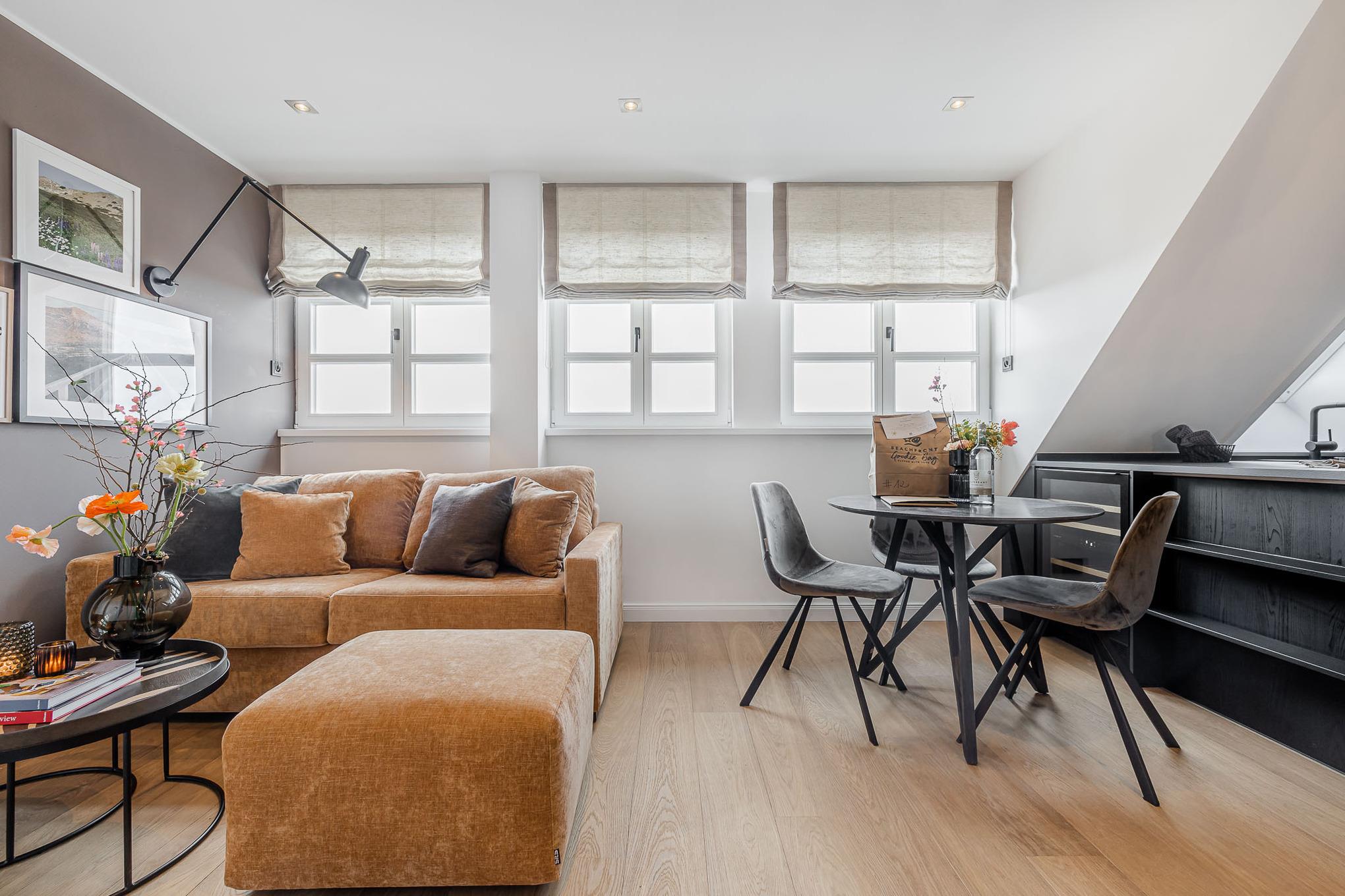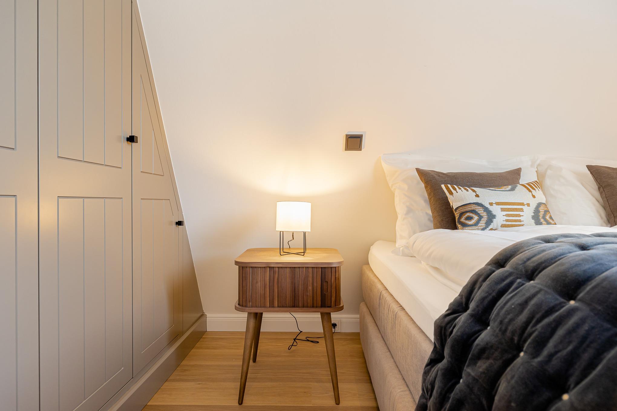 Die 60 Quadratmeter große, frisch renovierte Maisonettewohnung liegt im Dachgeschoss des historischen Backsteinhauses Living Lorens No. 19 und verbindet strandnahe Lage mit urbaner Leichtigkeit.