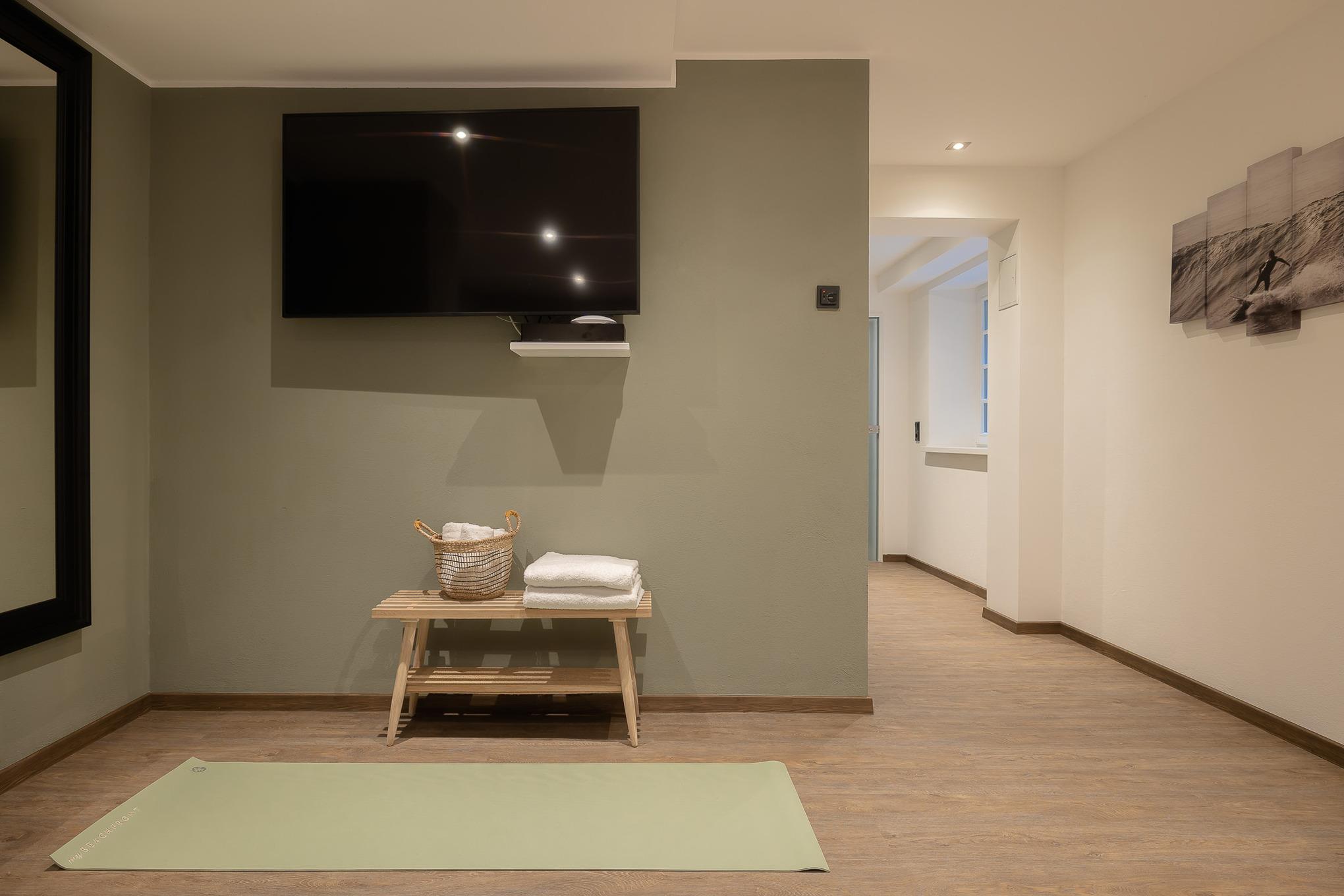 Als Gast von Living Lorens nutzen Sie außerdem kostenfrei den gemeinschaftlichen Saunabereich mit Liegen sowie den kleinen Fitnessraum mit Crosstrainer, Peloton Bike und Spiegel.