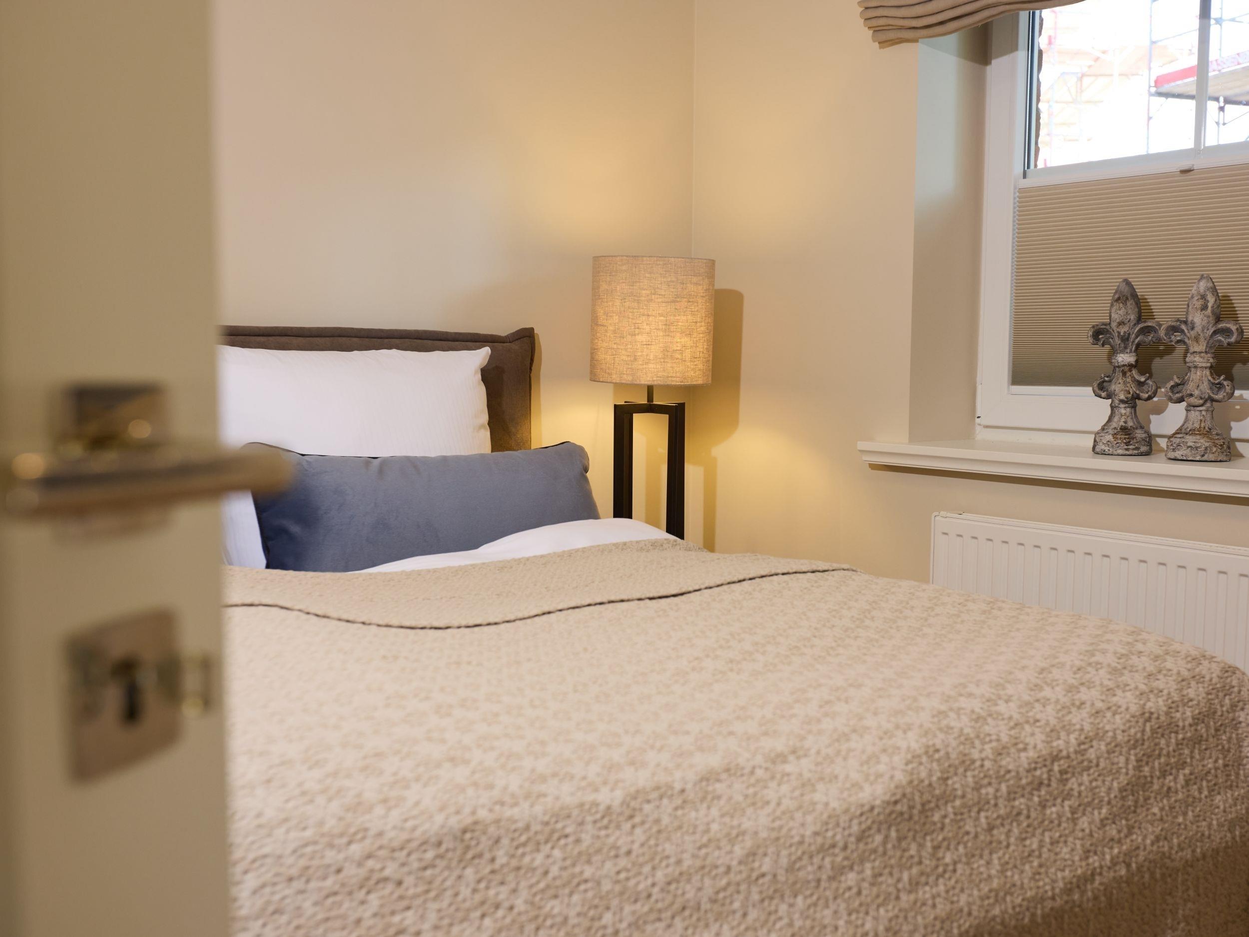 Über ihren privaten Eingang betreten Sie Ihr helles Feriendomizil. Rechts befindet sich die Tür zum lichtdurchfluteten Schlafzimmer mit komfortablen Doppelbett und genügend Stauraum.