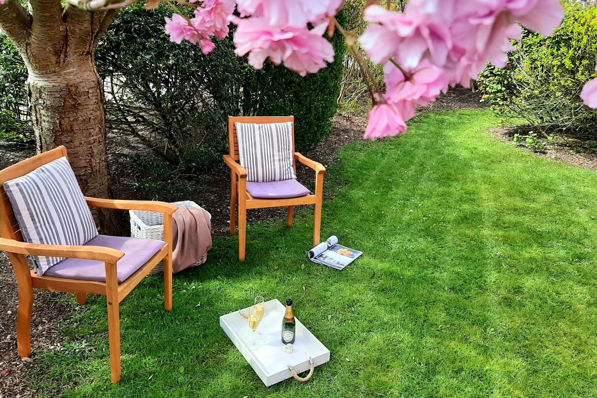 Im Wohnzimmer befindet sich der Essplatz mit Blick von der gemütlichen dänischen Küchenbank in den Garten, eine Ledercouch mit ggfs. zusätzlichem Schlafplatz (150x200), Leseecke und Smart TV. Vor dem Wohnzimmer liegt die überdachte Südterrasse, von dort geht es über eine Stufe in den Gemeinschaftsgarten.