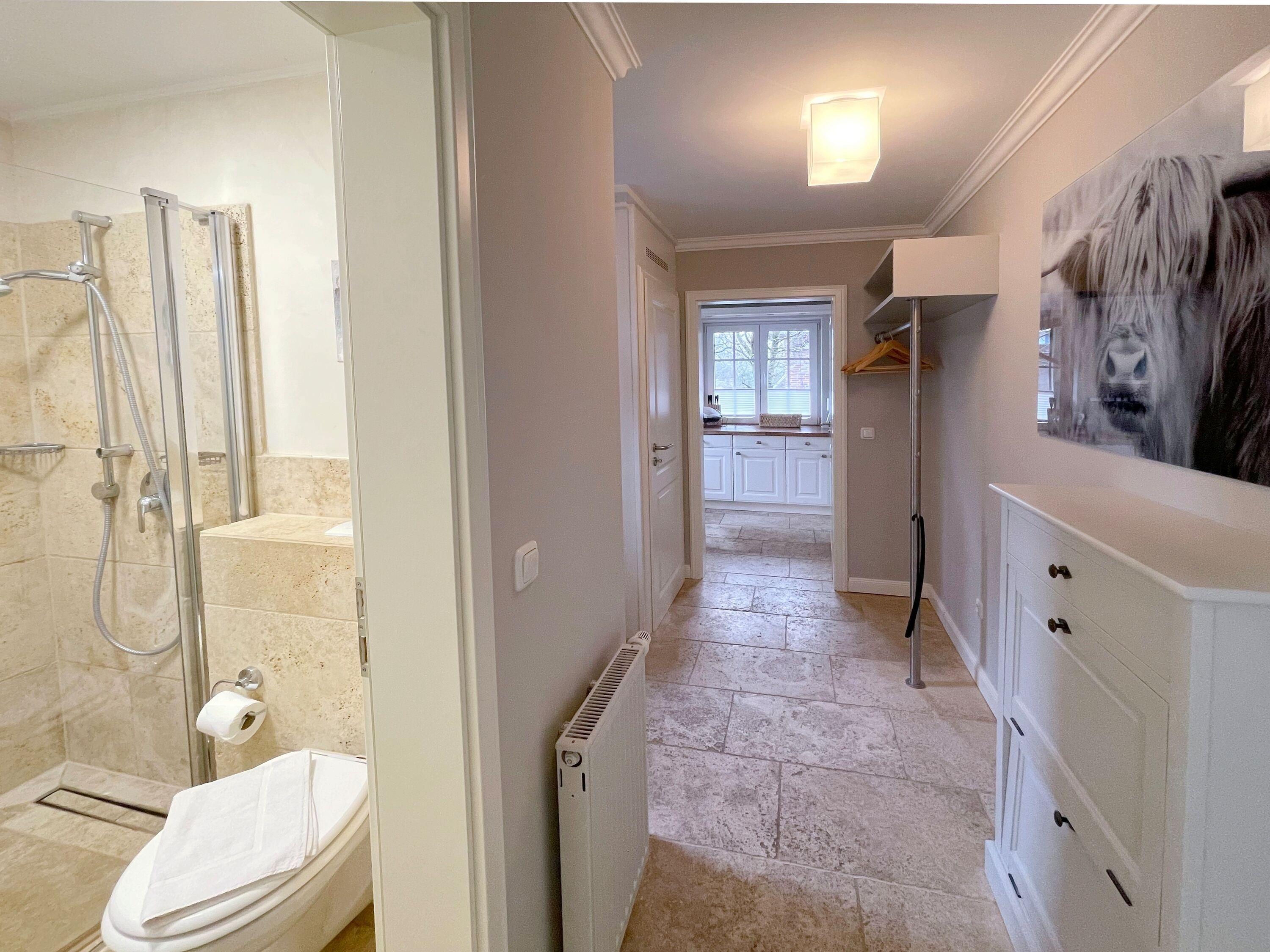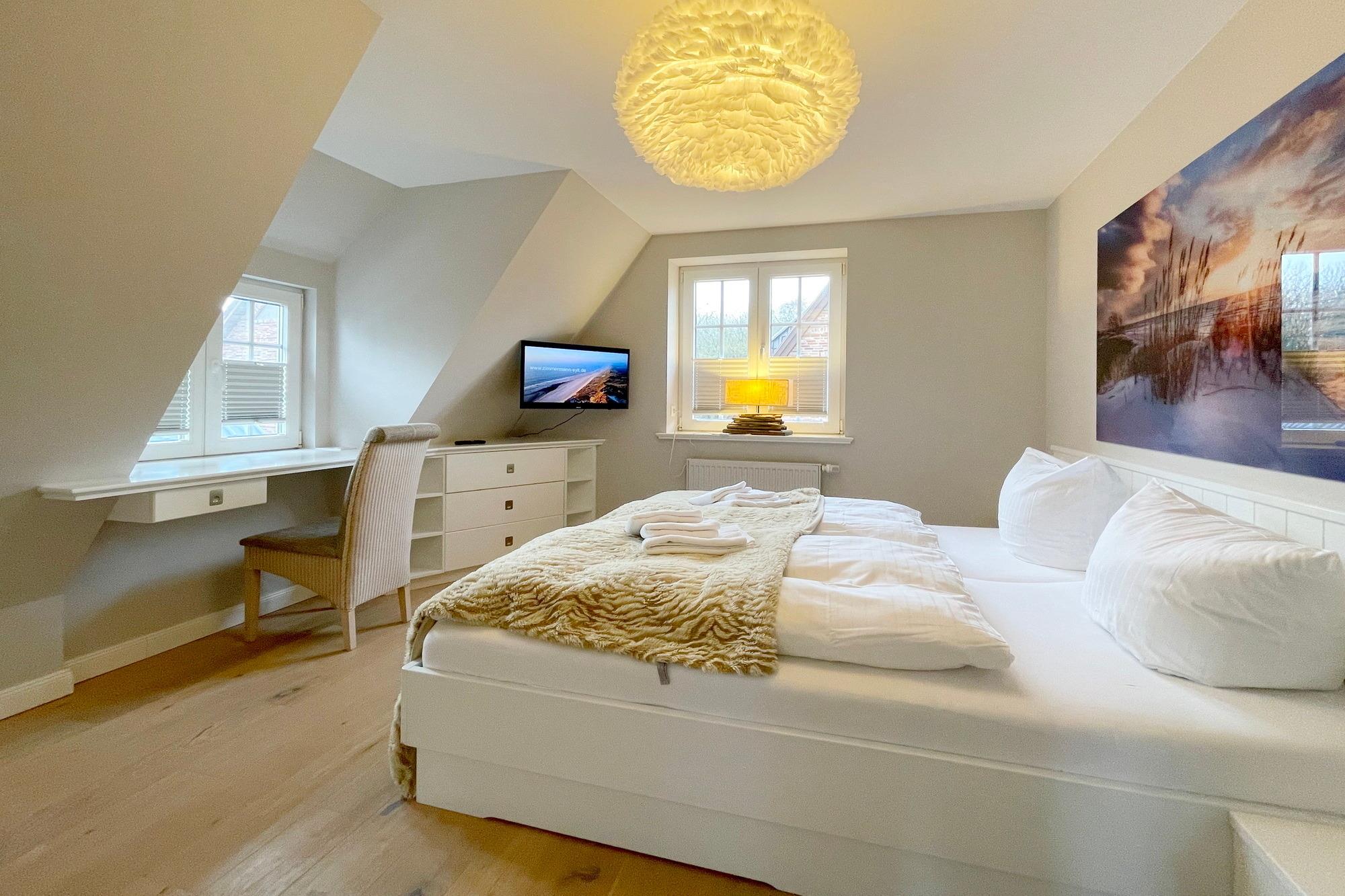 Das exklusive Ferienhaus Ada hat im Frühjahr 2023 ein "fresh up" bekommen und befindet sich bester Strandlage im Süden Westerlands am Wäldchen. Natursteinböden, Holzparkett, eine moderne Landhausküche gehören hier zum Standard. Das Haus verfügt über einen grossen Wohn-Essbereich mit offener Küche und Kaminofen, großes Smart-TV, Blue-Ray-Player, Flur, 1x Duschbad mit WC, 2 Schlafzimmer mit Doppelbetten, Einbauschränken und jeweils mit zusätzlichem Smart-TV, Wellnesszimmer mit Sauna, Wannenbad mit WC und Waschmaschine-Trockner-Kombi, Zimmersafe, Ein Schlafzimmer mit 2 Einzelbetten.