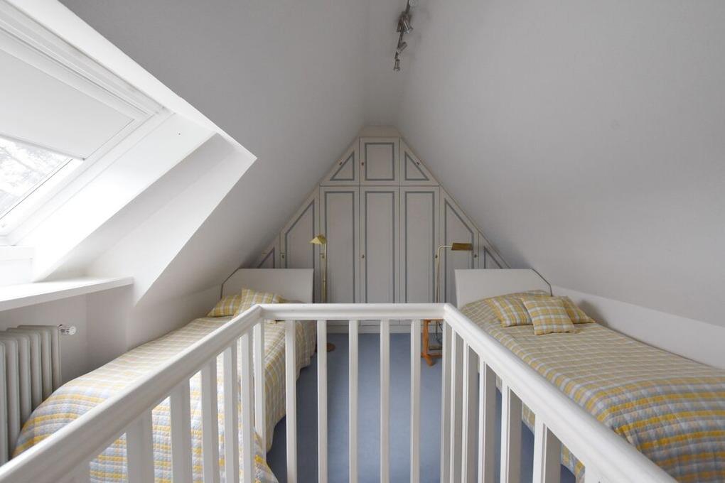 Schöne Doppelhaushälfte mit großem Garten, Wohnzimmer mit Sitzgruppe, Fernseher, DVD-Player, Radio, CD-Player, Telefon und W-Lan, Eßecke, Küche mit Geschirrspüler und Backofen, 2 Schlafzimmer für je 2 Personen, eine weitere Schlafmöglichkeit für 2 Personen im Spitzboden, 1 Badezimmer mit Dusche und Wanne, WC und Waschbecken, 1 Gäste-WC,[nbsp] PKW-Stellplatz,