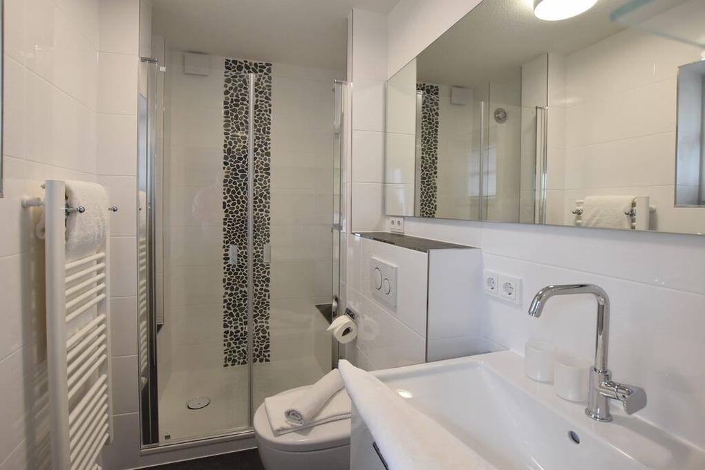 Hauswirtschaftsraum mit Waschmaschine und Trockner. Zwei moderne Duschbäder und zwei Schlafzimmer im UG. Zur Wohnung gehört ein PKW-Stellplatz und eine Alarmanlage.