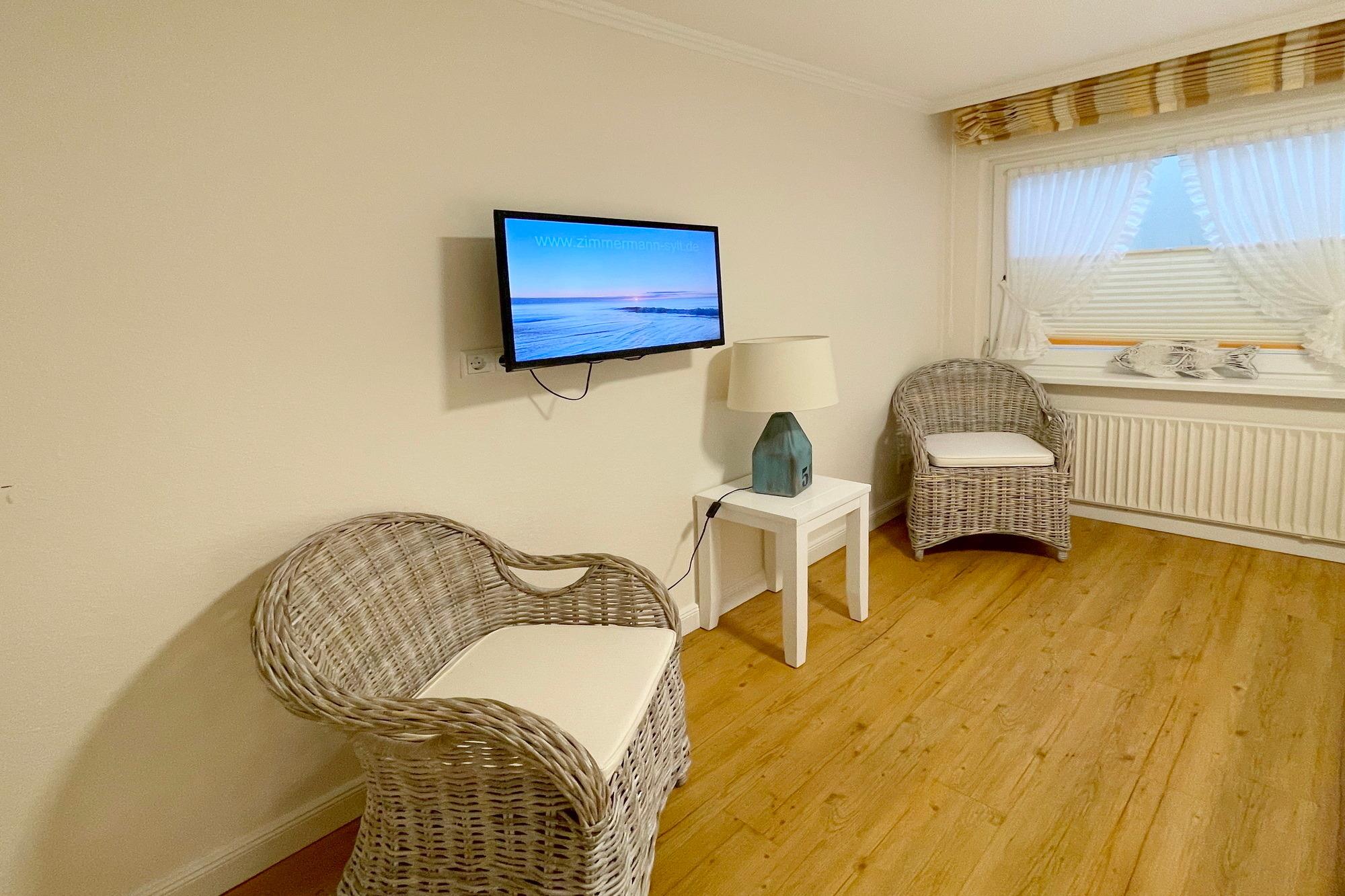 Große und moderne 3 Zimmer-Ferienwohnung, ( ca 100 qm EG/UG ) in einem Zweifamilienhaus, mit West-Terrasse auf eingewachsenem Gartengrundstück im Norden von Westerland, jedoch zentral gelegen. Die Friedrichstraße und auch der Strand sind in wenigen Minuten zu Fuß zu erreichen. Großer Wohnraum mit Essecke und Couchgarnitur mit Flatscreen TV, Stereoanlage, Telefon mit Flatrate ins deutsche Telefonnetz, W-LAN und direktem Terrassenzugang. Die Küche ist mit Spülmaschine, Cerankochfeld, Backofen, Mikrowelle und Kühlschrank ausgestattet.