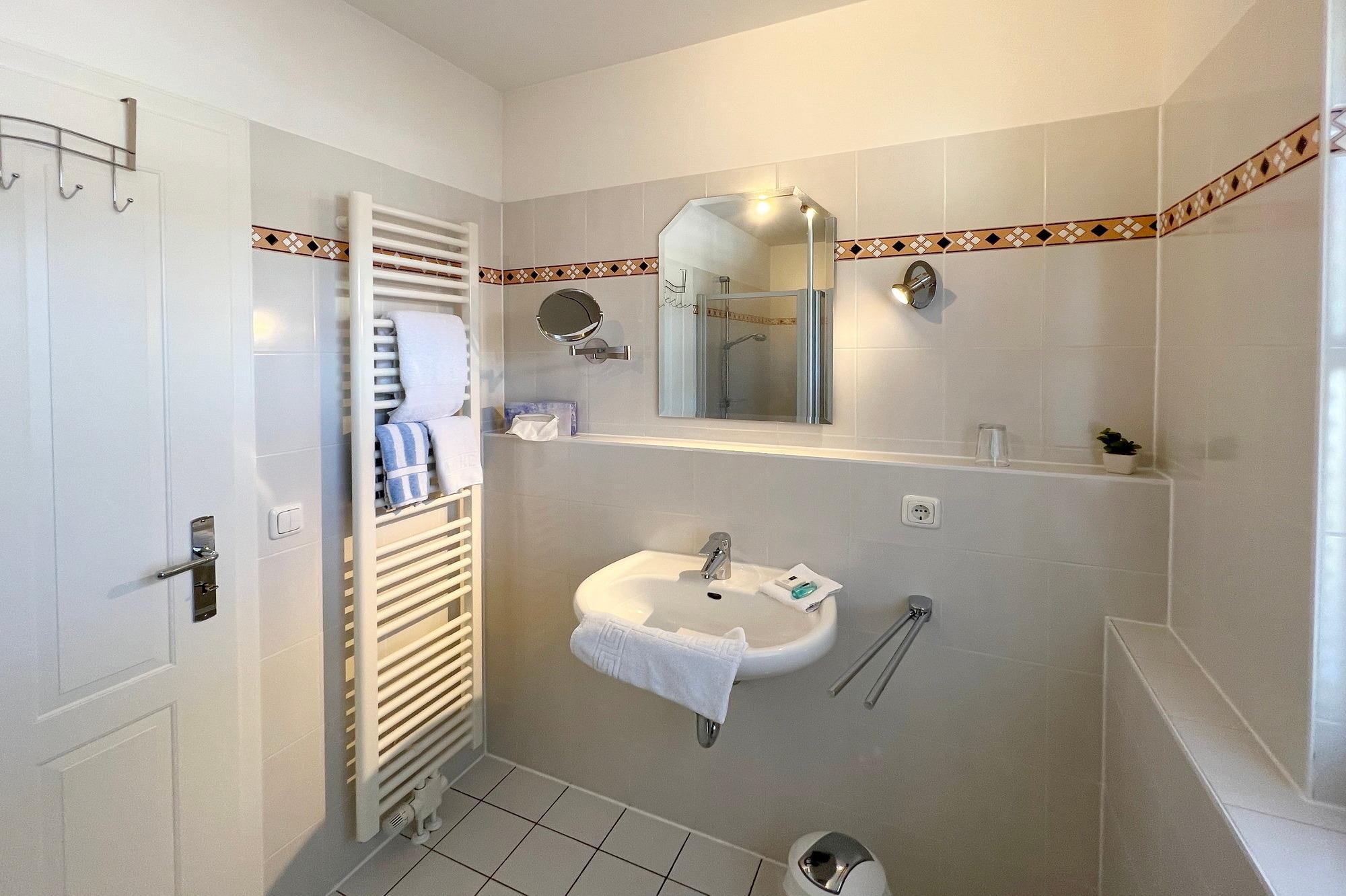 1-Zimmer-Ferienwohnung (EG) mit Terrasse, Wohn-/Schlafraum mit französischem Bett für 2 Personen, Eßecke, Pantryküche, Kleiderschrank, Fernseher, schönes helles Badezimmer mit Wanne (Duschmöglichkeit), Sauna mit im Haus b, Nichtraucher, keine Haustiere erlaubt, allergikerfreundlich,1PKW-Stellplatz, Wäsche inklusive.