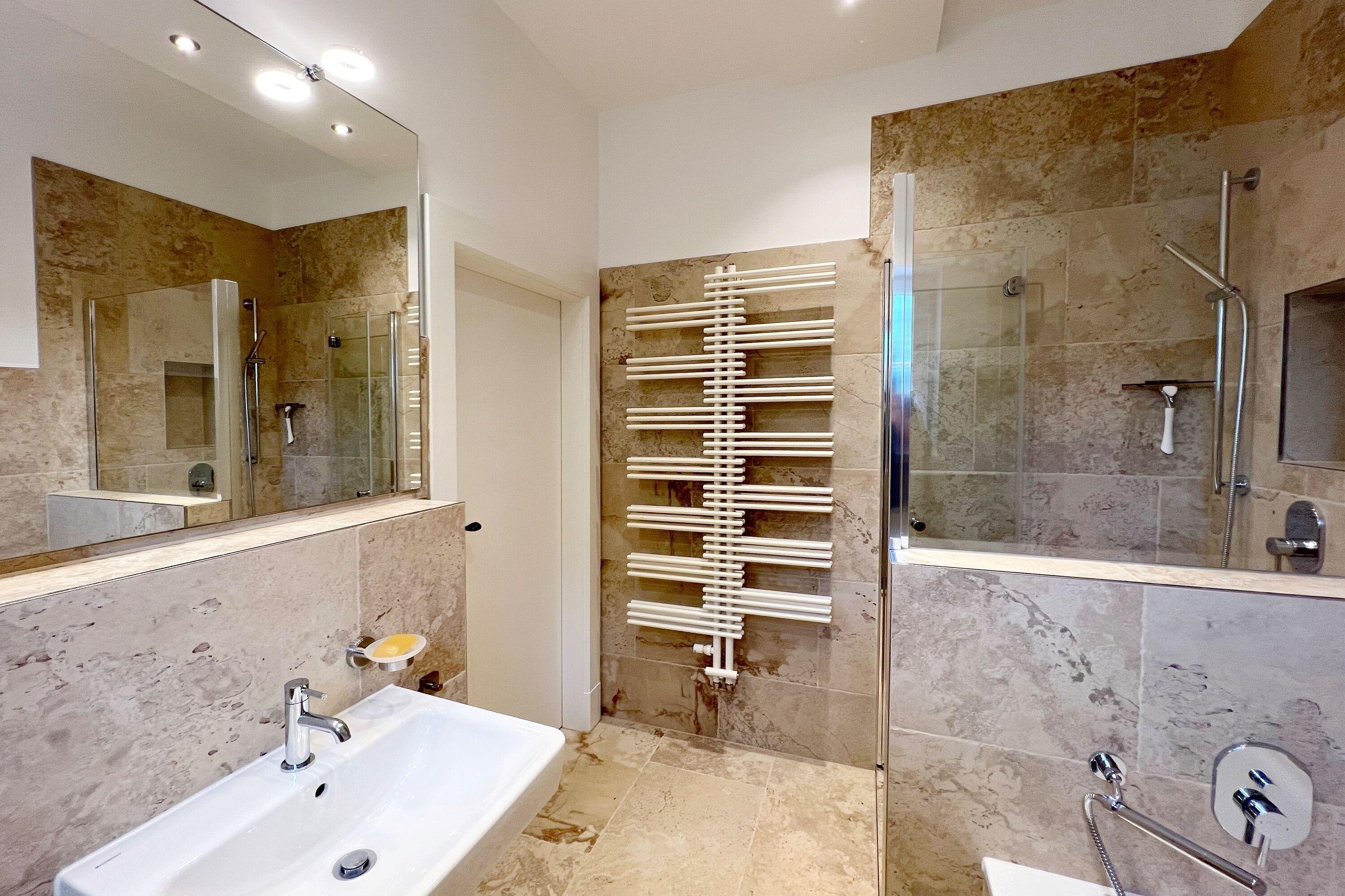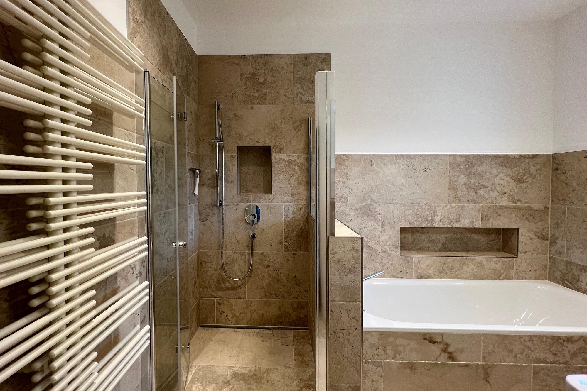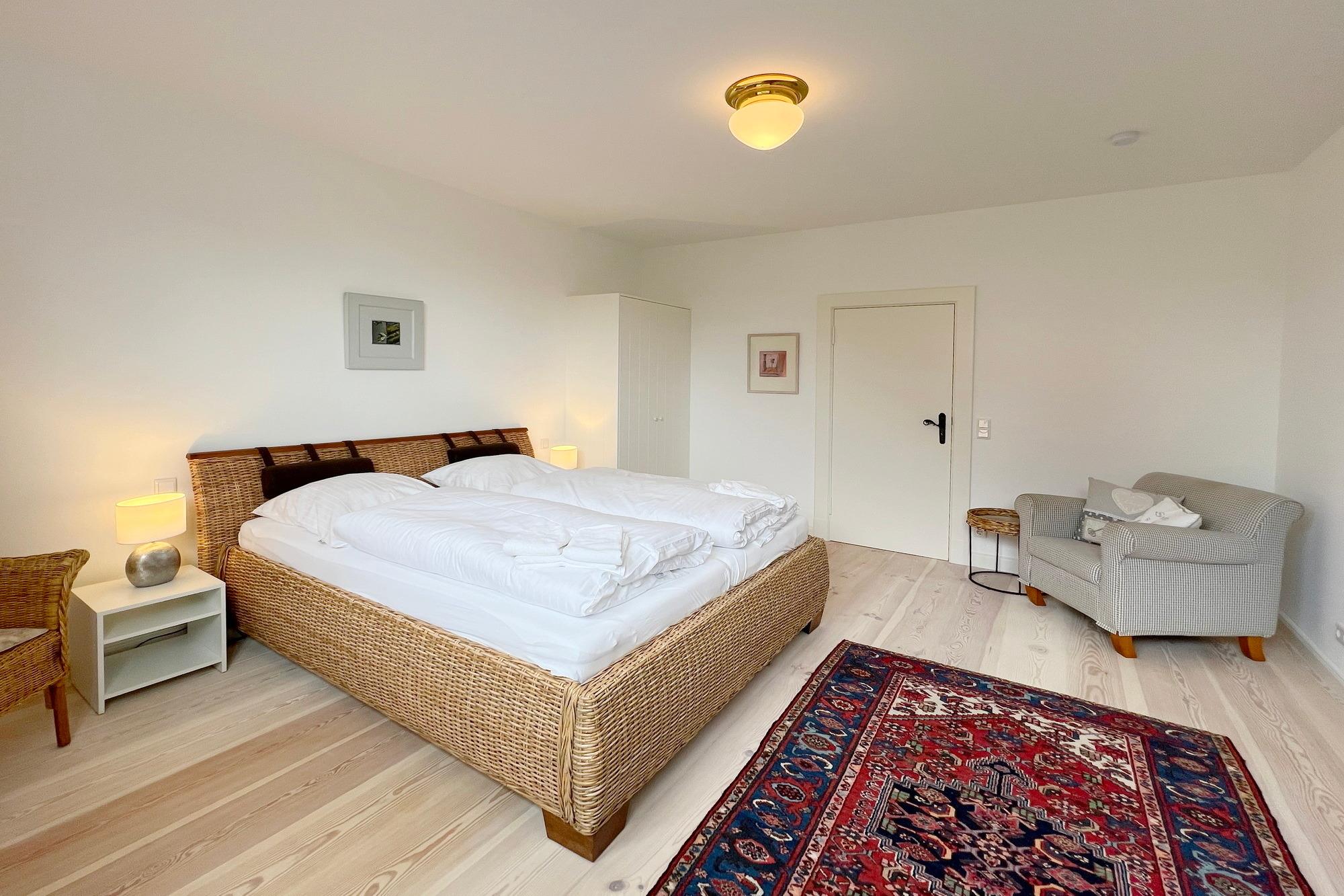 Die Ferienwohnung befindet sich in zentraler und strandnaher Lage und wurde frisch renoviert und saniert. Sie verfügt über einen großzügigen Grundriss von ca. 100 m² und alle Räume befinden sich auf einer Ebene. Im Wohnbereich gibt es eine integrierte Küche und einen Zugang zur Terrasse und dem allein zu nutzenden Garten. Ebenfalls zur Wohnung gehört ein Arbeitszimmer mit Schreibtisch und Blick in den grünen Garten. Auf dem Grundstück gibt es einen PKW-Stellplatz. Die Ferienwohnung verfügt über zwei Schlafzimmer mit jeweils einem Doppelbett und ein modernes Badezimmer mit Dusche und Wanne. Im Haus gibt es eine Waschmaschine und einen Trockner, die gemeinschaftlich mit App. 2 genutzt werden können.