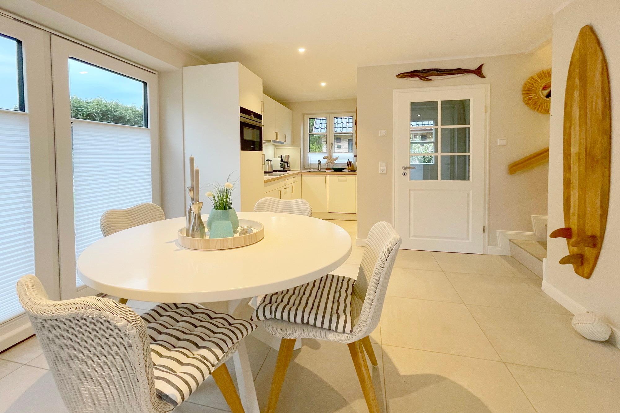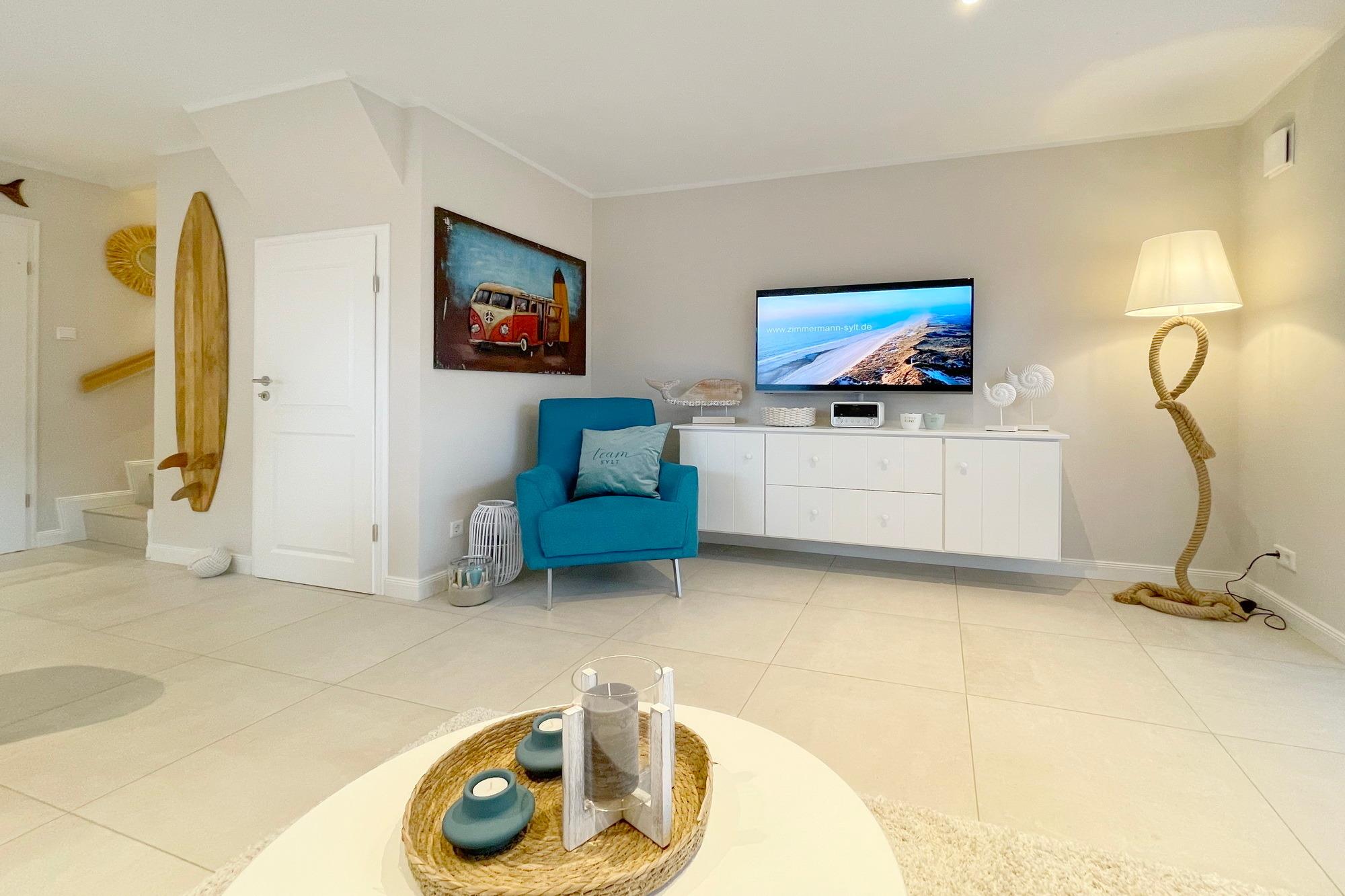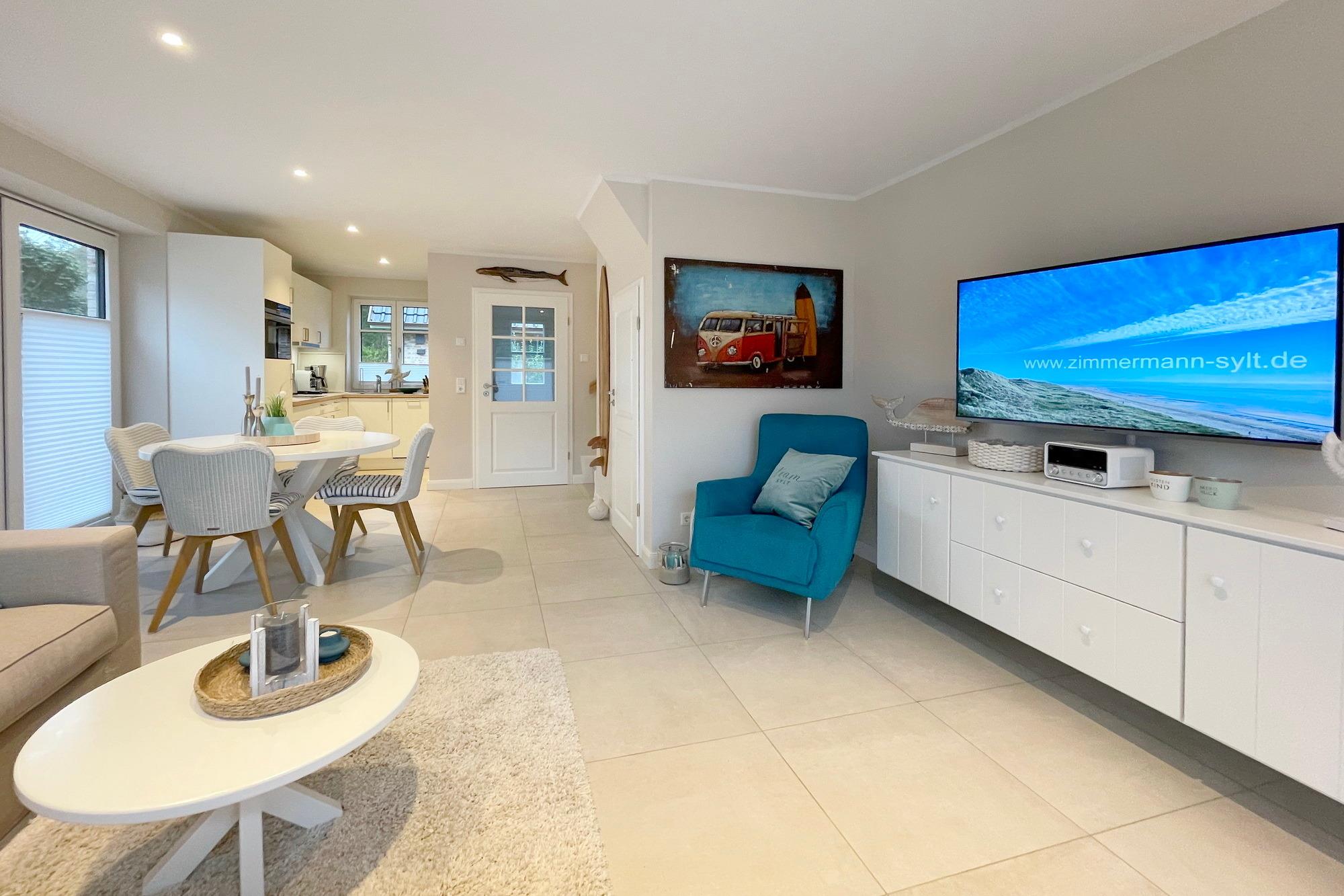 Exklusives Reihenendhaus in ruhiger Lage an der Ortgrenze zu Westerland. Das Ferienhaus wurde 2022 fertig gestellt und wurde im modernen Beach-House Style eingerichtet. Tischlerarbeiten in den Schlafzimmern und weitere Einrichtungsdetails runden das positive Gesamtbild ab.