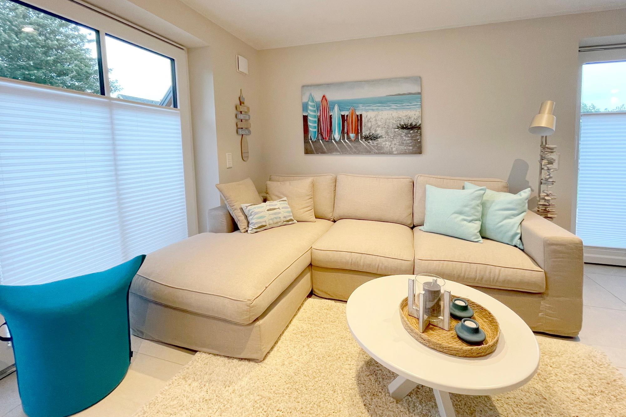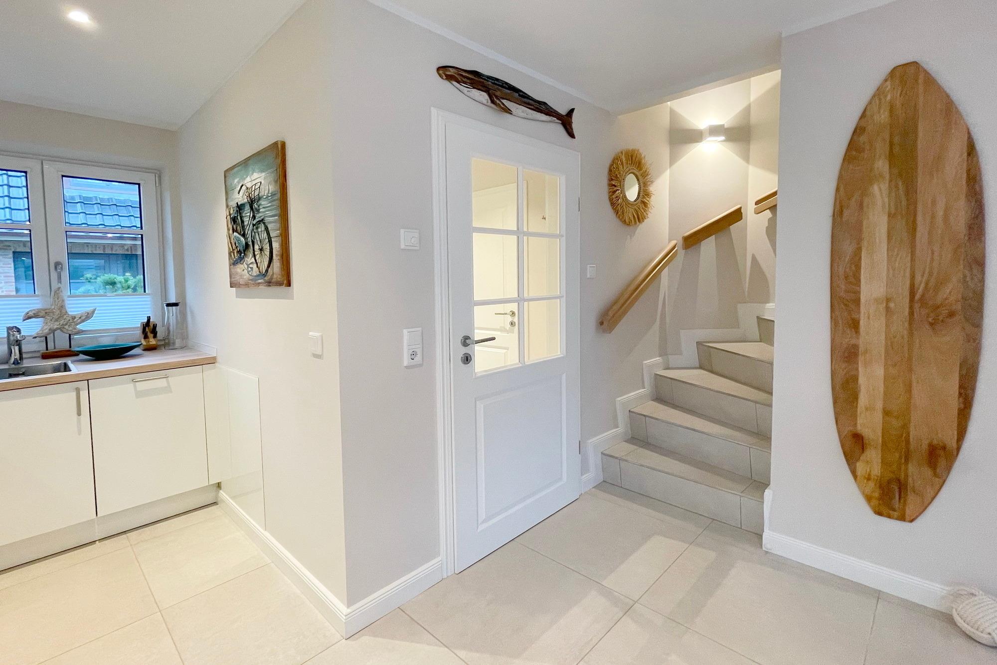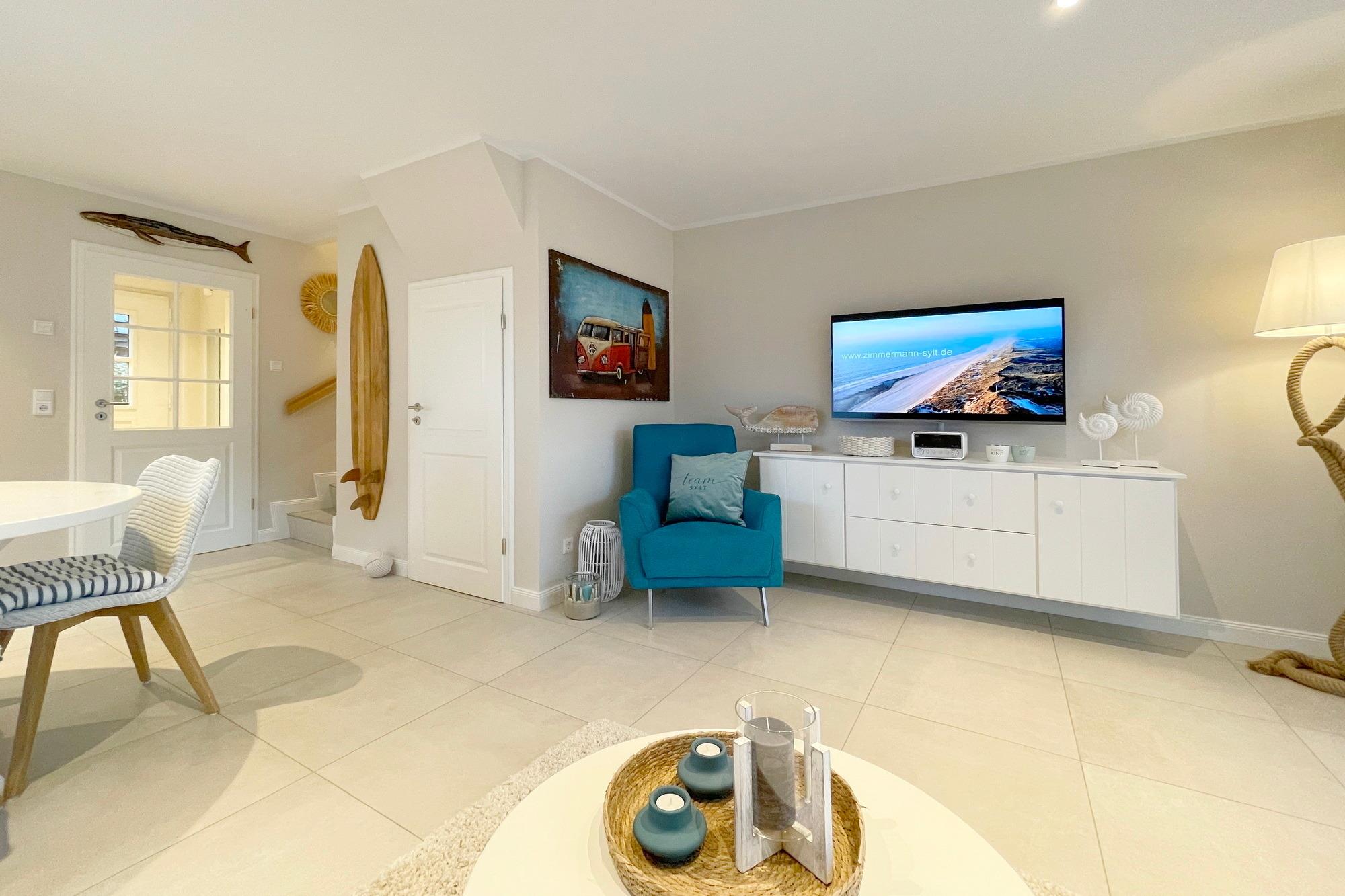 Exklusives Reihenendhaus in ruhiger Lage an der Ortgrenze zu Westerland. Das Ferienhaus wurde 2022 fertig gestellt und wurde im modernen Beach-House Style eingerichtet. Tischlerarbeiten in den Schlafzimmern und weitere Einrichtungsdetails runden das positive Gesamtbild ab.