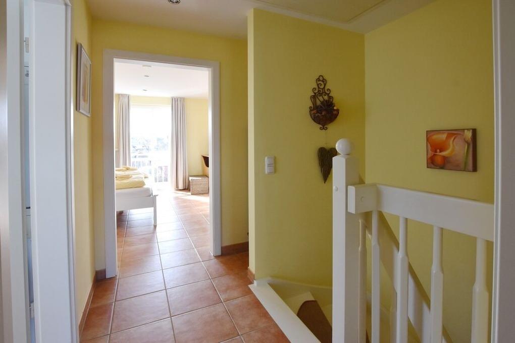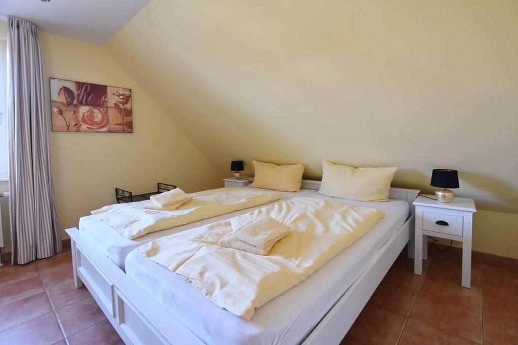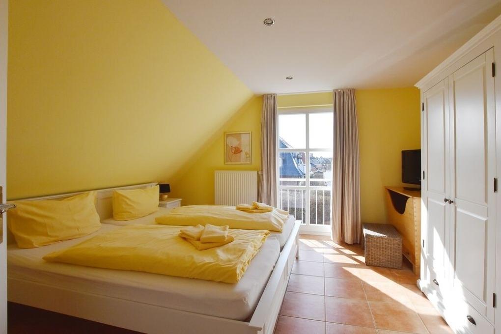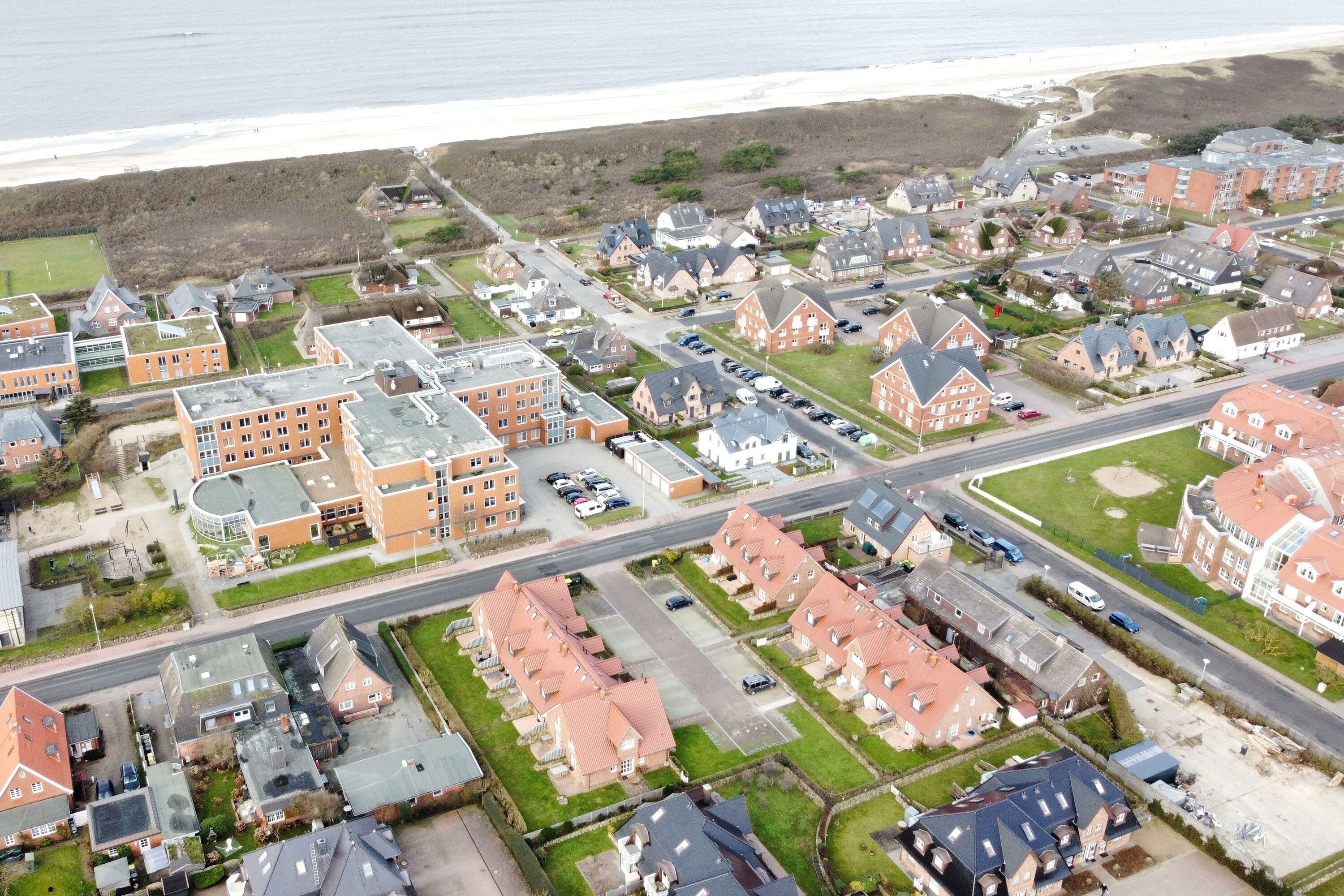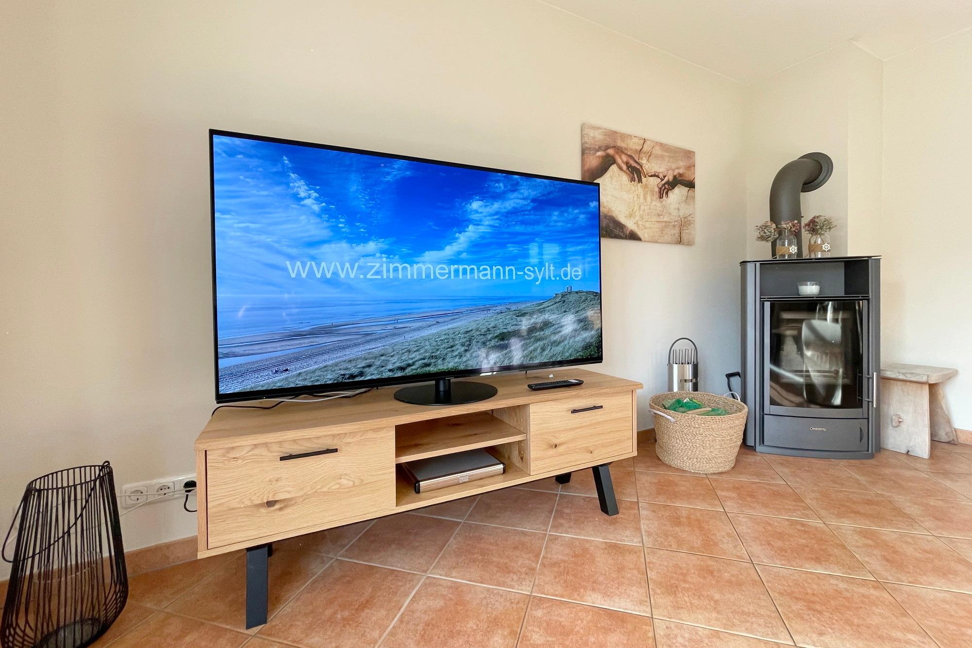 Reihenendhausteil mit 2 Terrassen in zentraler, strandnaher Lage, Wohnzimmer mit Sitzgruppe und Eßecke, Kaminofen, Fernseher (Smart-TV[nbsp] offene Küche mit Geschirrspüler und Backofen, 2 Bäder mit Waschbecken und WC, 2 Schlafzimmer mit Doppelbett für je 2 Personen, Waschmaschine und Trockner